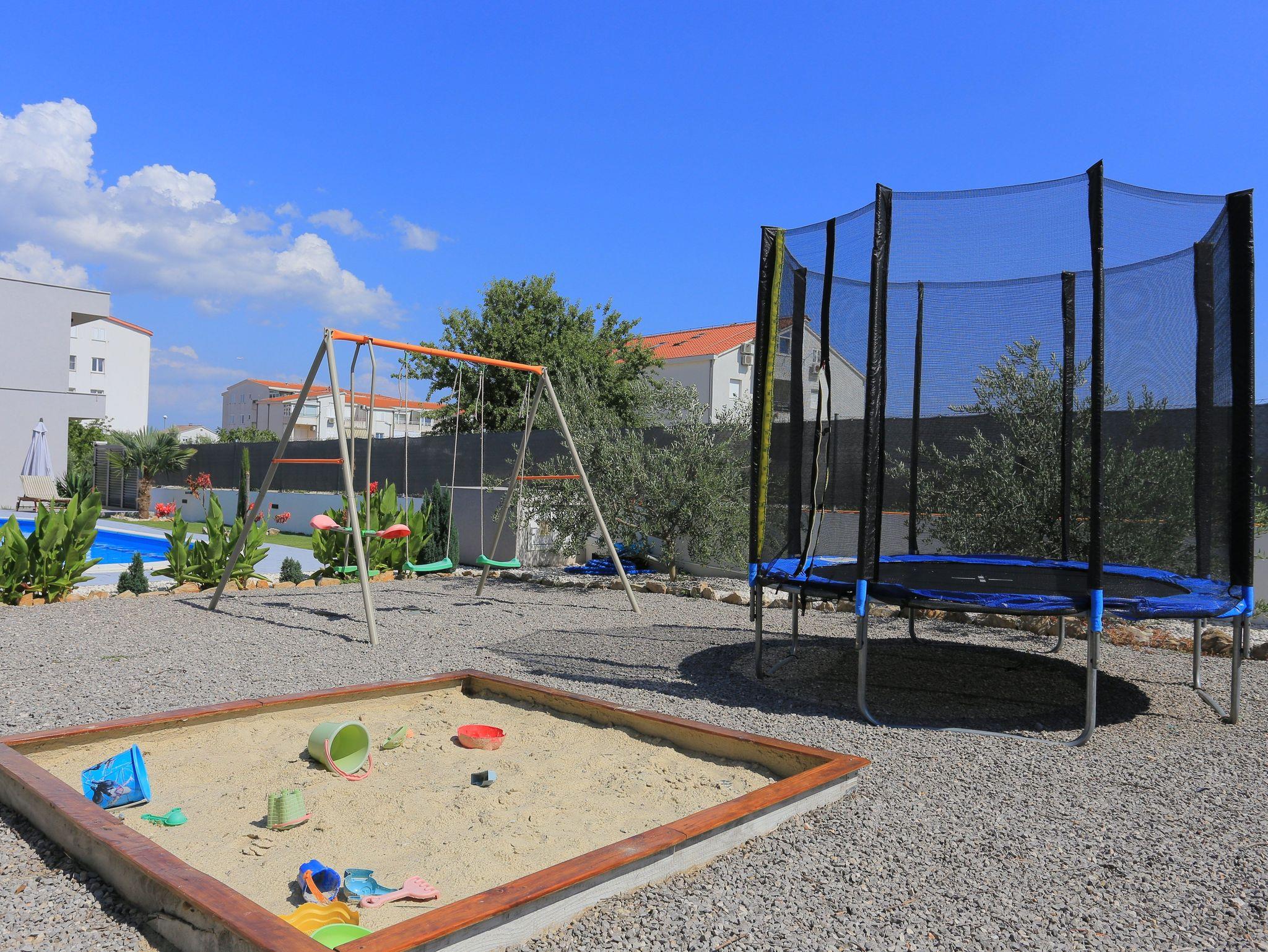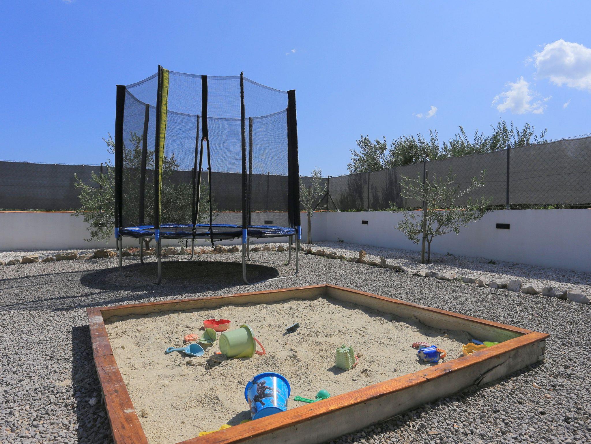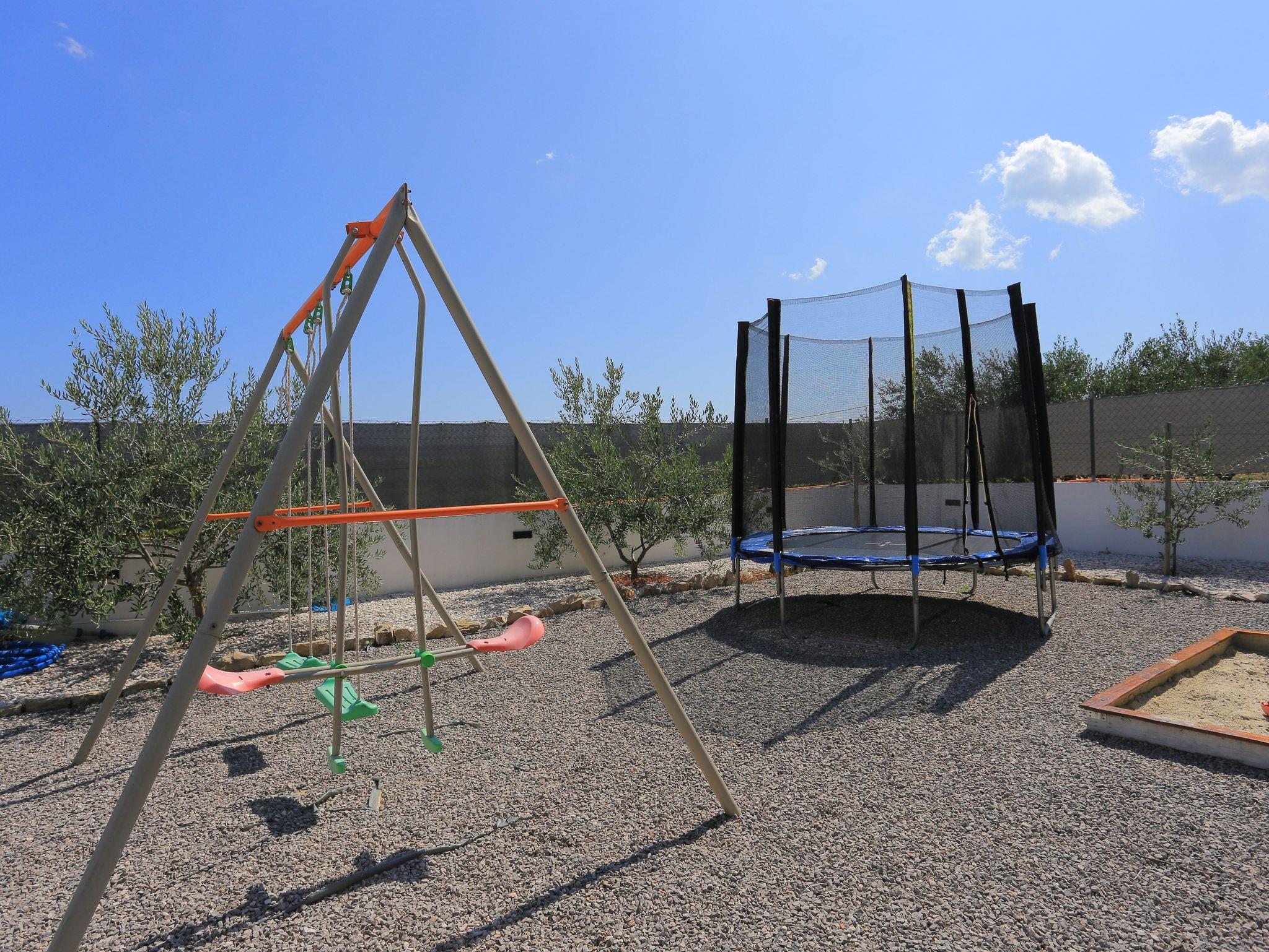 Umgebung des Objekts (Eingerichtet), Hof (1330m2, Kinderbereich, Sitzbereich), Parkplatz (Anzahl der Parkplätze: 8, Entfernung vom Objekt: im Hof), Pool: privat, Dimensionen: 10m x 4.2m x 1.5m, Wassertyp: Süßwasser, WiFi Internet, Fahrrad (Anzahl: 2), Föhn, Bügeleisen, Bügelbrett, Sonnenschirm, Liegestühle, Kinderbett