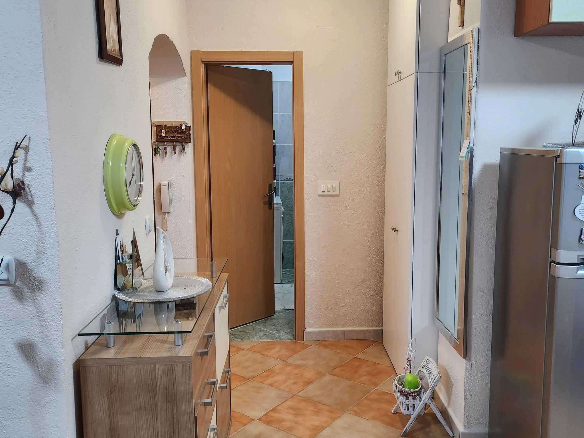 Ferienwohnung bietet Platz für 6 Gäste. Die Betten sind in Schlafzimmern, die es 2 gibt, und in Wohnzimmer, innerhalb einer Gesamtfläche von 60m2, angeordnet. Die Gäste haben eine eigene Terrasse zur Verfügung, auf der sie in warmen Sommernächten genießen können. Das Apartment bietet Meerblick. Es ist erlaubt, Speisen auf dem Gemeinschafts-Grill vorzubereiten. In der Unterkunftseinheit besteht die Möglichkeit des Mitbringens von Haustieren gegen Aufpreis. IM PREIS INBEGRIFFEN: Kurtaxe, Endreinigung, Parkplatz, Internet, Kinderbett, Bügeleisen, Bügelbrett, Föhn, tragbarer Grill. VERBINDLICHE ZUSÄTZLICHE KOSTEN: Aufzahlung für Kurzaufenthalte (prozentualer Zuschlag pro Nächtigungsanzahl: 30% - 1, 20% - 2, 10% - 3). UNVERBINDLICHE ZUSÄTZLICHE KOSTEN: Klimatisierung (10,00 € pro Nacht), Haustiere (10,00 € pro Nacht), Zusatzbett (10,00 € pro Nacht). Die Verfügbarkeit zusätzlicher Dienstleistungen in Ihrem reservierten Termin und die Preise derselben (falls nicht aufgeführt) müssen im Voraus überprüft werden. Zusätzliche Dienstleistungen die in der Zahlungsaufforderung nicht aufgeführt sind werden direkt beim Vermieter bezahlt, angenommen der Gast nutzt auch diese. Ermäßigung auf den Grundpreis: Gratistag 14=13 (bei einem Aufenthalt von 14 Tagen oder mehr erhalten Sie einen Gratistag für den Aufenthalt bis 31.12.26).