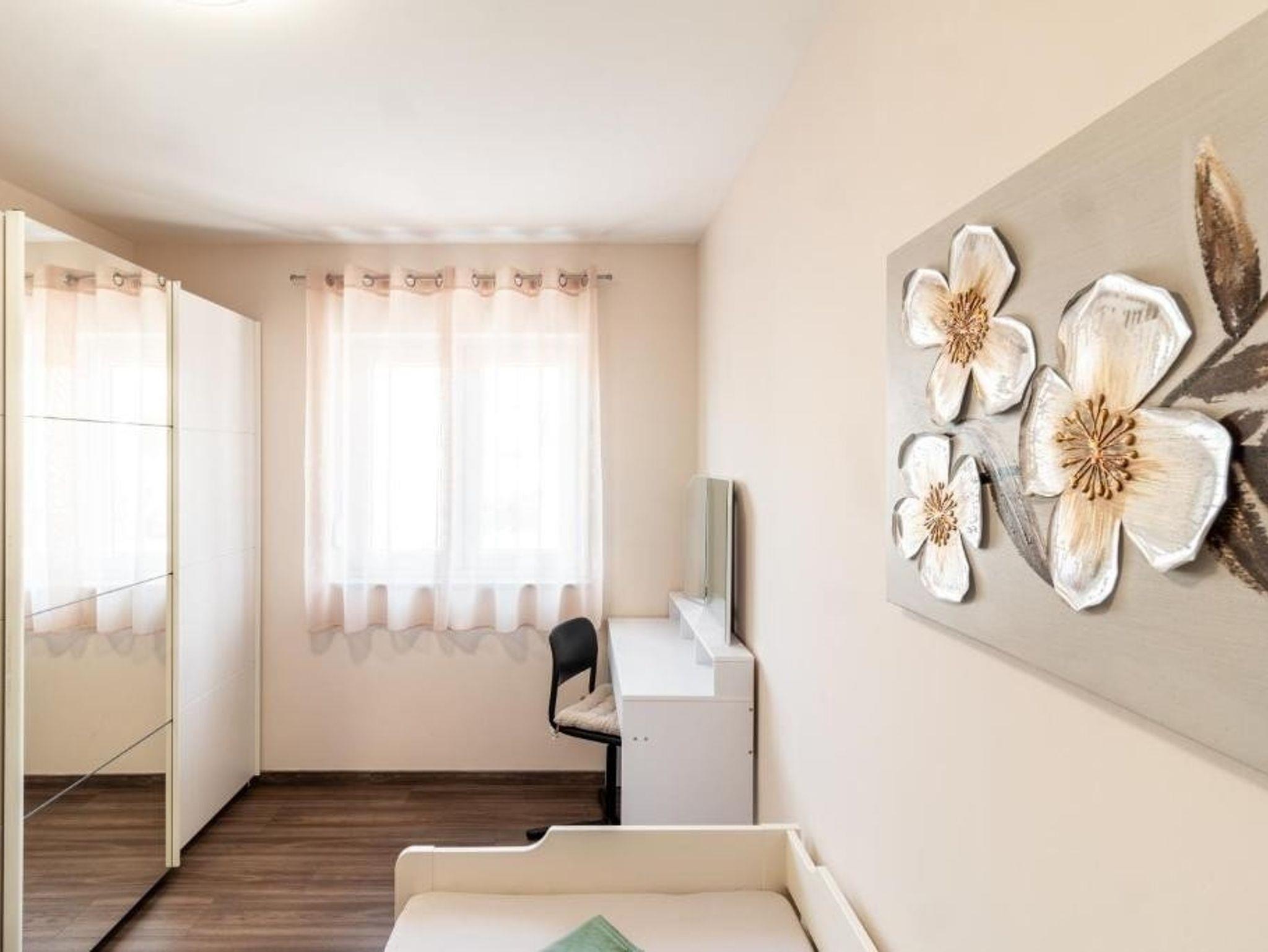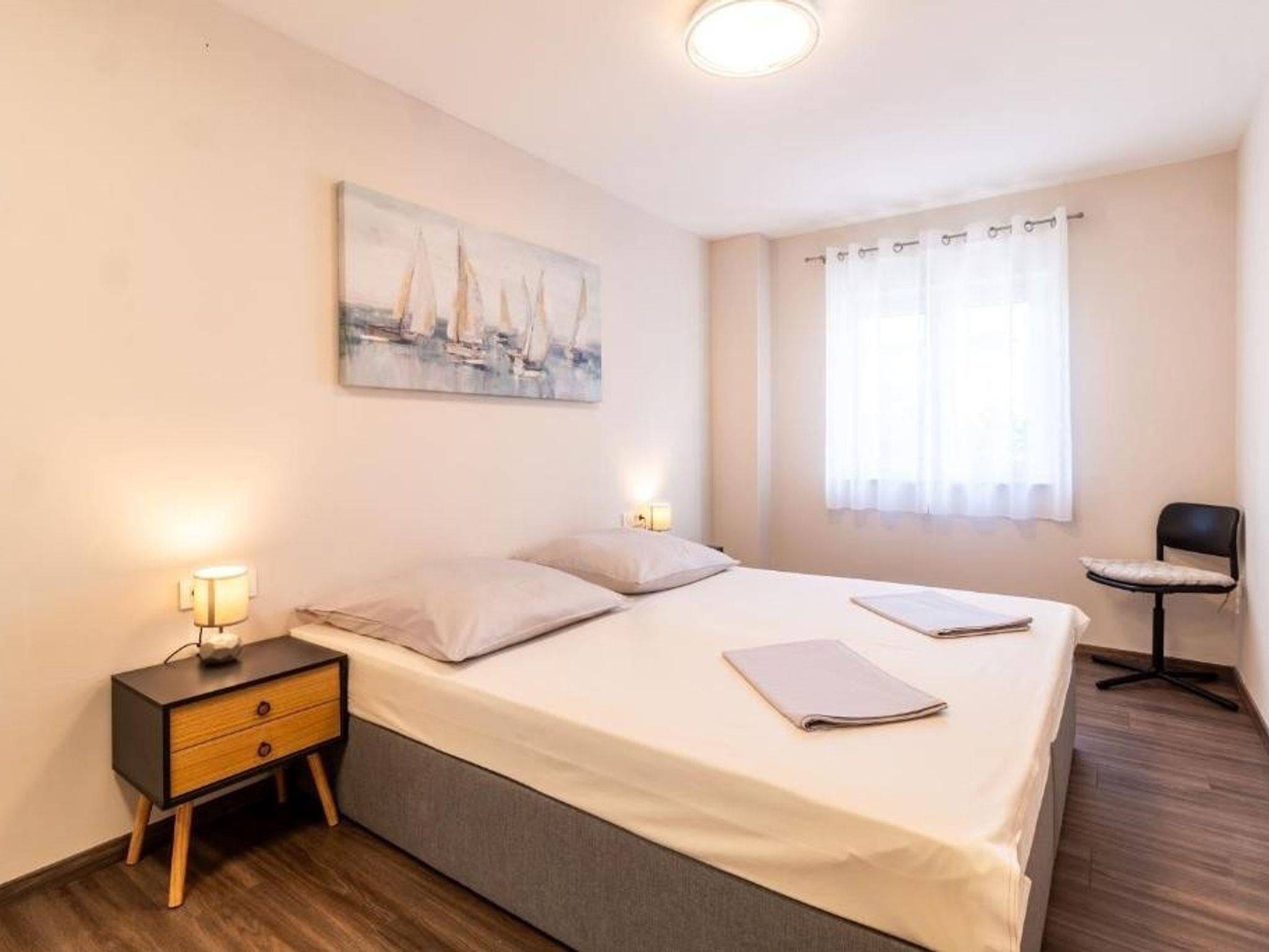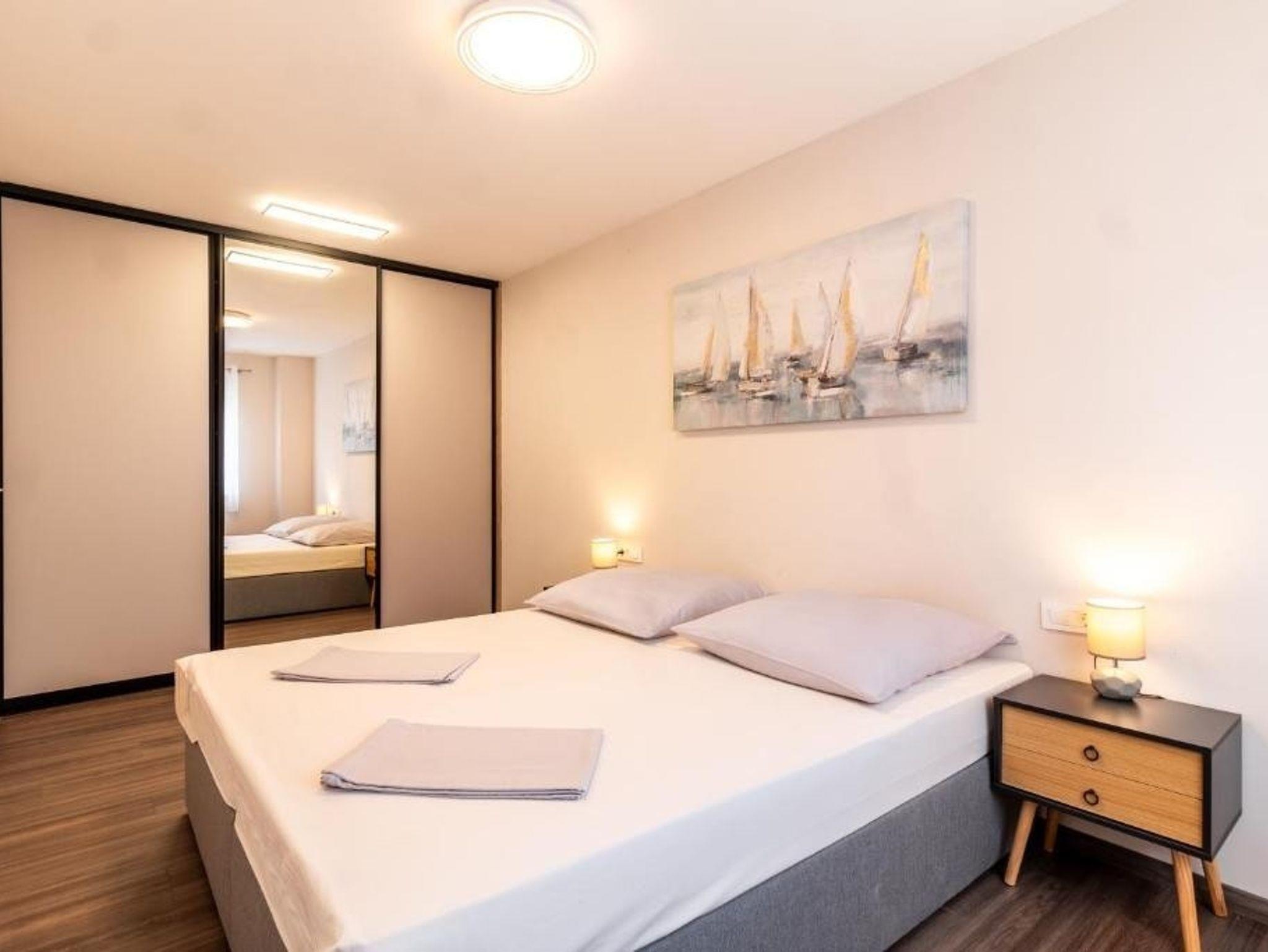 Ferienwohnung bietet Platz für 5 Gäste. Die Betten sind in Schlafzimmern, die es 2 gibt, und in Wohnzimmer, innerhalb einer Gesamtfläche von 75m2, angeordnet. Die Gäste haben eine eigene Terrasse zur Verfügung, auf der sie in warmen Sommernächten genießen können. Das Apartment bietet Meerblick. Es ist erlaubt, Speisen auf dem Gemeinschafts-Grill vorzubereiten. Während ihres Aufenthalts können Gäste das gemeinsam zur Nutzung stehende Schwimmbad benutzen. IM PREIS INBEGRIFFEN: Kurtaxe, Endreinigung, Klimatisierung, Pool, Parkplatz, Internet, Kinderbett, Bügeleisen, Bügelbrett, Föhn. Die Verfügbarkeit zusätzlicher Dienstleistungen in Ihrem reservierten Termin und die Preise derselben (falls nicht aufgeführt) müssen im Voraus überprüft werden. Zusätzliche Dienstleistungen die in der Zahlungsaufforderung nicht aufgeführt sind werden direkt beim Vermieter bezahlt, angenommen der Gast nutzt auch diese.