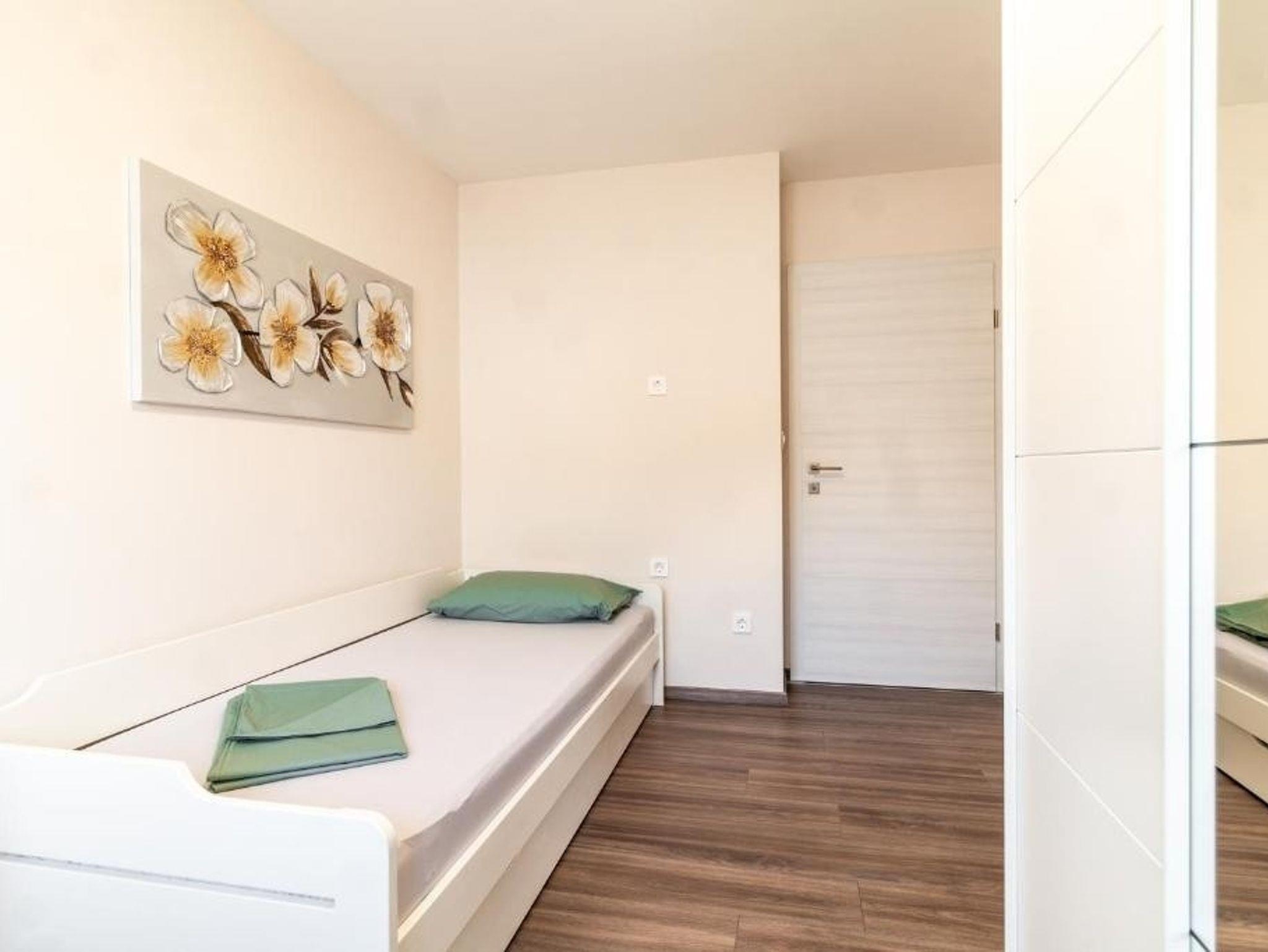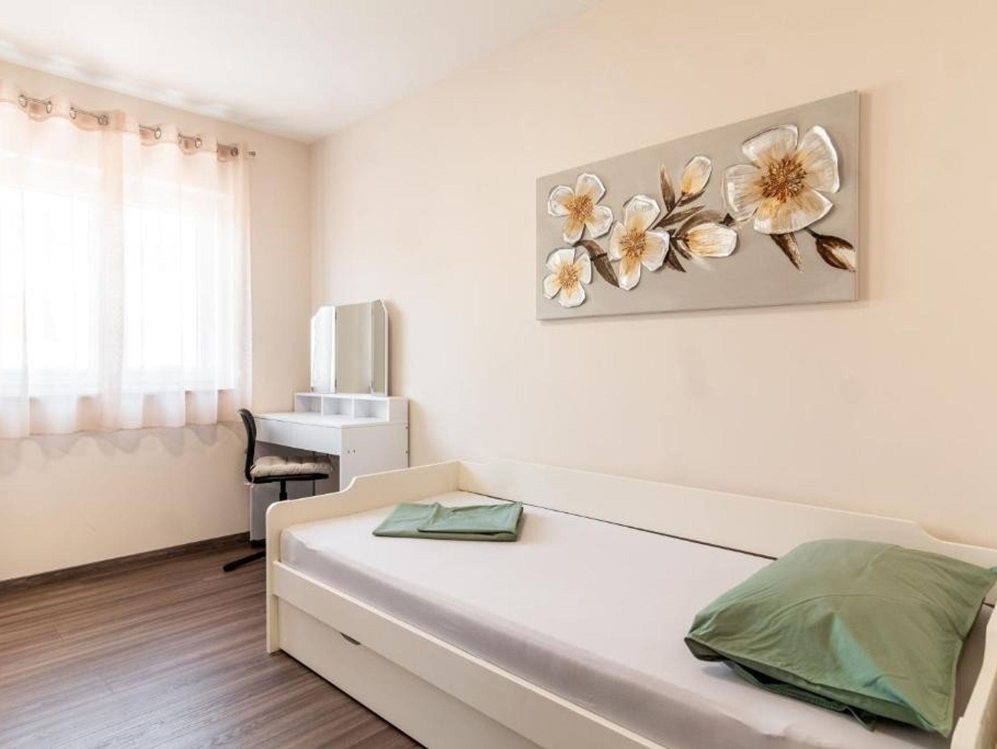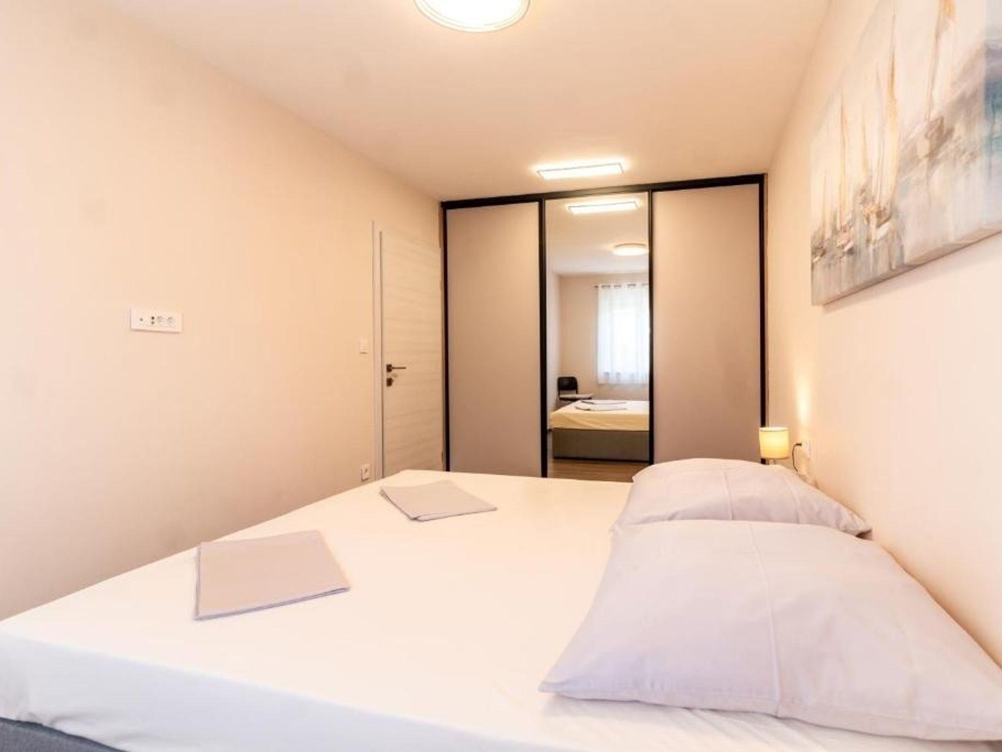 Ferienwohnung bietet Platz für 5 Gäste. Die Betten sind in Schlafzimmern, die es 2 gibt, und in Wohnzimmer, innerhalb einer Gesamtfläche von 75m2, angeordnet. Die Gäste haben eine eigene Terrasse zur Verfügung, auf der sie in warmen Sommernächten genießen können. Das Apartment bietet Meerblick. Es ist erlaubt, Speisen auf dem Gemeinschafts-Grill vorzubereiten. Während ihres Aufenthalts können Gäste das gemeinsam zur Nutzung stehende Schwimmbad benutzen. IM PREIS INBEGRIFFEN: Kurtaxe, Endreinigung, Klimatisierung, Pool, Parkplatz, Internet, Kinderbett, Bügeleisen, Bügelbrett, Föhn. Die Verfügbarkeit zusätzlicher Dienstleistungen in Ihrem reservierten Termin und die Preise derselben (falls nicht aufgeführt) müssen im Voraus überprüft werden. Zusätzliche Dienstleistungen die in der Zahlungsaufforderung nicht aufgeführt sind werden direkt beim Vermieter bezahlt, angenommen der Gast nutzt auch diese.