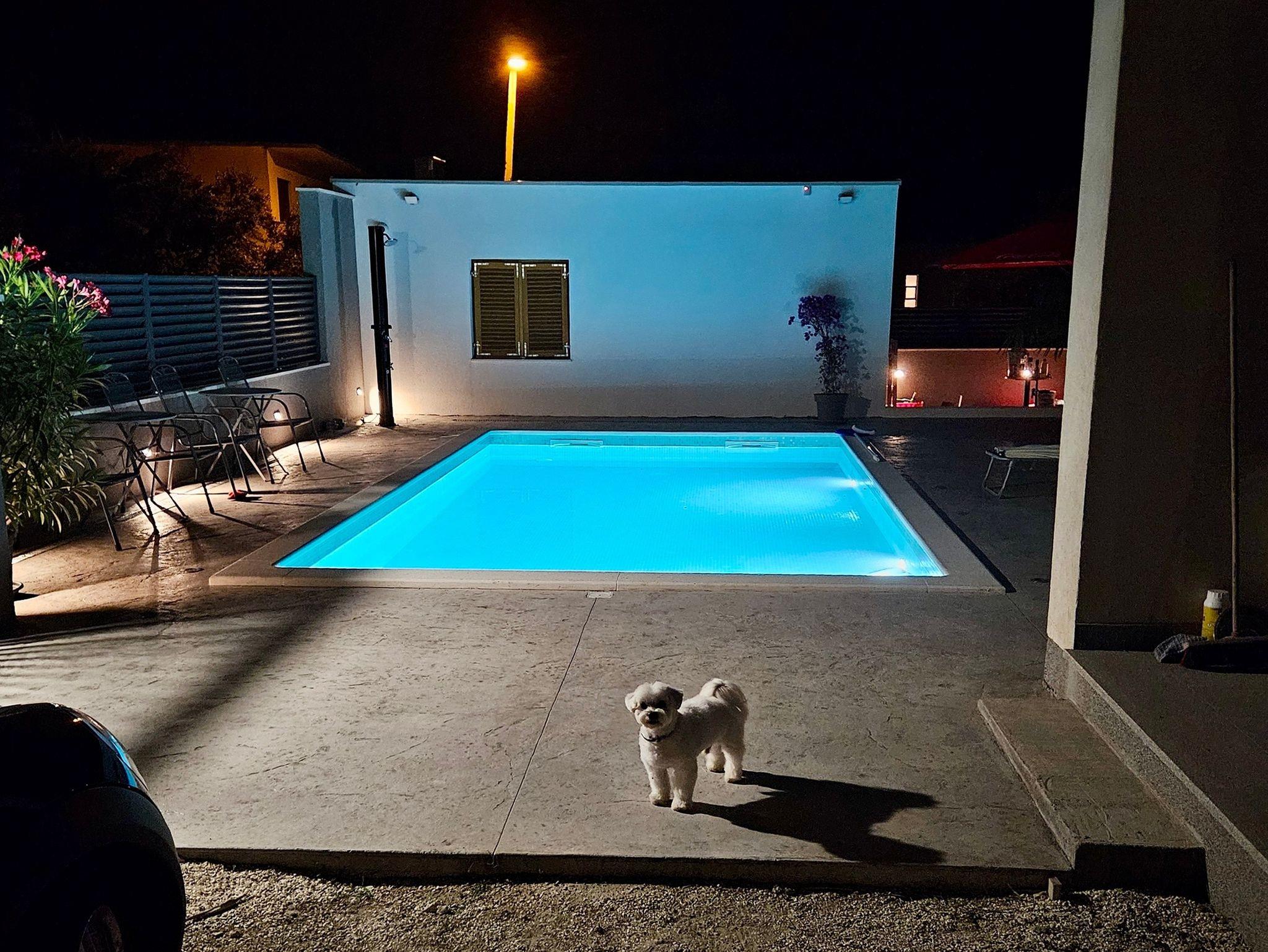 Umgebung des Objekts (Eingerichtet), Hof (200m2, Kinderbereich, Sitzbereich), Parkplatz (Anzahl der Parkplätze: 3, Entfernung vom Objekt: im Hof), Pool: gemeinsam, Dimensionen: 7.8m x 3.8m x 1.5m, Wassertyp: Süßwasser, Grill: gemeinsam, WiFi Internet, Föhn, Bügeleisen, Bügelbrett, Kinderbett