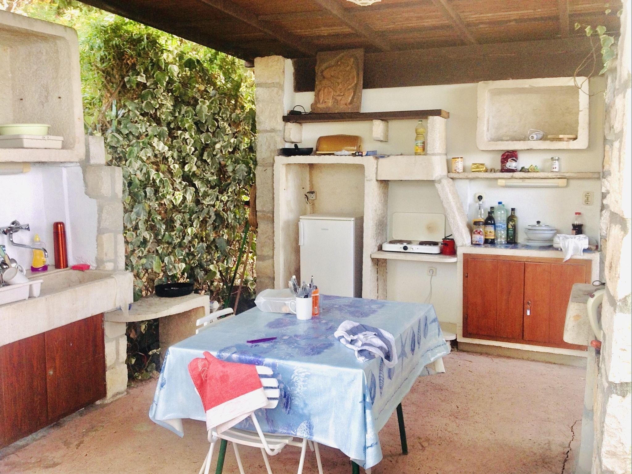 Umgebung des Objekts (Ordentlich), Hof (500m2, Kinderbereich, Sitzbereich), Parkplatz (Anzahl der Parkplätze: 5, Entfernung vom Objekt: im Hof), Grill: gemeinsam, WiFi Internet, Wäschewaschen, Boot, Föhn, Bügeleisen, Bügelbrett, Liegestühle, Kinderbett