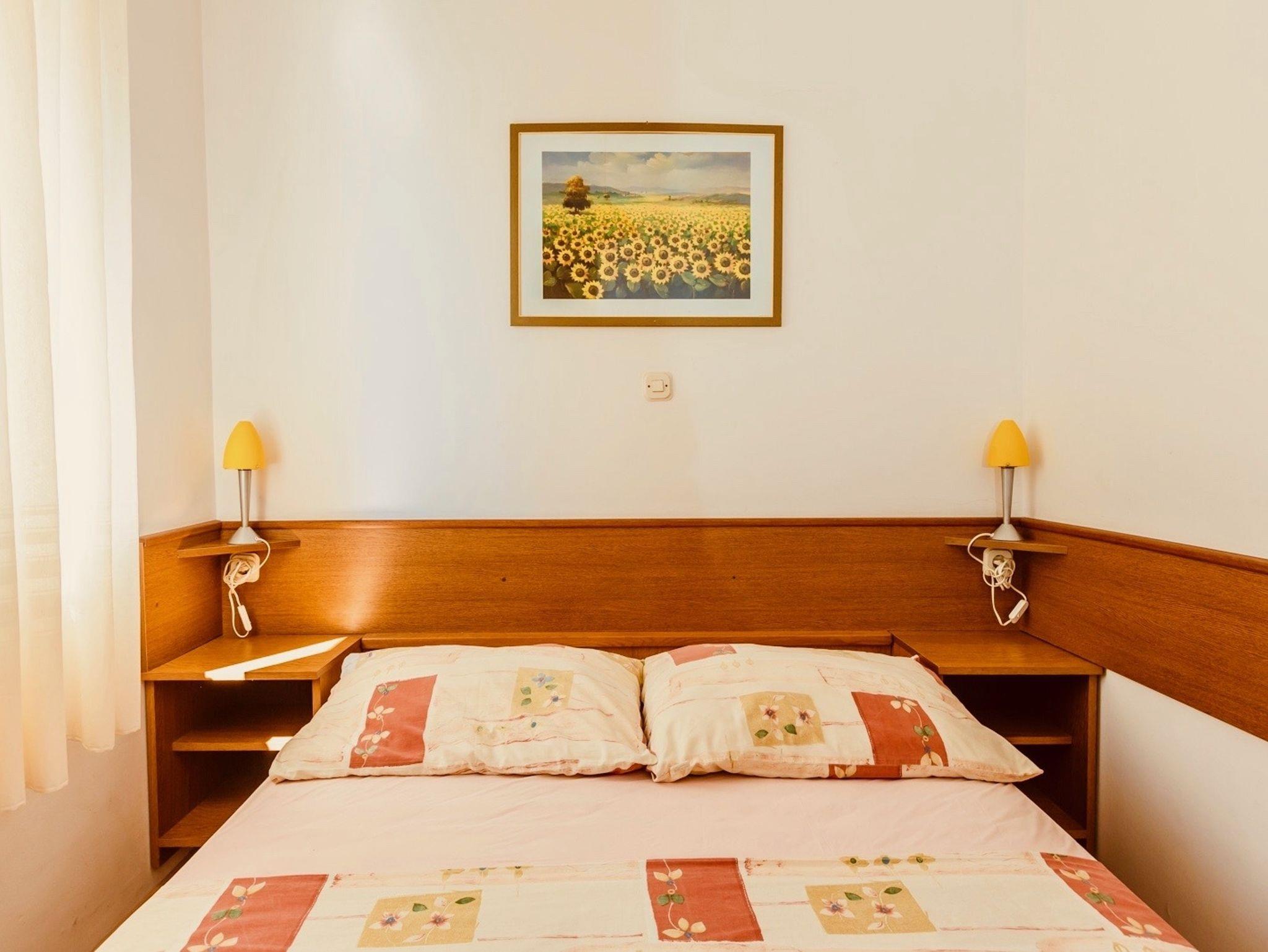 Ferienwohnung bietet Platz für 10 Gäste. Die Betten sind in Schlafzimmern, die es 4 gibt, innerhalb einer Gesamtfläche von 108m2, angeordnet. Die Gäste haben eine eigene Terrasse zur Verfügung, auf der sie in warmen Sommernächten genießen können. Das Apartment bietet Meerblick. Es ist erlaubt, Speisen auf dem Gemeinschafts-Grill vorzubereiten. Unterkunftseinheit hat Räume, die von dem Rest der Einheit abgetrennt werden. IM PREIS INBEGRIFFEN: Kurtaxe, Endreinigung, Klimatisierung, Parkplatz, Internet, Wäschewaschen, Kinderbett, Bügeleisen, Bügelbrett, Föhn, Liegestühle. UNVERBINDLICHE ZUSÄTZLICHE KOSTEN: Boot (15,00 € pro Nacht). Die Verfügbarkeit zusätzlicher Dienstleistungen in Ihrem reservierten Termin und die Preise derselben (falls nicht aufgeführt) müssen im Voraus überprüft werden. Zusätzliche Dienstleistungen die in der Zahlungsaufforderung nicht aufgeführt sind werden direkt beim Vermieter bezahlt, angenommen der Gast nutzt auch diese. Ermäßigung auf den Grundpreis: Gratistag 14=13 (bei einem Aufenthalt von 14 Tagen oder mehr erhalten Sie einen Gratistag für den Aufenthalt bis 31.12.26).