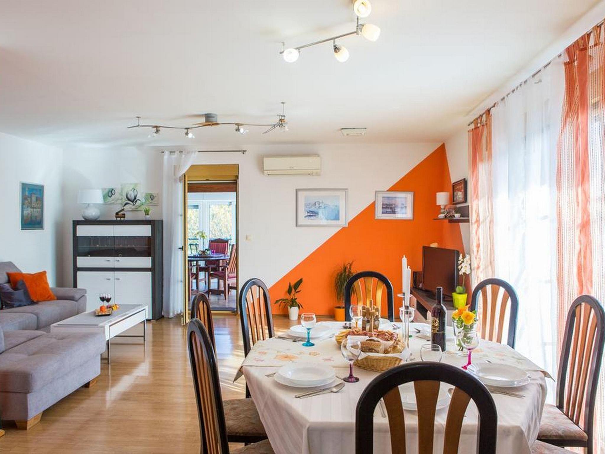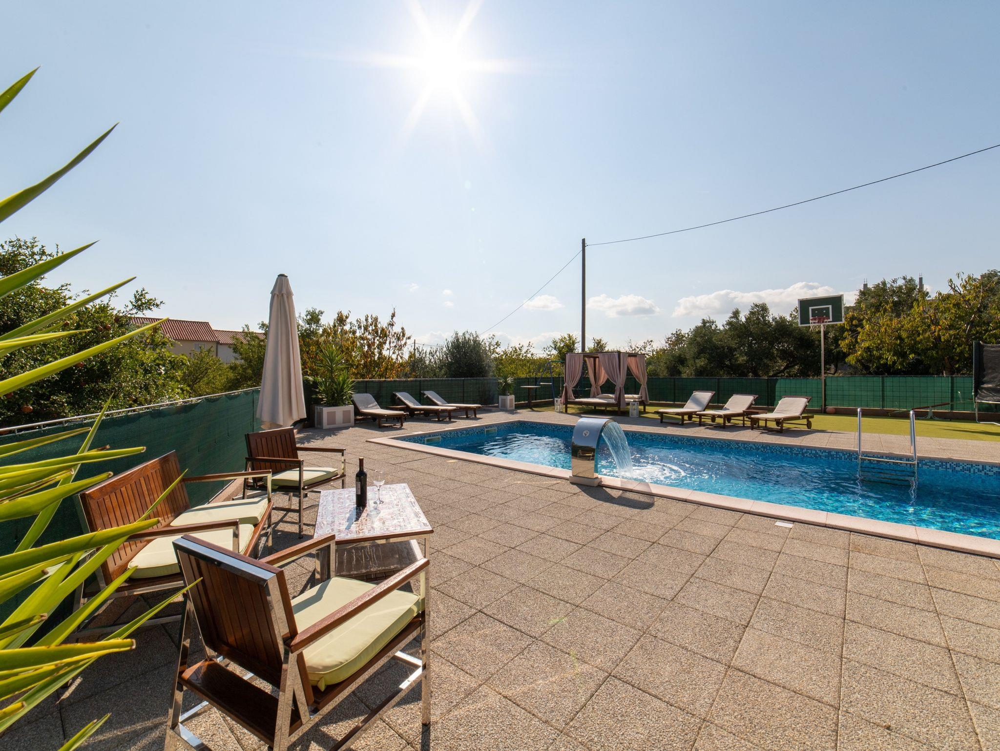 Haus bietet Platz für 8 Gäste. Die Betten sind in Schlafzimmern, die es 4 gibt, innerhalb einer Gesamtfläche von 200m2, angeordnet. Die Gäste haben eine eigene Terrasse zur Verfügung, auf der sie in warmen Sommernächten genießen können. Das Haus bietet Meerblick. Für vollen Genuss und Entspannung gibt es einen privaten Grill für Gäste dieser Unterkunft. Während ihres Aufenthalts können sich Gäste im privaten Schwimmbad entspannen. IM PREIS INBEGRIFFEN: Kurtaxe, Endreinigung, Klimatisierung, Pool, Parkplatz, Internet, Kinderbett, Bügeleisen, Bügelbrett, Föhn. Die Verfügbarkeit zusätzlicher Dienstleistungen in Ihrem reservierten Termin und die Preise derselben (falls nicht aufgeführt) müssen im Voraus überprüft werden. Zusätzliche Dienstleistungen die in der Zahlungsaufforderung nicht aufgeführt sind werden direkt beim Vermieter bezahlt, angenommen der Gast nutzt auch diese.