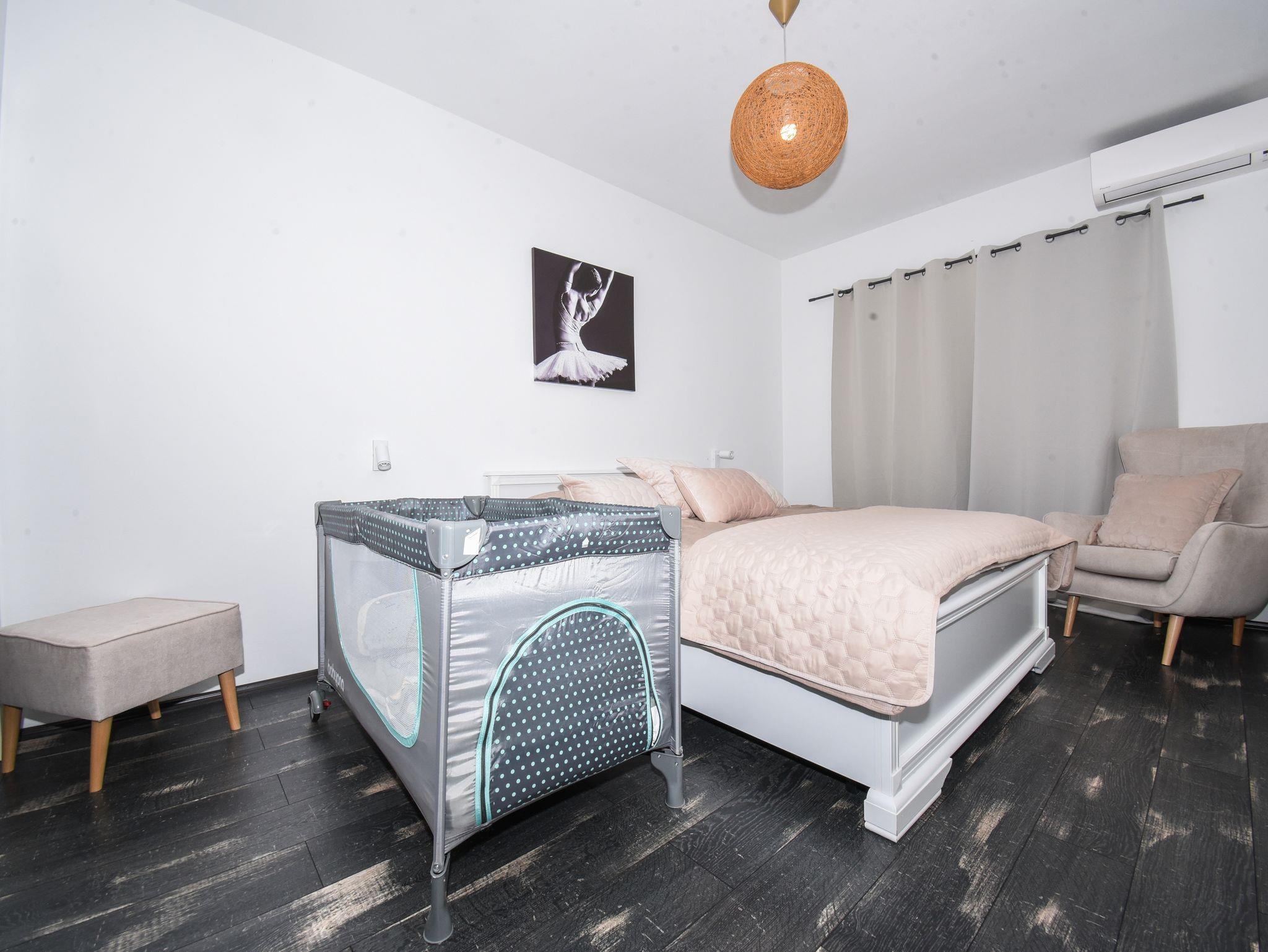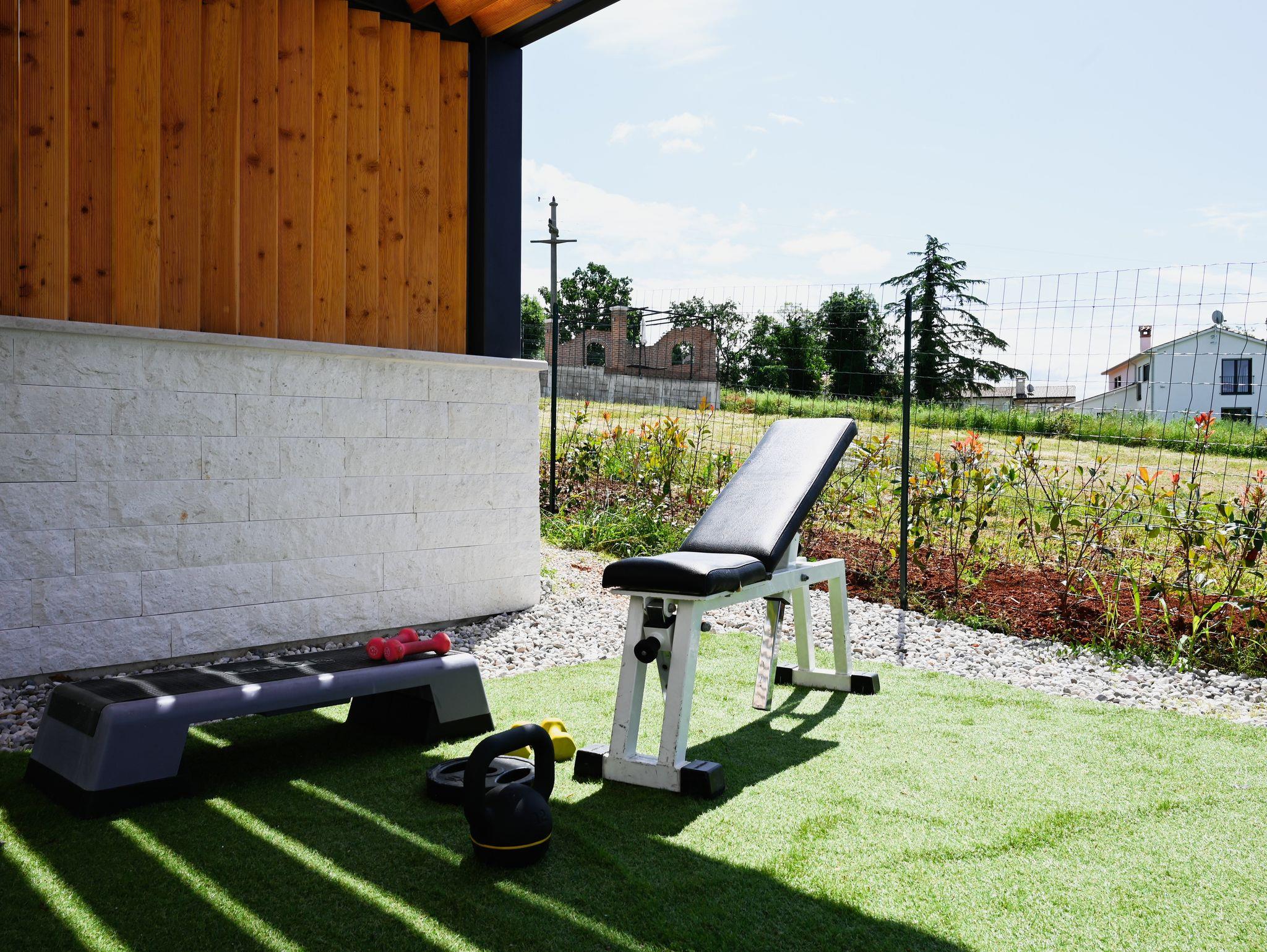 Umgebung des Objekts (Eingerichtet), Hof (350m2, Kinderbereich, Sitzbereich), Parkplatz (Anzahl der Parkplätze: 5, Entfernung vom Objekt: im Hof), Pool: privat, Dimensionen: 7m x 4m x 2m, Heizung: Ja, WiFi Internet, Fahrrad (Anzahl: 3), Föhn, Bügeleisen, Bügelbrett, Tragbarer Grill, Kinderbett