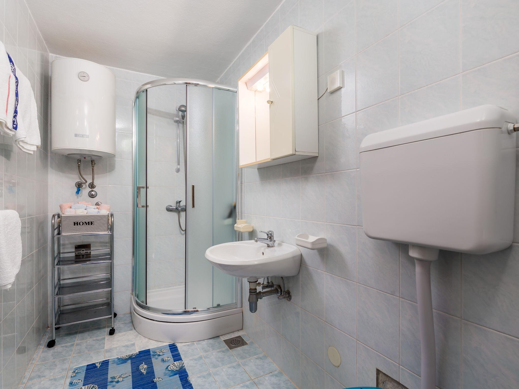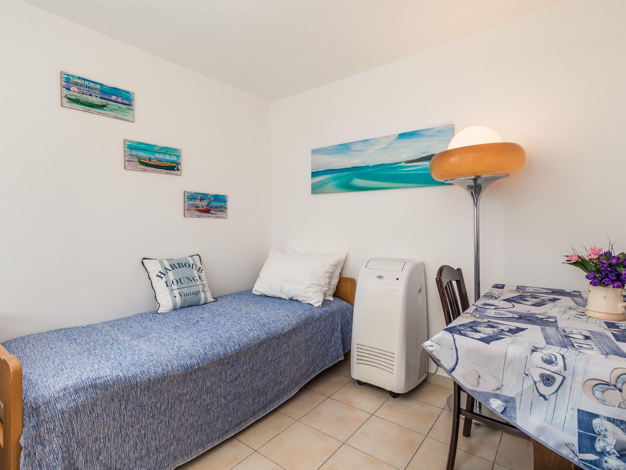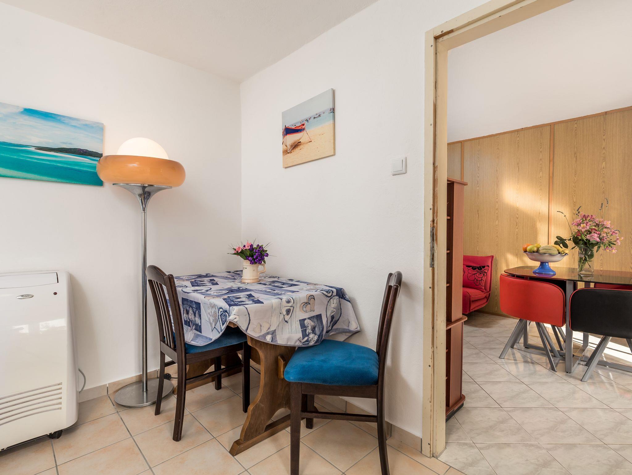Ferienwohnung bietet Platz für 4 Gäste. Die Betten sind in Schlafzimmern, die es 2 gibt, innerhalb einer Gesamtfläche von 50m2, angeordnet. Die Gäste haben eine eigene Terrasse zur Verfügung, auf der sie in warmen Sommernächten genießen können. Es ist erlaubt, Speisen auf dem Gemeinschafts-Grill vorzubereiten. In der Unterkunftseinheit besteht die Möglichkeit des Mitbringens von Haustieren gegen Aufpreis. IM PREIS INBEGRIFFEN: Kurtaxe, Endreinigung, Klimatisierung, Parkplatz, Internet, Wäschewaschen, Kinderbett, Bügeleisen, Bügelbrett, Föhn. VERBINDLICHE ZUSÄTZLICHE KOSTEN: Aufzahlung für Kurzaufenthalte (prozentualer Zuschlag pro Nächtigungsanzahl: 30% - 1, 20% - 2, 10% - 3). UNVERBINDLICHE ZUSÄTZLICHE KOSTEN: Haustiere (10,00 € pro Nacht). Die Verfügbarkeit zusätzlicher Dienstleistungen in Ihrem reservierten Termin und die Preise derselben (falls nicht aufgeführt) müssen im Voraus überprüft werden. Zusätzliche Dienstleistungen die in der Zahlungsaufforderung nicht aufgeführt sind werden direkt beim Vermieter bezahlt, angenommen der Gast nutzt auch diese. Ermäßigung auf den Grundpreis: Gratistag 14=13 (bei einem Aufenthalt von 14 Tagen oder mehr erhalten Sie einen Gratistag für den Aufenthalt bis 31.12.26).