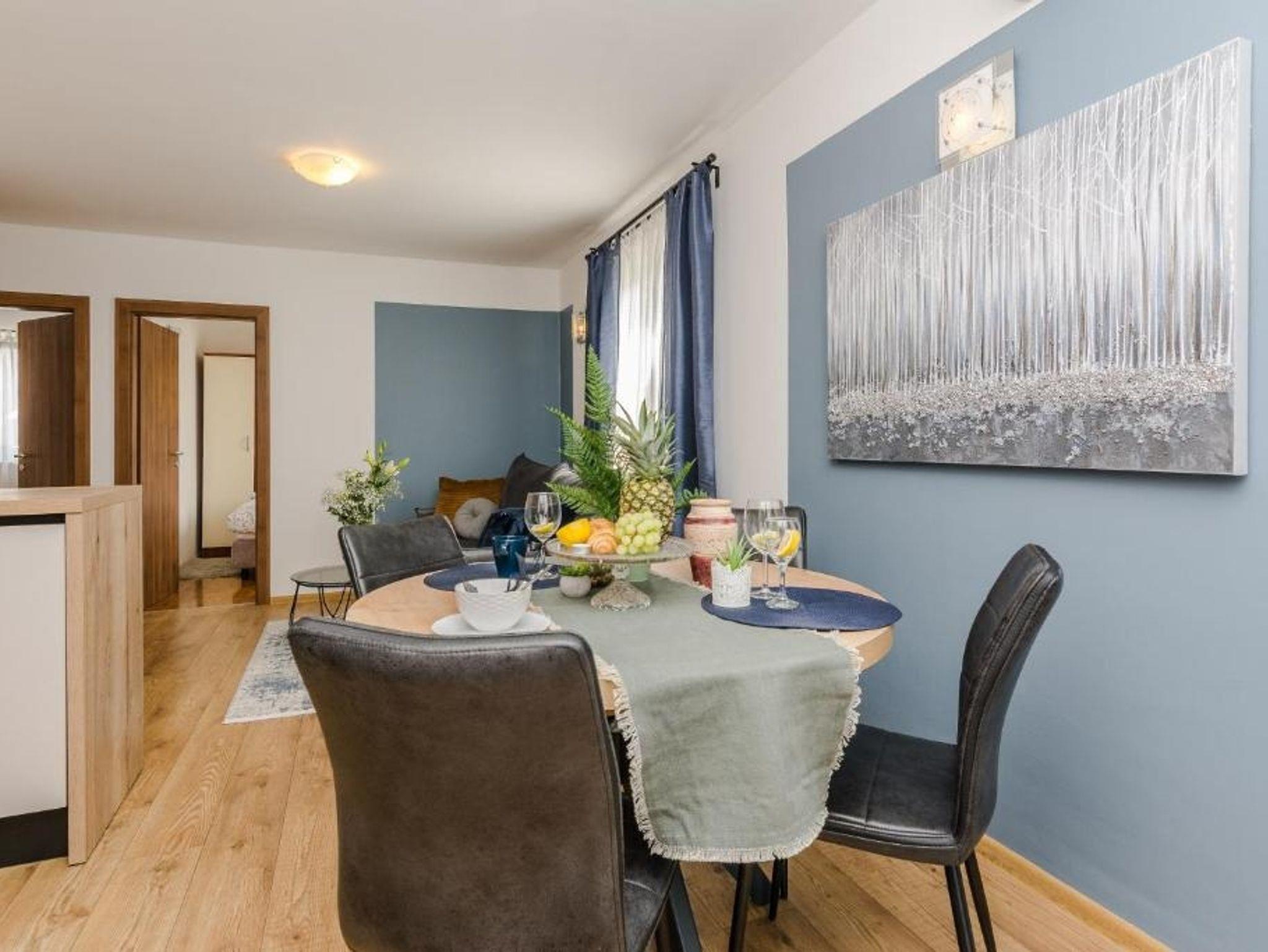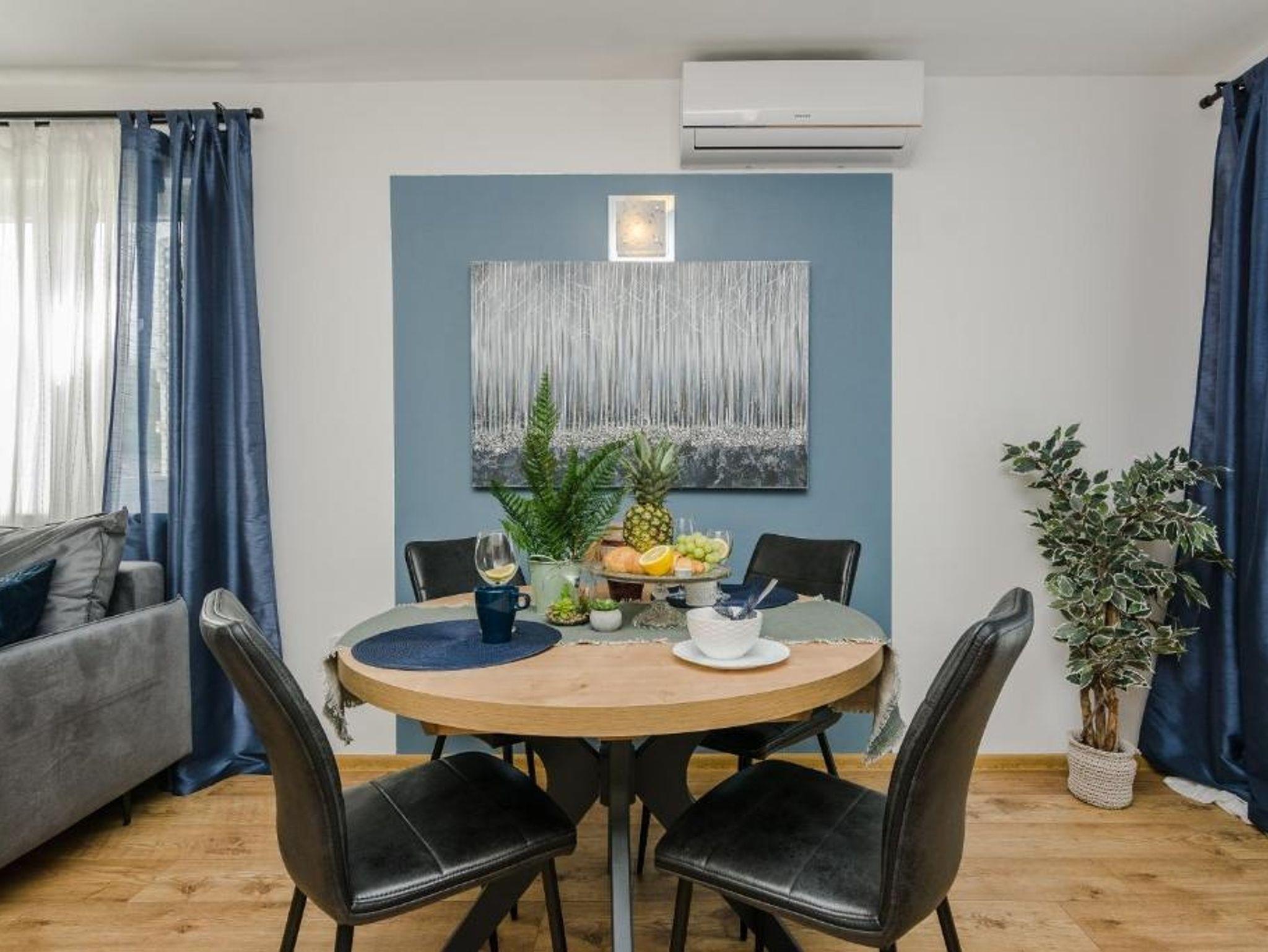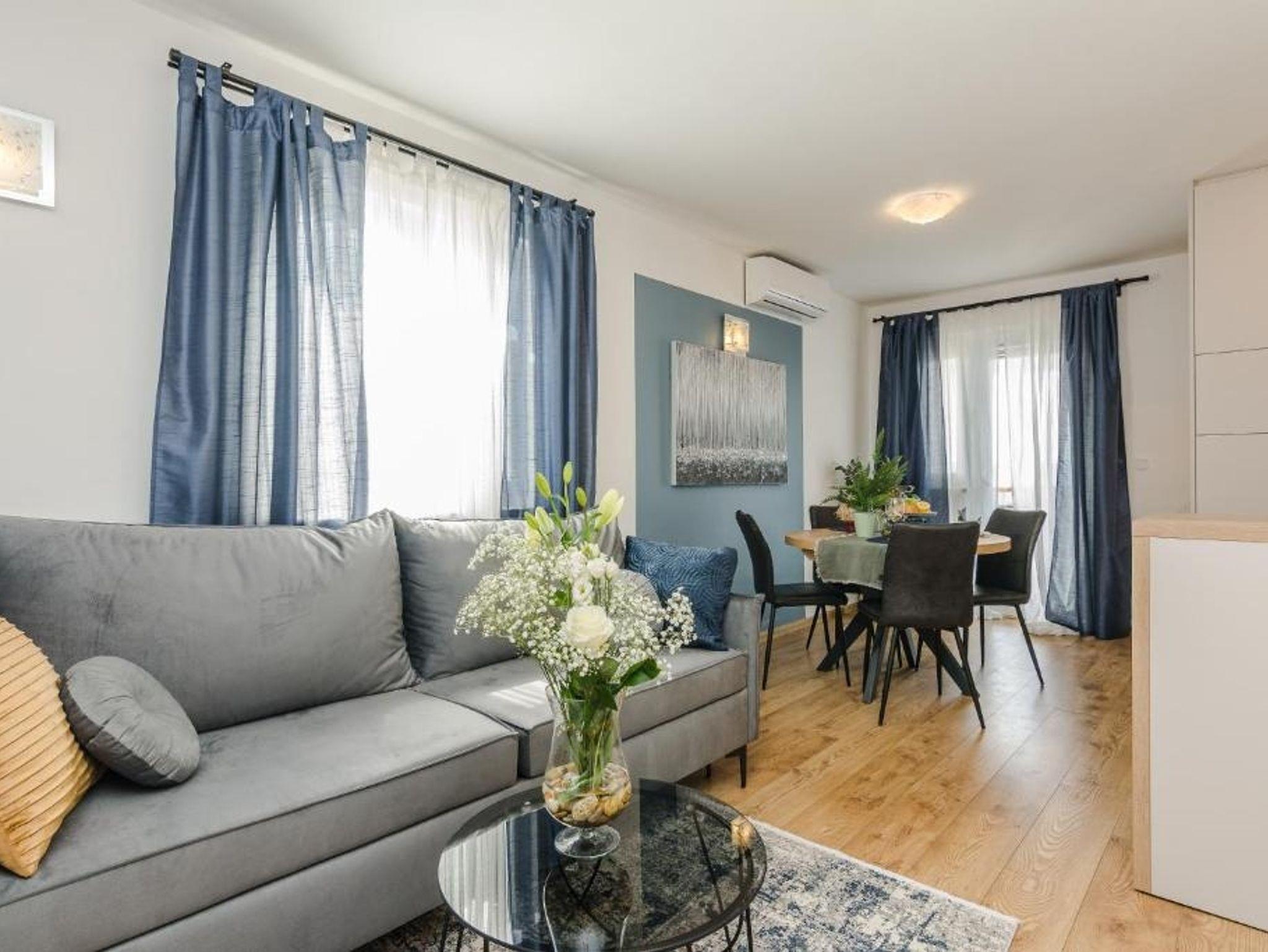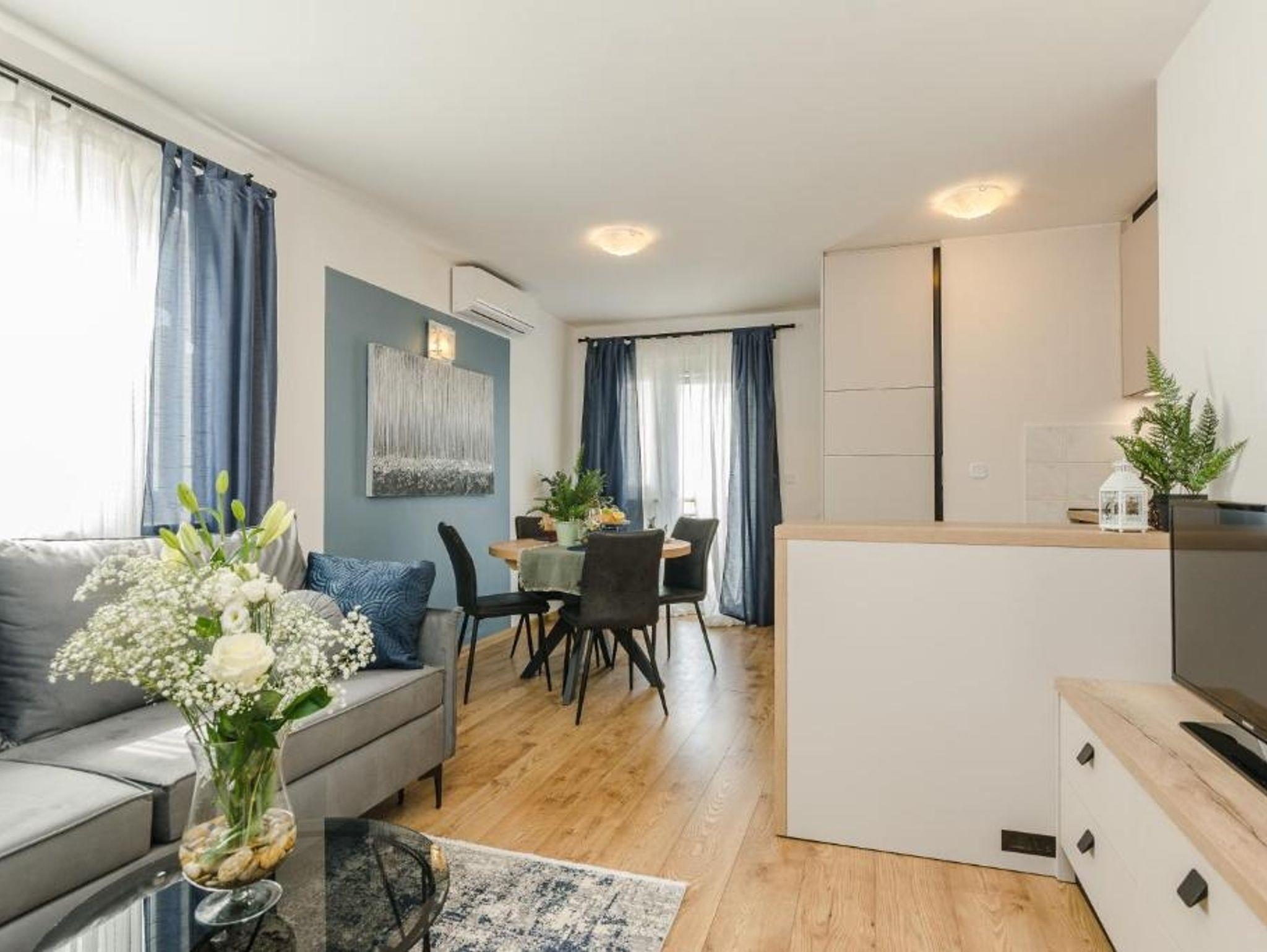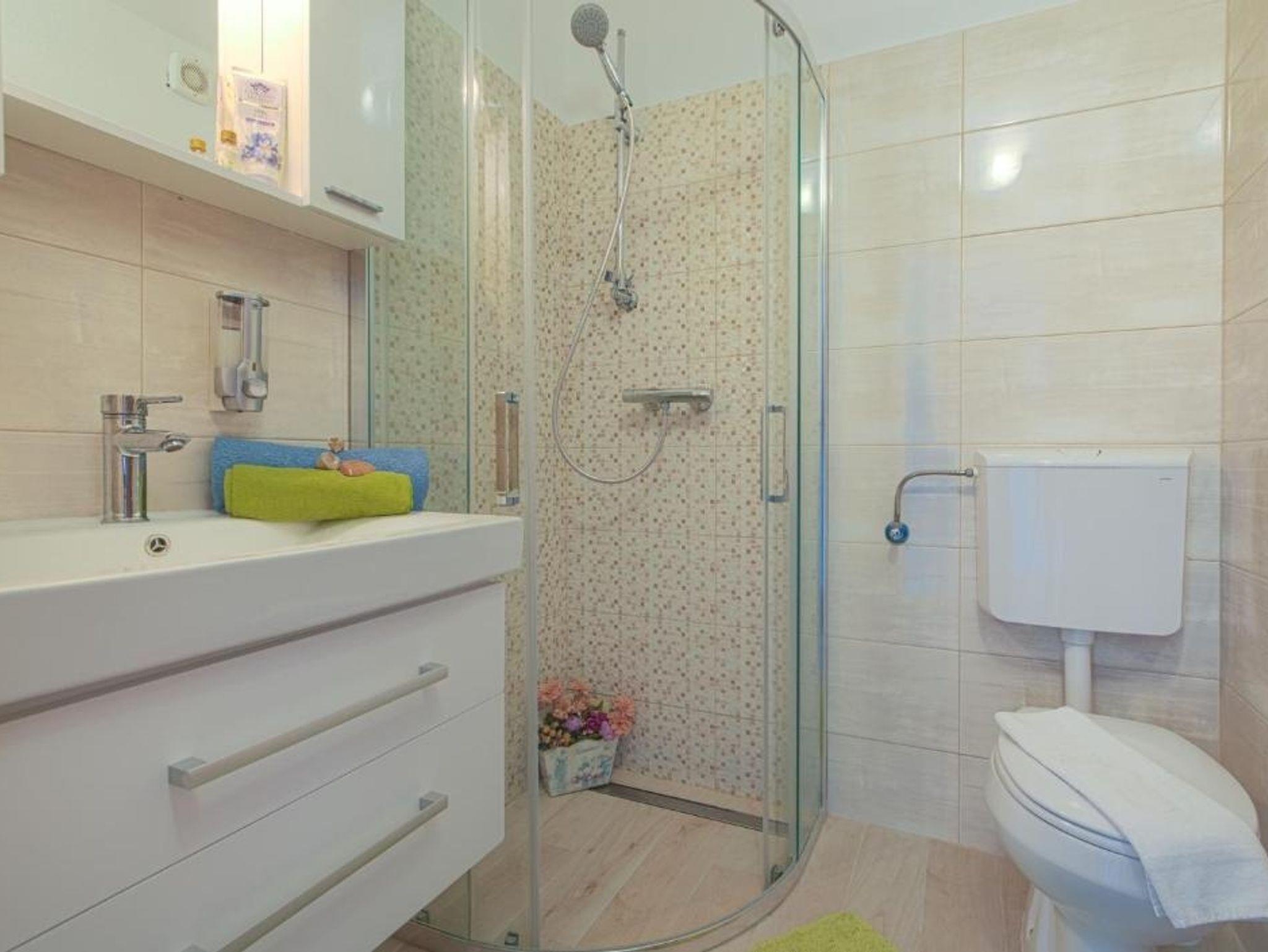 Ferienwohnung bietet Platz für 5 Gäste. Die Betten sind in Schlafzimmern, die es 2 gibt, und in Wohnzimmer, innerhalb einer Gesamtfläche von 58m2, angeordnet. Die Gäste haben eine eigene Terrasse zur Verfügung, auf der sie in warmen Sommernächten genießen können. Das Apartment bietet Meerblick. Es ist erlaubt, Speisen auf dem Gemeinschafts-Grill vorzubereiten. Während ihres Aufenthalts können Gäste das gemeinsam zur Nutzung stehende Schwimmbad benutzen. IM PREIS INBEGRIFFEN: Endreinigung, Klimatisierung, Pool, Parkplatz, Internet, Kinderbett, Bügeleisen, Bügelbrett, Föhn. VERBINDLICHE ZUSÄTZLICHE KOSTEN: Kurtaxe (Erwachsene 0,93 € - 1,50 € Nacht/Person, Kinderermäßigung 12 - 17 Jahre), Aufzahlung für Kurzaufenthalte (prozentualer Zuschlag pro Nächtigungsanzahl: 30% - 1, 20% - 2, 10% - 3). Die Verfügbarkeit zusätzlicher Dienstleistungen in Ihrem reservierten Termin und die Preise derselben (falls nicht aufgeführt) müssen im Voraus überprüft werden. Zusätzliche Dienstleistungen die in der Zahlungsaufforderung nicht aufgeführt sind werden direkt beim Vermieter bezahlt, angenommen der Gast nutzt auch diese.