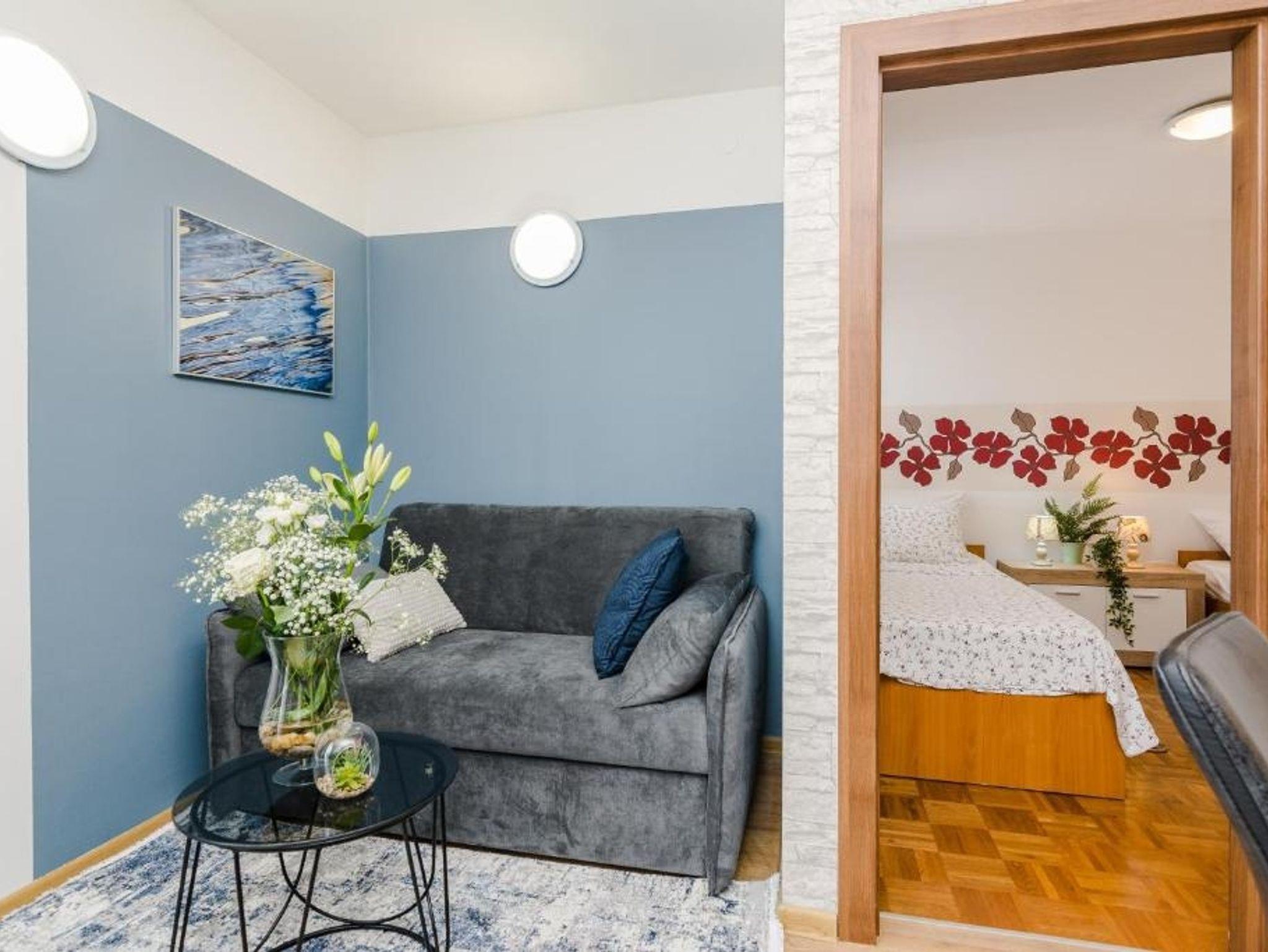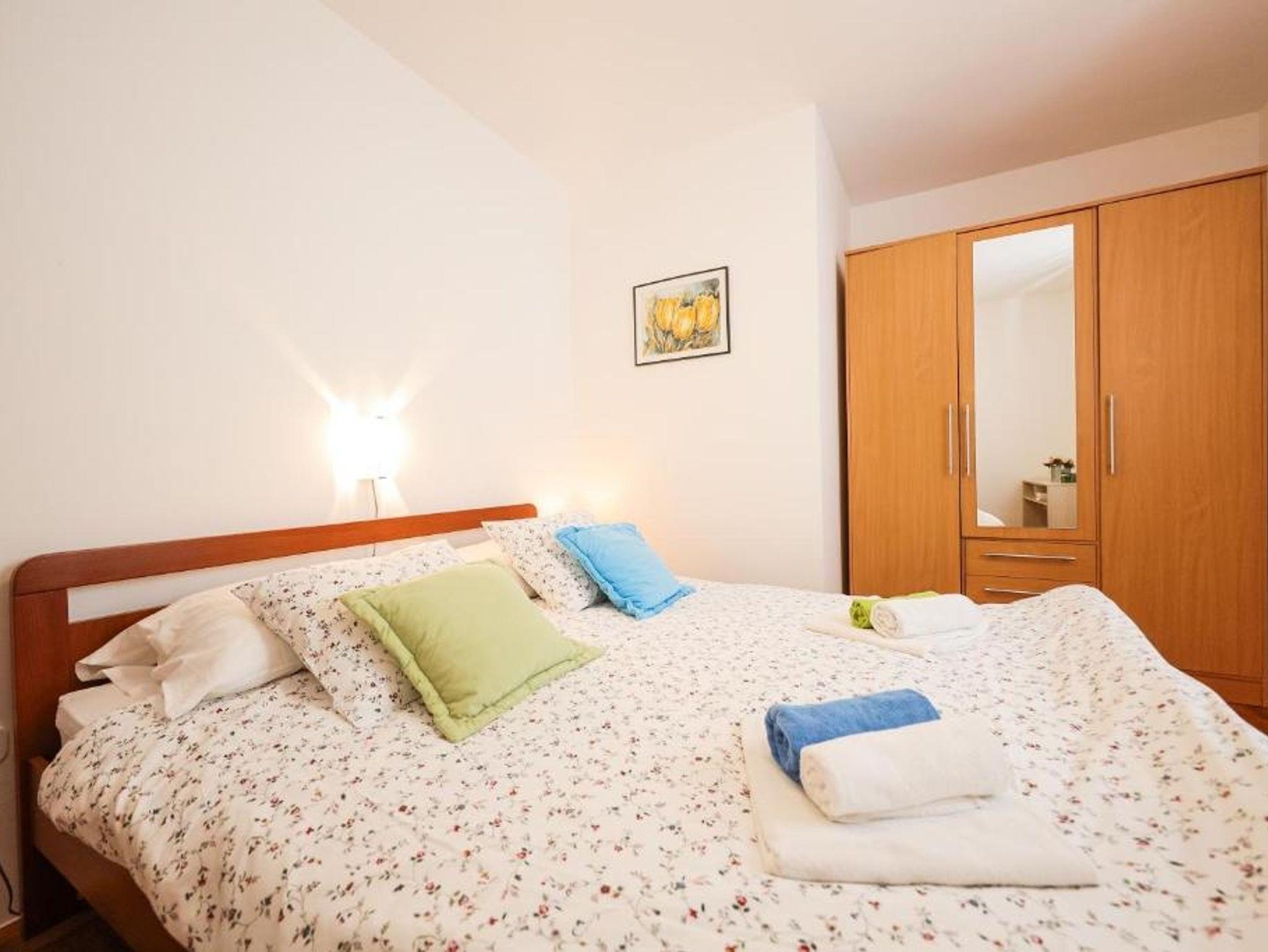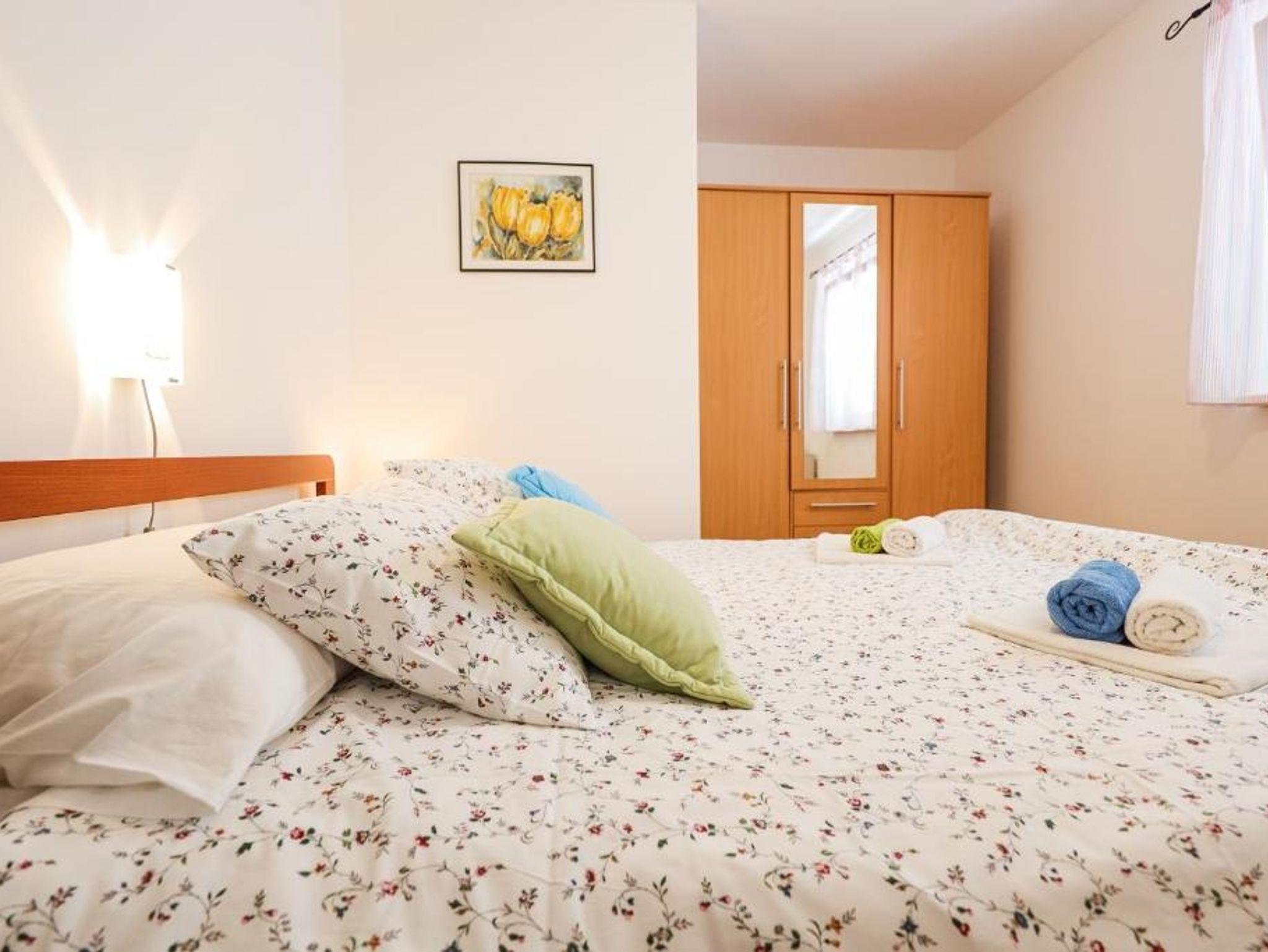 Ferienwohnung bietet Platz für 4 Gäste. Die Betten sind in Schlafzimmern, die es 2 gibt, innerhalb einer Gesamtfläche von 48m2, angeordnet. Die Gäste haben eine eigene Terrasse zur Verfügung, auf der sie in warmen Sommernächten genießen können. Das Apartment bietet Meerblick. Es ist erlaubt, Speisen auf dem Gemeinschafts-Grill vorzubereiten. Während ihres Aufenthalts können Gäste das gemeinsam zur Nutzung stehende Schwimmbad benutzen. IM PREIS INBEGRIFFEN: Endreinigung, Klimatisierung, Pool, Parkplatz, Internet, Kinderbett, Bügeleisen, Bügelbrett, Föhn. VERBINDLICHE ZUSÄTZLICHE KOSTEN: Kurtaxe (Erwachsene 0,93 € - 1,50 € Nacht/Person, Kinderermäßigung 12 - 17 Jahre), Aufzahlung für Kurzaufenthalte (prozentualer Zuschlag pro Nächtigungsanzahl: 30% - 1, 20% - 2, 10% - 3). Die Verfügbarkeit zusätzlicher Dienstleistungen in Ihrem reservierten Termin und die Preise derselben (falls nicht aufgeführt) müssen im Voraus überprüft werden. Zusätzliche Dienstleistungen die in der Zahlungsaufforderung nicht aufgeführt sind werden direkt beim Vermieter bezahlt, angenommen der Gast nutzt auch diese.