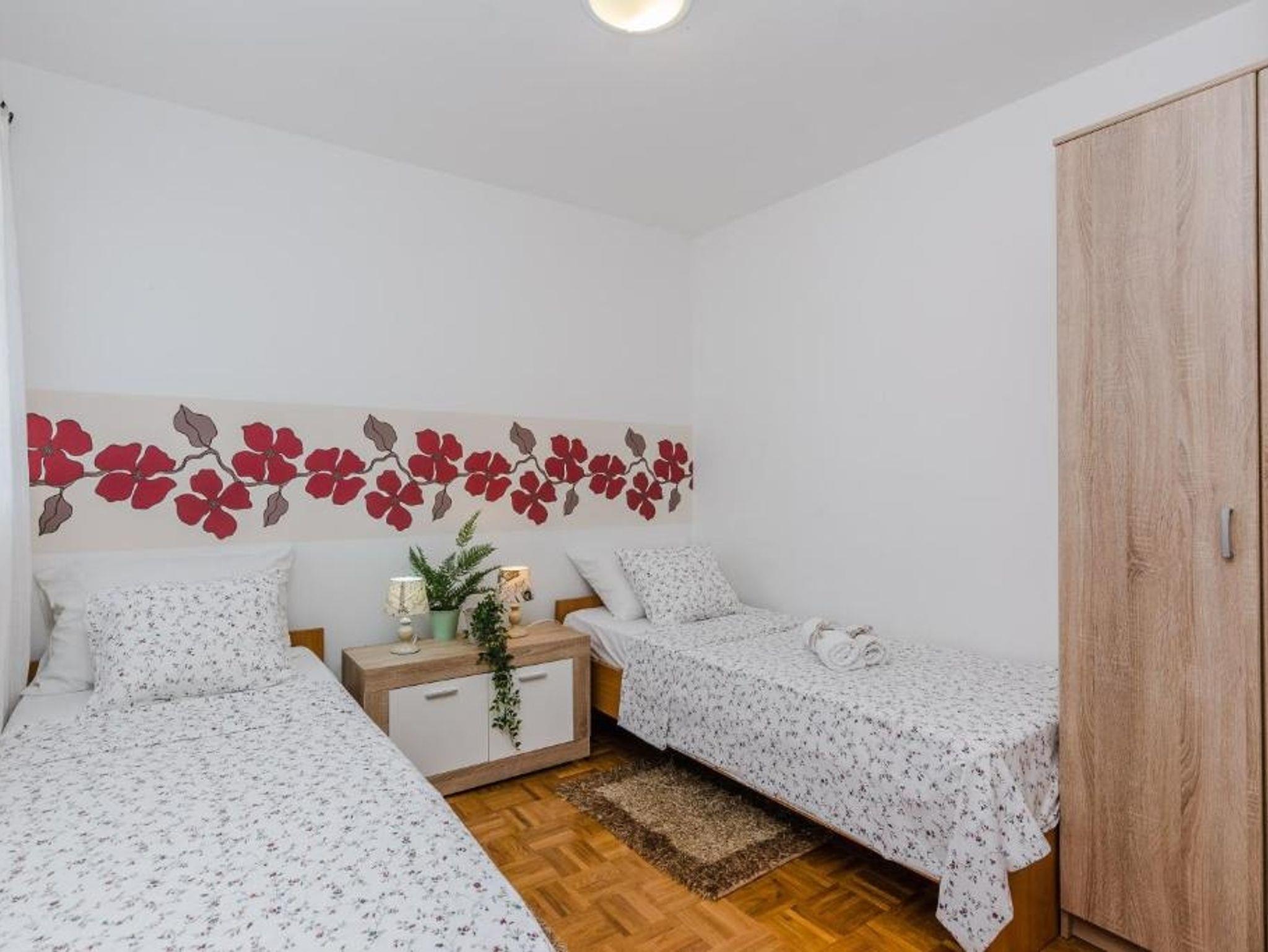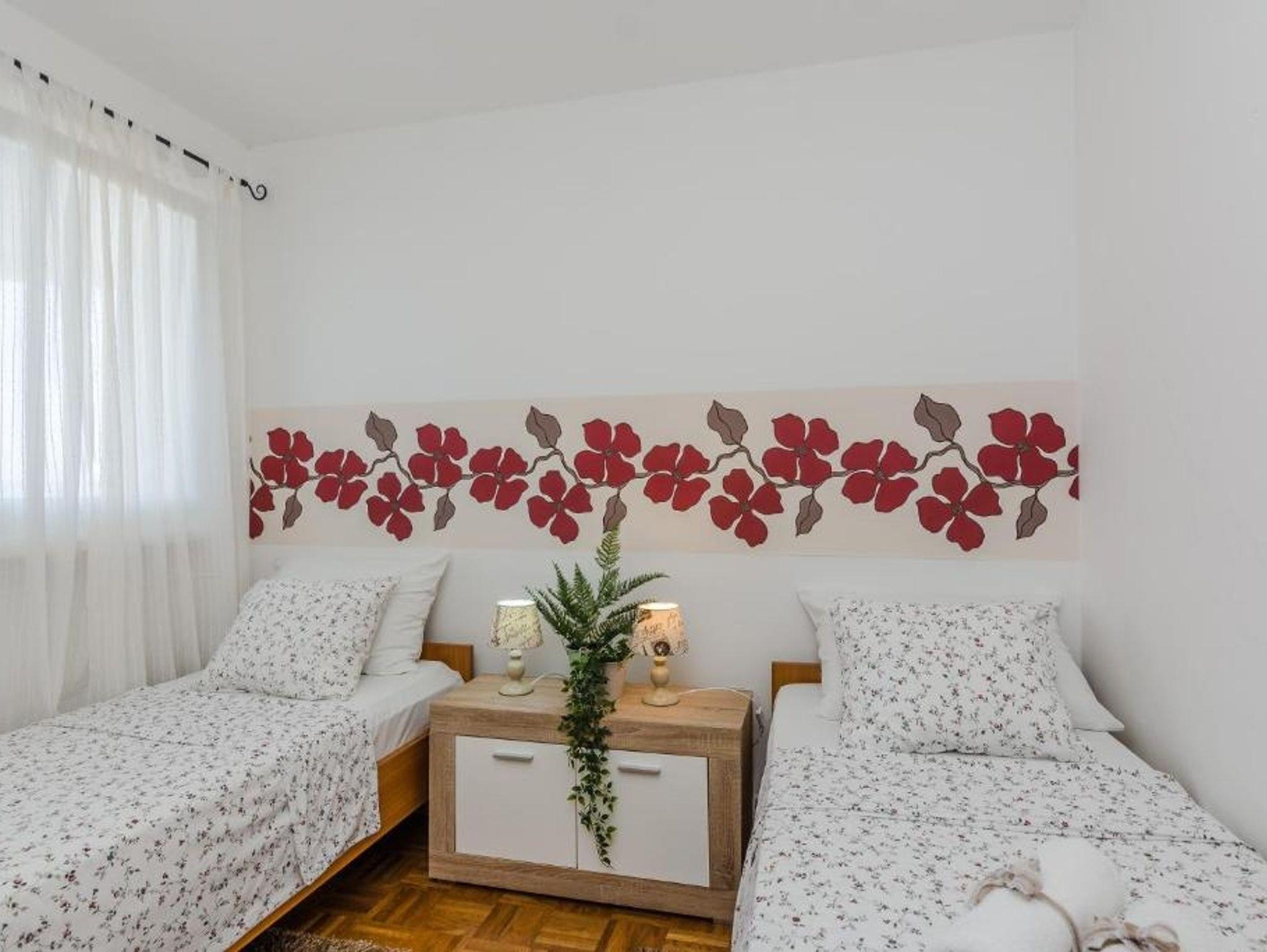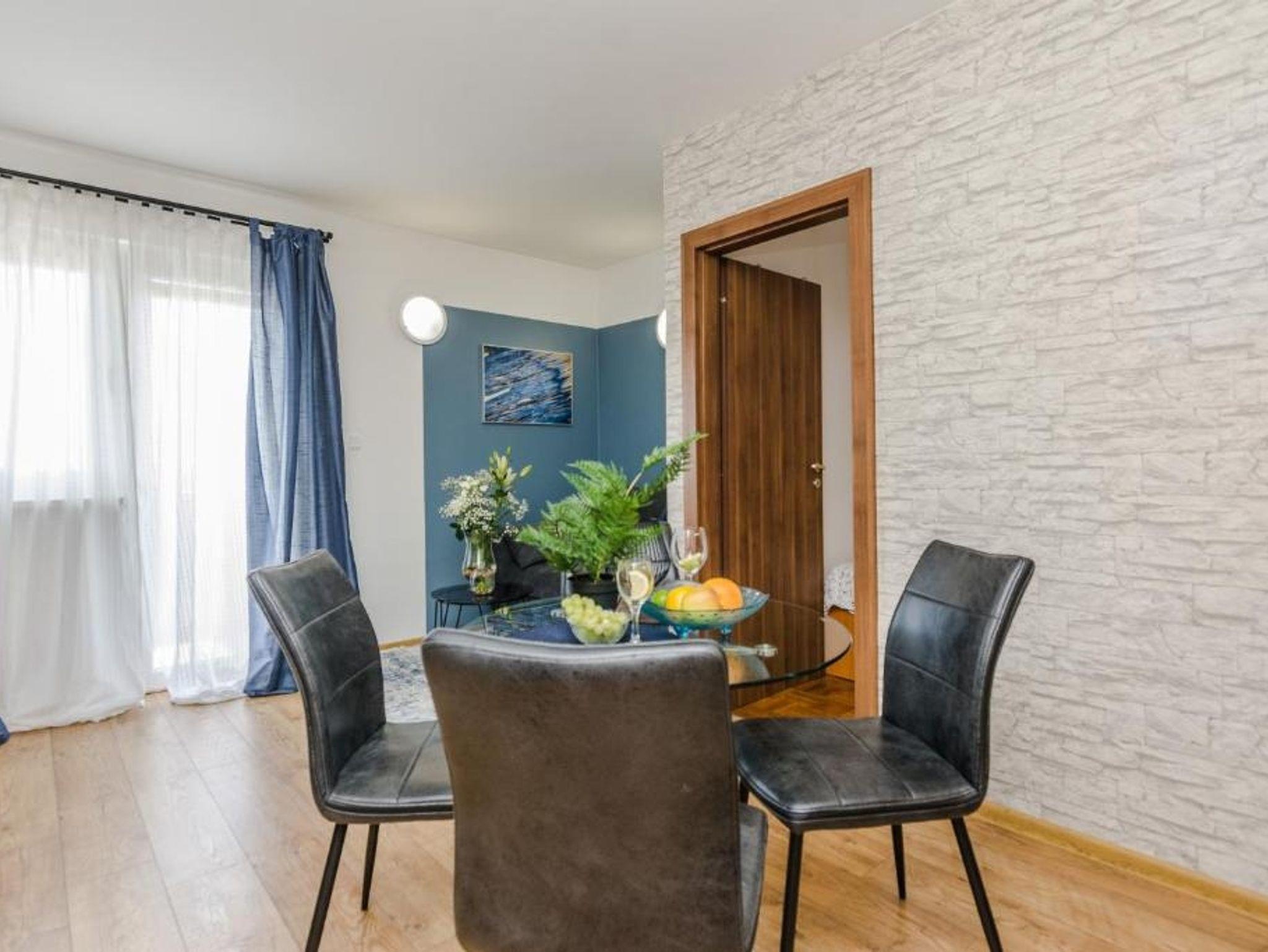 Ferienwohnung bietet Platz für 4 Gäste. Die Betten sind in Schlafzimmern, die es 2 gibt, innerhalb einer Gesamtfläche von 48m2, angeordnet. Die Gäste haben eine eigene Terrasse zur Verfügung, auf der sie in warmen Sommernächten genießen können. Das Apartment bietet Meerblick. Es ist erlaubt, Speisen auf dem Gemeinschafts-Grill vorzubereiten. Während ihres Aufenthalts können Gäste das gemeinsam zur Nutzung stehende Schwimmbad benutzen. IM PREIS INBEGRIFFEN: Endreinigung, Klimatisierung, Pool, Parkplatz, Internet, Kinderbett, Bügeleisen, Bügelbrett, Föhn. VERBINDLICHE ZUSÄTZLICHE KOSTEN: Kurtaxe (Erwachsene 0,93 € - 1,50 € Nacht/Person, Kinderermäßigung 12 - 17 Jahre), Aufzahlung für Kurzaufenthalte (prozentualer Zuschlag pro Nächtigungsanzahl: 30% - 1, 20% - 2, 10% - 3). Die Verfügbarkeit zusätzlicher Dienstleistungen in Ihrem reservierten Termin und die Preise derselben (falls nicht aufgeführt) müssen im Voraus überprüft werden. Zusätzliche Dienstleistungen die in der Zahlungsaufforderung nicht aufgeführt sind werden direkt beim Vermieter bezahlt, angenommen der Gast nutzt auch diese.