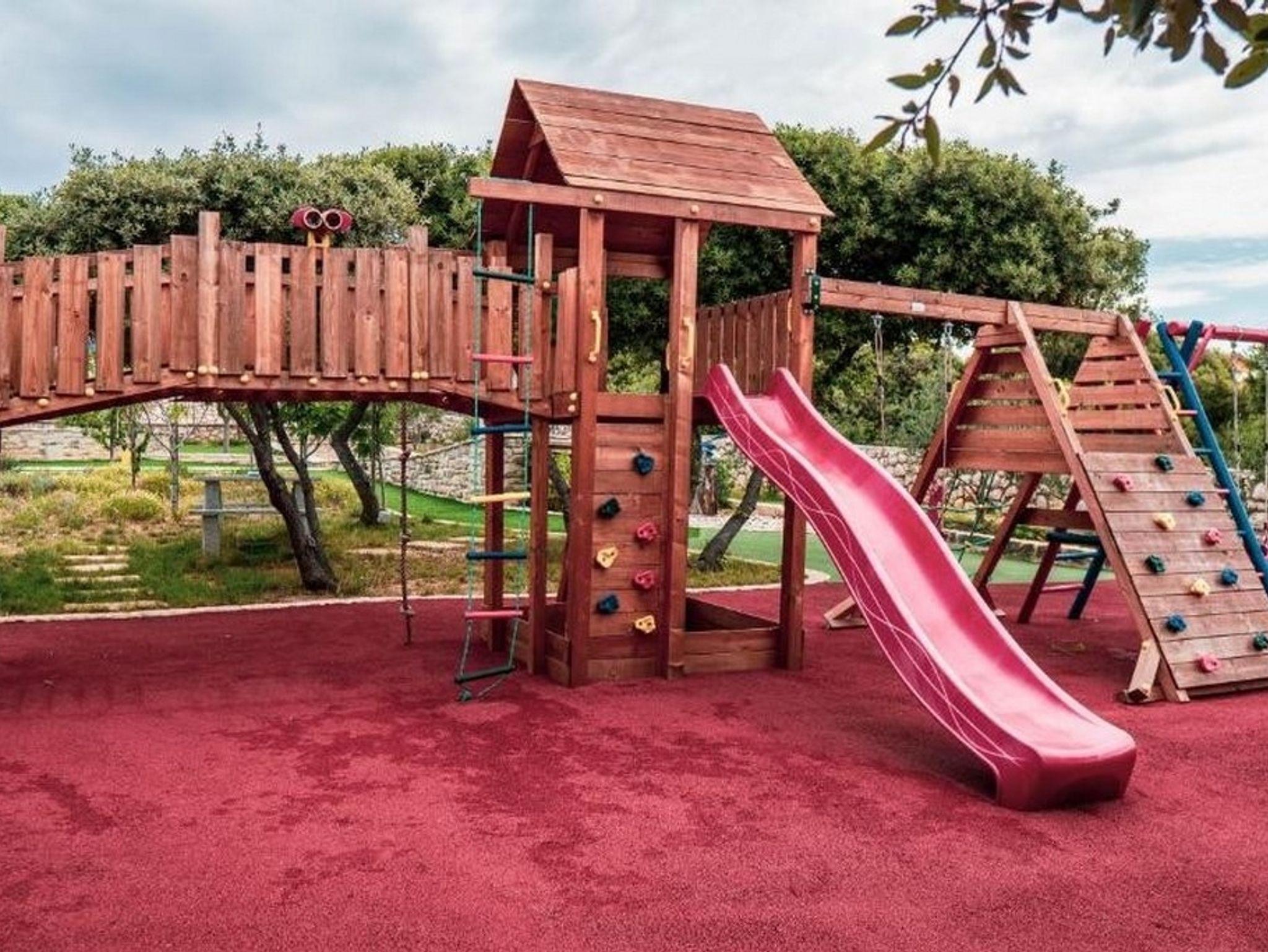 Umgebung des Objekts (Eingerichtet), Hof (1500m2, Wird mit einem anderen Objekt mitbenutzt, Kinderbereich, Sitzbereich), Parkplatz (Anzahl der Parkplätze: 4, Entfernung vom Objekt: im Hof), Pool: gemeinsam, Dimensionen: 12m x 5m x 1.5m, Wassertyp: Salzwasser, Heizung: Ja, Grill: gemeinsam, WiFi Internet, Wäschewaschen, Boot, Fahrrad (Anzahl: 5), Föhn, Bügeleisen, Bügelbrett, Kinderbett