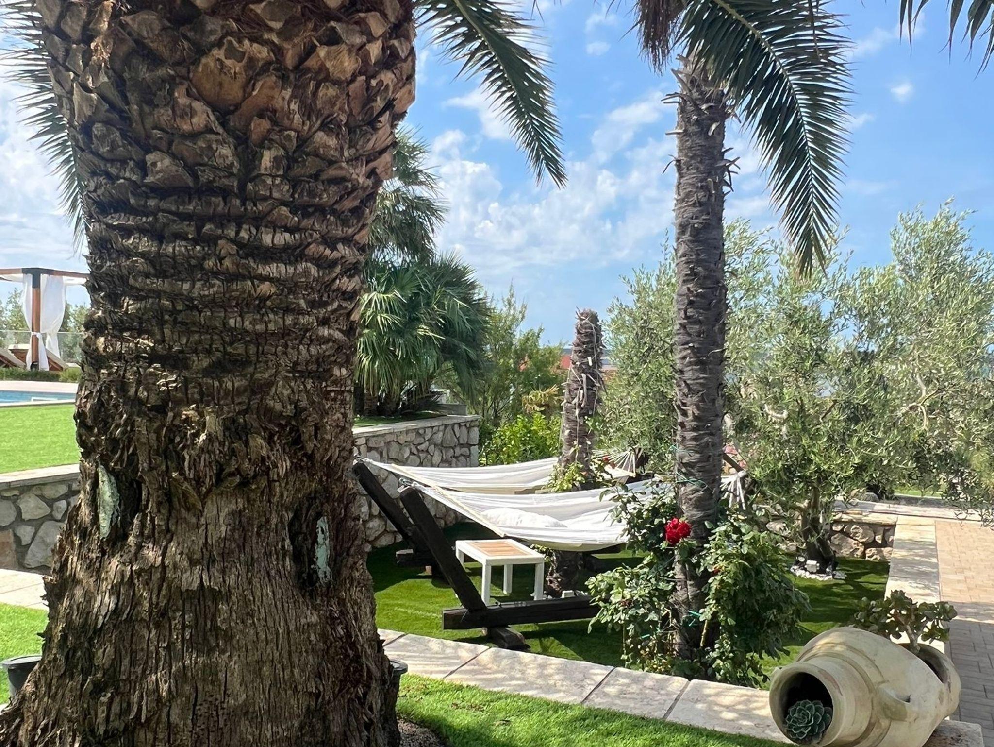 Umgebung des Objekts (Eingerichtet), Hof (1500m2, Wird mit einem anderen Objekt mitbenutzt, Kinderbereich, Sitzbereich), Parkplatz (Anzahl der Parkplätze: 4, Entfernung vom Objekt: im Hof), Pool: gemeinsam, Dimensionen: 12m x 5m x 1.5m, Wassertyp: Salzwasser, Heizung: Ja, Grill: gemeinsam, WiFi Internet, Wäschewaschen, Boot, Fahrrad (Anzahl: 5), Föhn, Bügeleisen, Bügelbrett, Kinderbett