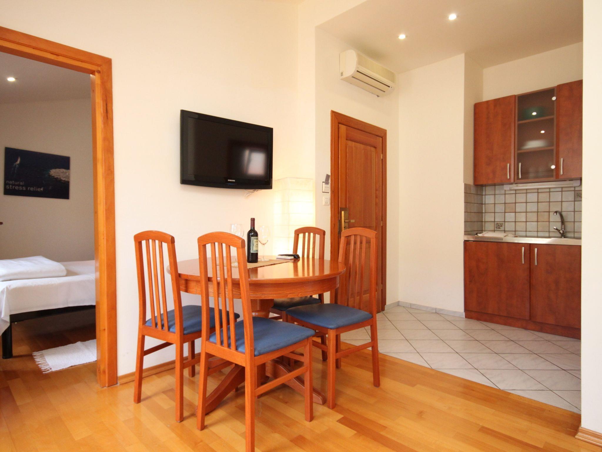 Ferienwohnung bietet Platz für 3 Gäste. Die Betten sind in Schlafzimmern, die es 1 gibt, und in Esszimmer, innerhalb einer Gesamtfläche von 24m2, angeordnet. Die Gäste haben einen eigenen Balkon zur Verfügung, auf der sie in warmen Sommernächten genießen können. IM PREIS INBEGRIFFEN: Kurtaxe, Endreinigung, Klimatisierung, Internet, Kinderbett, Föhn. VERBINDLICHE ZUSÄTZLICHE KOSTEN: Aufzahlung für Kurzaufenthalte (prozentualer Zuschlag pro Nächtigungsanzahl: 30% - 1, 20% - 2, 10% - 3). Die Verfügbarkeit zusätzlicher Dienstleistungen in Ihrem reservierten Termin und die Preise derselben (falls nicht aufgeführt) müssen im Voraus überprüft werden. Zusätzliche Dienstleistungen die in der Zahlungsaufforderung nicht aufgeführt sind werden direkt beim Vermieter bezahlt, angenommen der Gast nutzt auch diese.