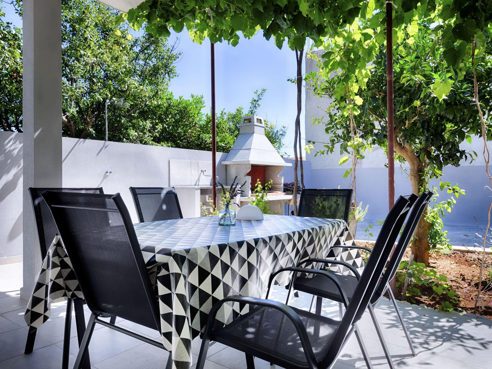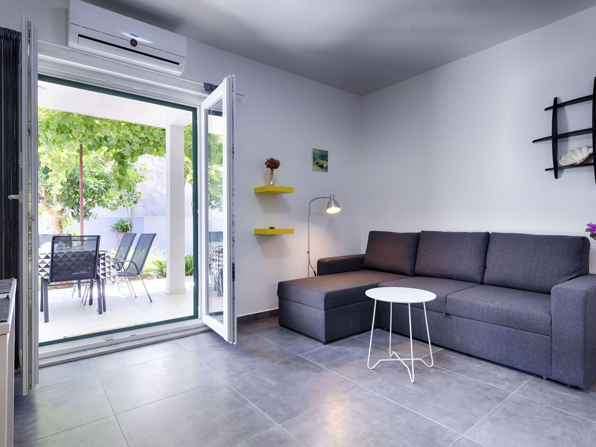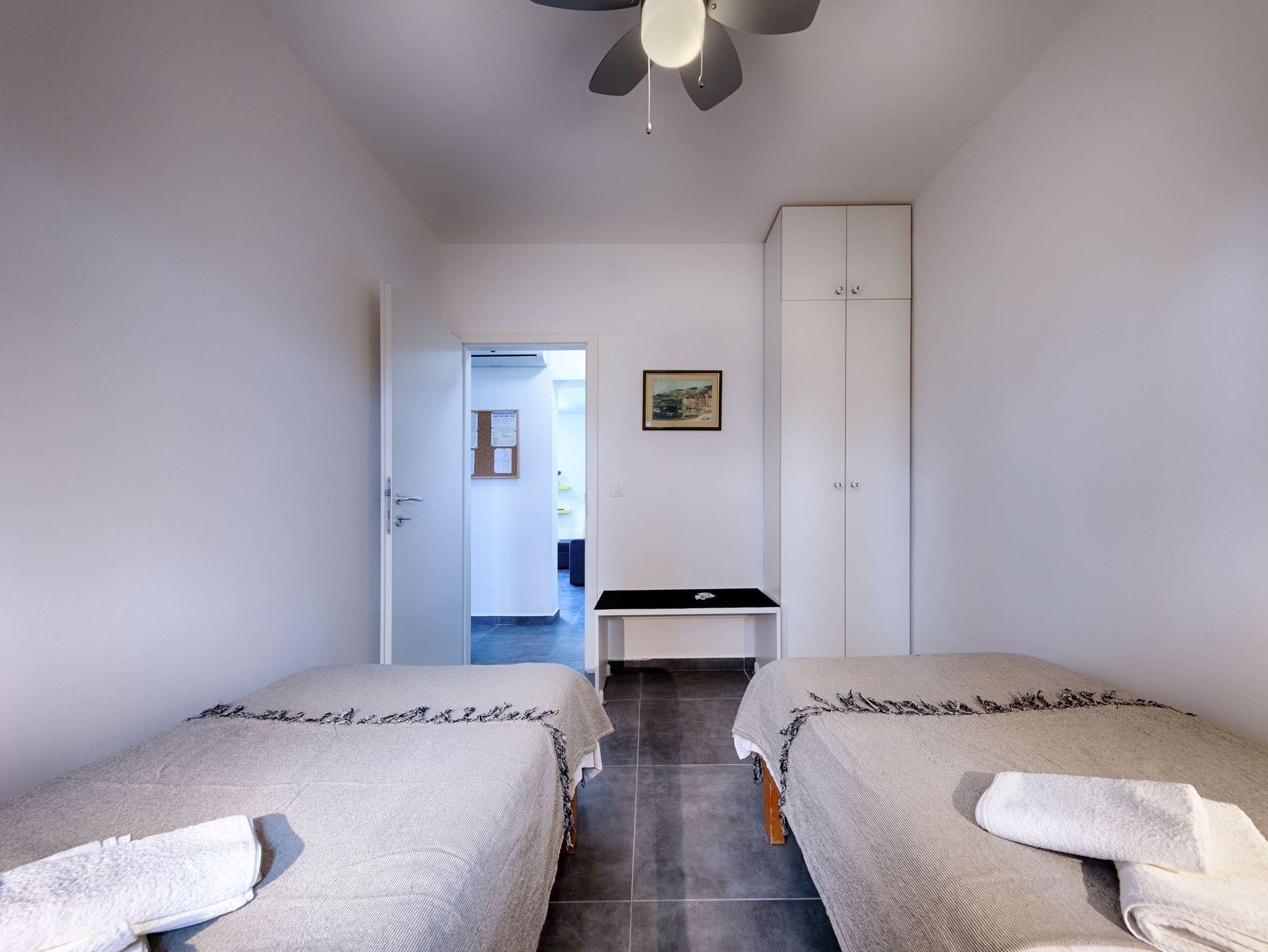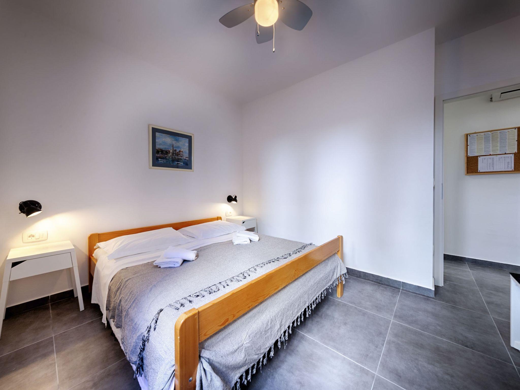 Ferienwohnung bietet Platz für 4 Gäste. Die Betten sind in Schlafzimmern, die es 2 gibt, innerhalb einer Gesamtfläche von 47m2, angeordnet. Die Gäste haben eine eigene Terrasse zur Verfügung, auf der sie in warmen Sommernächten genießen können. Für vollen Genuss und Entspannung gibt es einen privaten Grill für Gäste dieser Unterkunft. IM PREIS INBEGRIFFEN: Kurtaxe, Endreinigung, Klimatisierung, Parkplatz, Internet, Bügeleisen, Bügelbrett, Föhn. VERBINDLICHE ZUSÄTZLICHE KOSTEN: Aufzahlung für Kurzaufenthalte (prozentualer Zuschlag pro Nächtigungsanzahl: 30% - 1, 20% - 2, 10% - 3). UNVERBINDLICHE ZUSÄTZLICHE KOSTEN: 2 Kinderbettchen (10,00 € Person/Tag). Die Verfügbarkeit zusätzlicher Dienstleistungen in Ihrem reservierten Termin und die Preise derselben (falls nicht aufgeführt) müssen im Voraus überprüft werden. Zusätzliche Dienstleistungen die in der Zahlungsaufforderung nicht aufgeführt sind werden direkt beim Vermieter bezahlt, angenommen der Gast nutzt auch diese.