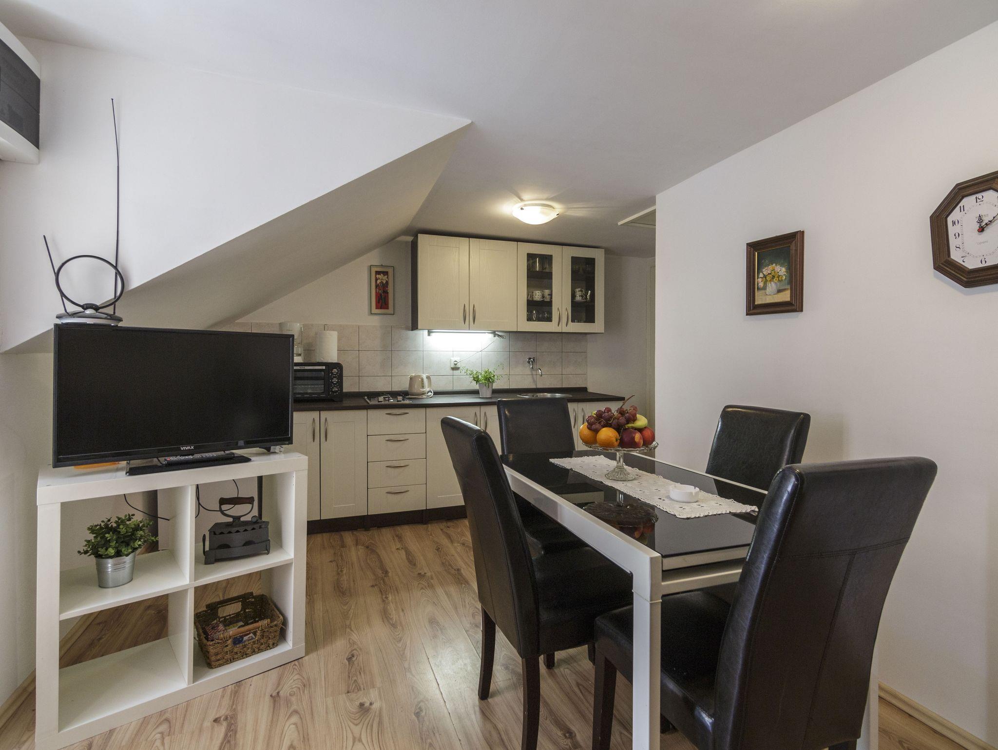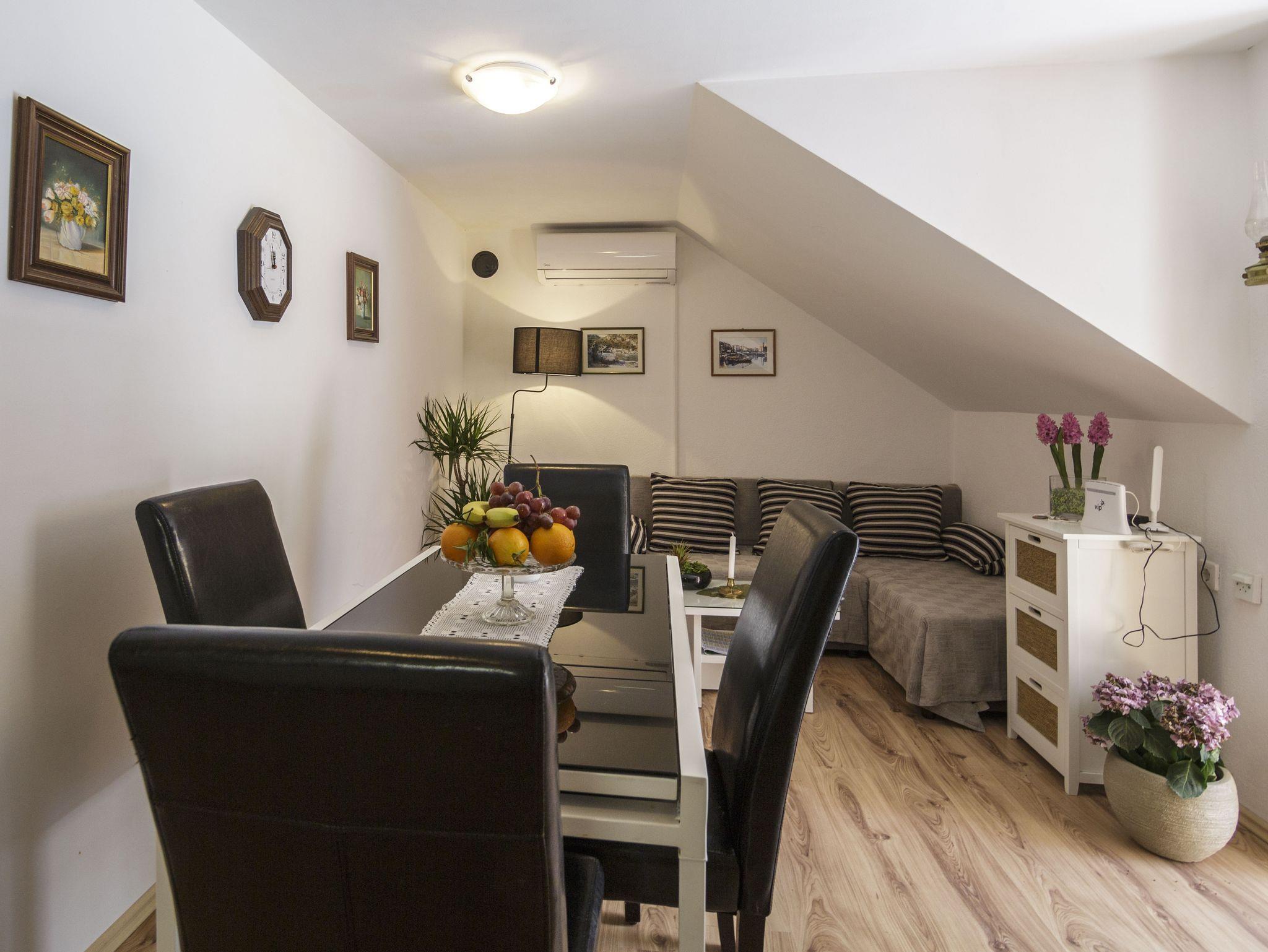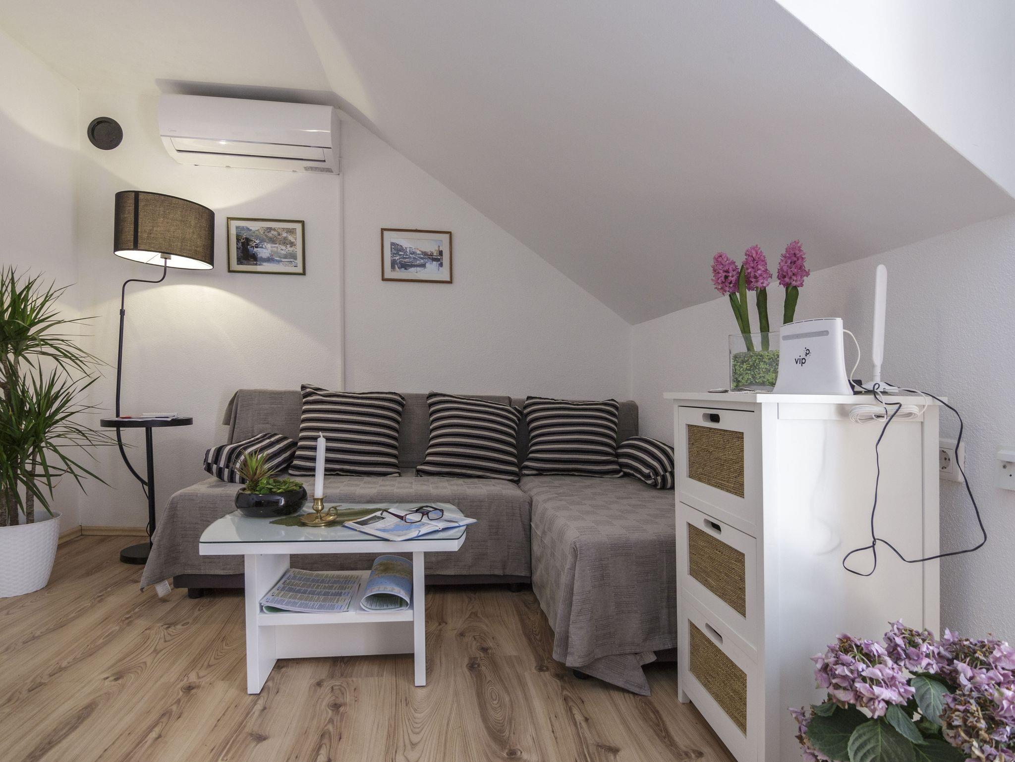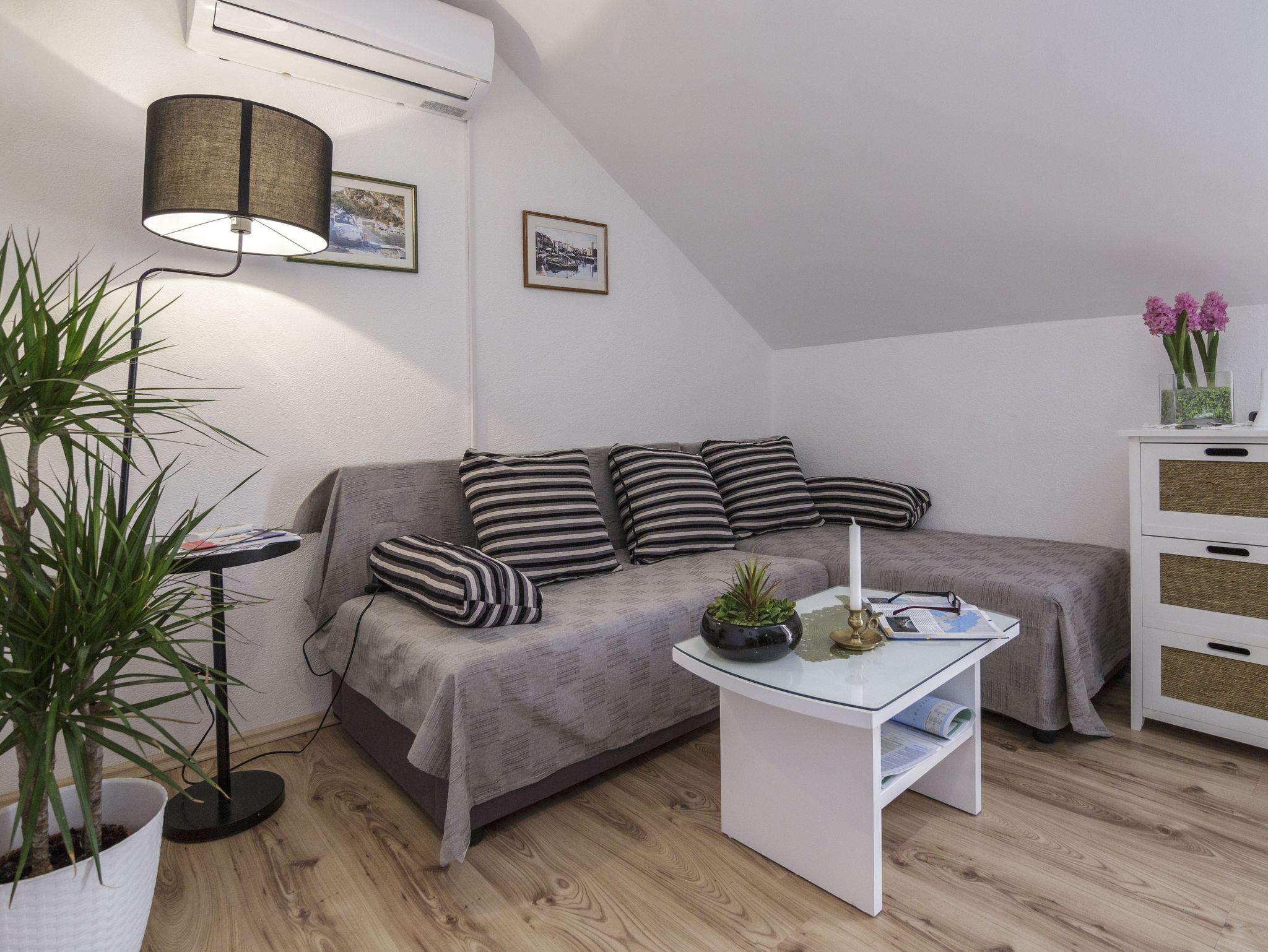 Haus bietet Platz für 4 Gäste. Die Betten sind in Schlafzimmern, die es 1 gibt, und in Wohnzimmer, innerhalb einer Gesamtfläche von 35m2, angeordnet. Die Gäste haben eine eigene Terrasse zur Verfügung, auf der sie in warmen Sommernächten genießen können. Das Haus bietet Meerblick. Für vollen Genuss und Entspannung gibt es einen privaten Grill für Gäste dieser Unterkunft. In der Unterkunftseinheit besteht die Möglichkeit des Mitbringens von Haustieren, und die Dienstleistung ist im Preis der Unterkunft enthalten. IM PREIS INBEGRIFFEN: Kurtaxe, Endreinigung, Klimatisierung, Parkplatz, Internet, Bootsanlegeplatz, Haustiere, Kinderbett, Bügeleisen, Bügelbrett, Föhn. Die Verfügbarkeit zusätzlicher Dienstleistungen in Ihrem reservierten Termin und die Preise derselben (falls nicht aufgeführt) müssen im Voraus überprüft werden. Zusätzliche Dienstleistungen die in der Zahlungsaufforderung nicht aufgeführt sind werden direkt beim Vermieter bezahlt, angenommen der Gast nutzt auch diese.