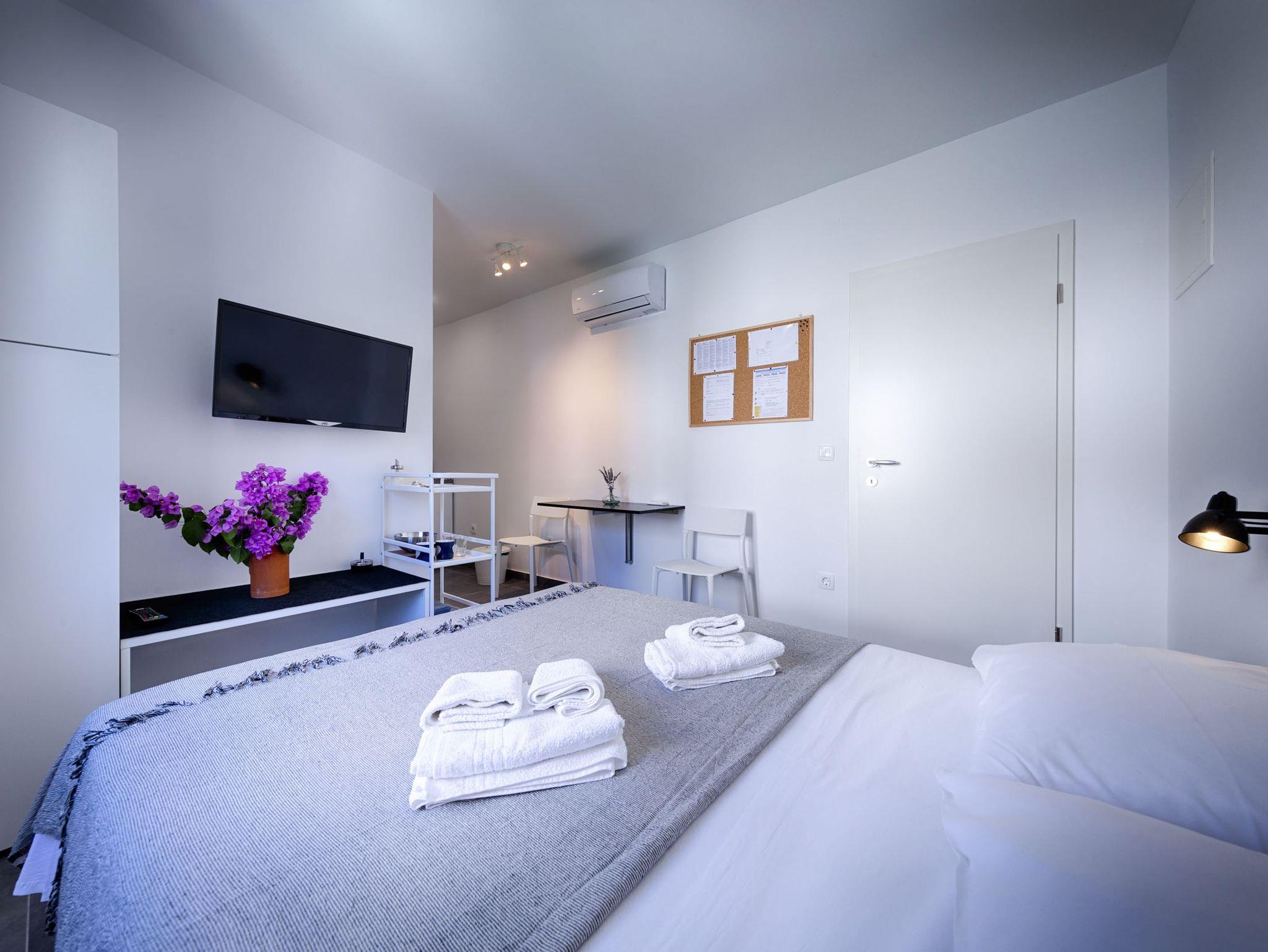 Zimmer bietet Platz für 2 Gäste. Die Betten sind in Schlafzimmern, die es 1 gibt, innerhalb einer Gesamtfläche von 17m2, angeordnet. Die reservierte Unterkunftseinheit hat keinen Balkon und keine Terrasse. IM PREIS INBEGRIFFEN: Kurtaxe, Endreinigung, Klimatisierung, Parkplatz, Internet, Bügeleisen, Bügelbrett, Föhn. VERBINDLICHE ZUSÄTZLICHE KOSTEN: Aufzahlung für Kurzaufenthalte (prozentualer Zuschlag pro Nächtigungsanzahl: 30% - 1, 20% - 2, 10% - 3). Die Verfügbarkeit zusätzlicher Dienstleistungen in Ihrem reservierten Termin und die Preise derselben (falls nicht aufgeführt) müssen im Voraus überprüft werden. Zusätzliche Dienstleistungen die in der Zahlungsaufforderung nicht aufgeführt sind werden direkt beim Vermieter bezahlt, angenommen der Gast nutzt auch diese.