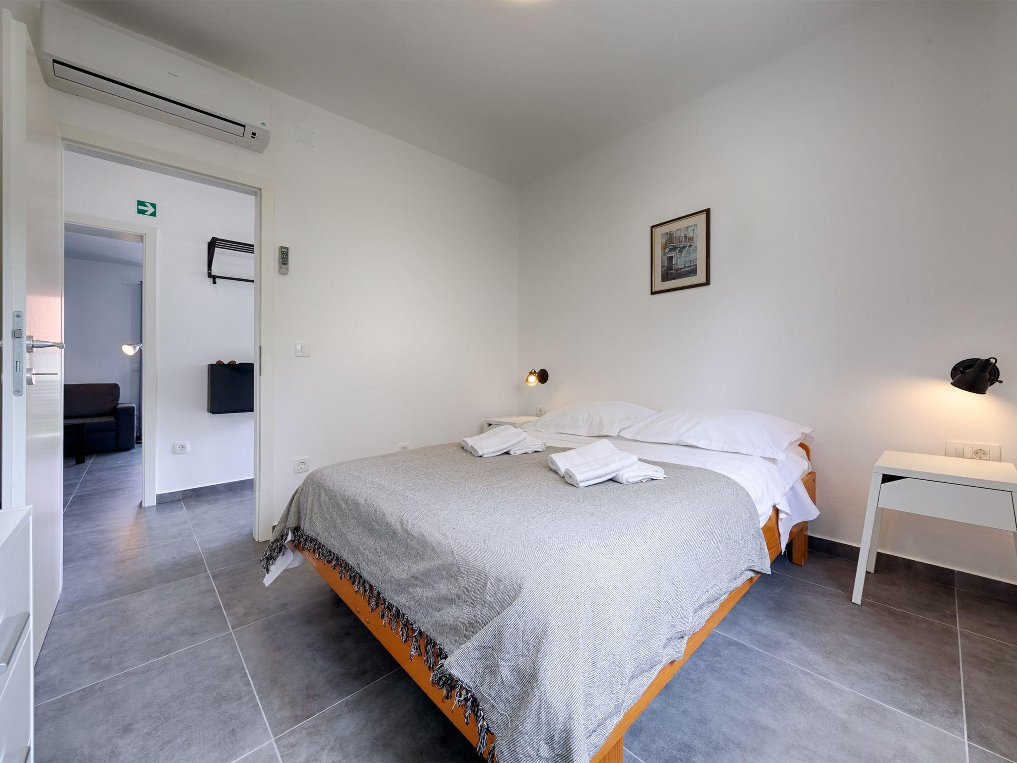 Ferienwohnung bietet Platz für 2 Gäste. Die Betten sind in Schlafzimmern, die es 1 gibt, innerhalb einer Gesamtfläche von 33m2, angeordnet. Die Gäste haben eine eigene Terrasse zur Verfügung, auf der sie in warmen Sommernächten genießen können. IM PREIS INBEGRIFFEN: Kurtaxe, Endreinigung, Klimatisierung, Parkplatz, Internet, Bügeleisen, Bügelbrett, Föhn. VERBINDLICHE ZUSÄTZLICHE KOSTEN: Aufzahlung für Kurzaufenthalte (prozentualer Zuschlag pro Nächtigungsanzahl: 30% - 1, 20% - 2, 10% - 3). UNVERBINDLICHE ZUSÄTZLICHE KOSTEN: 2 Kinderbettchen (10,00 € Person/Tag). Die Verfügbarkeit zusätzlicher Dienstleistungen in Ihrem reservierten Termin und die Preise derselben (falls nicht aufgeführt) müssen im Voraus überprüft werden. Zusätzliche Dienstleistungen die in der Zahlungsaufforderung nicht aufgeführt sind werden direkt beim Vermieter bezahlt, angenommen der Gast nutzt auch diese.