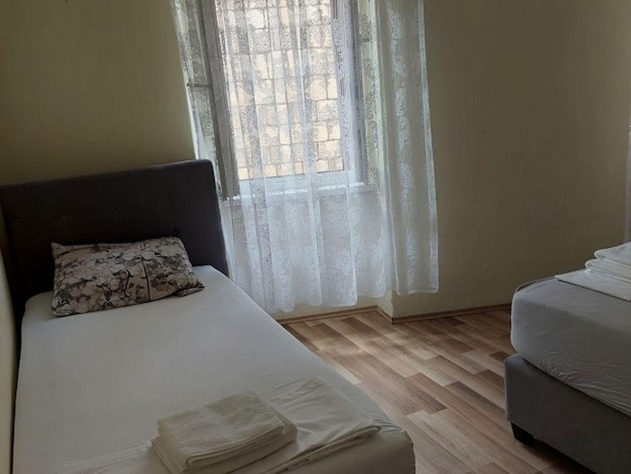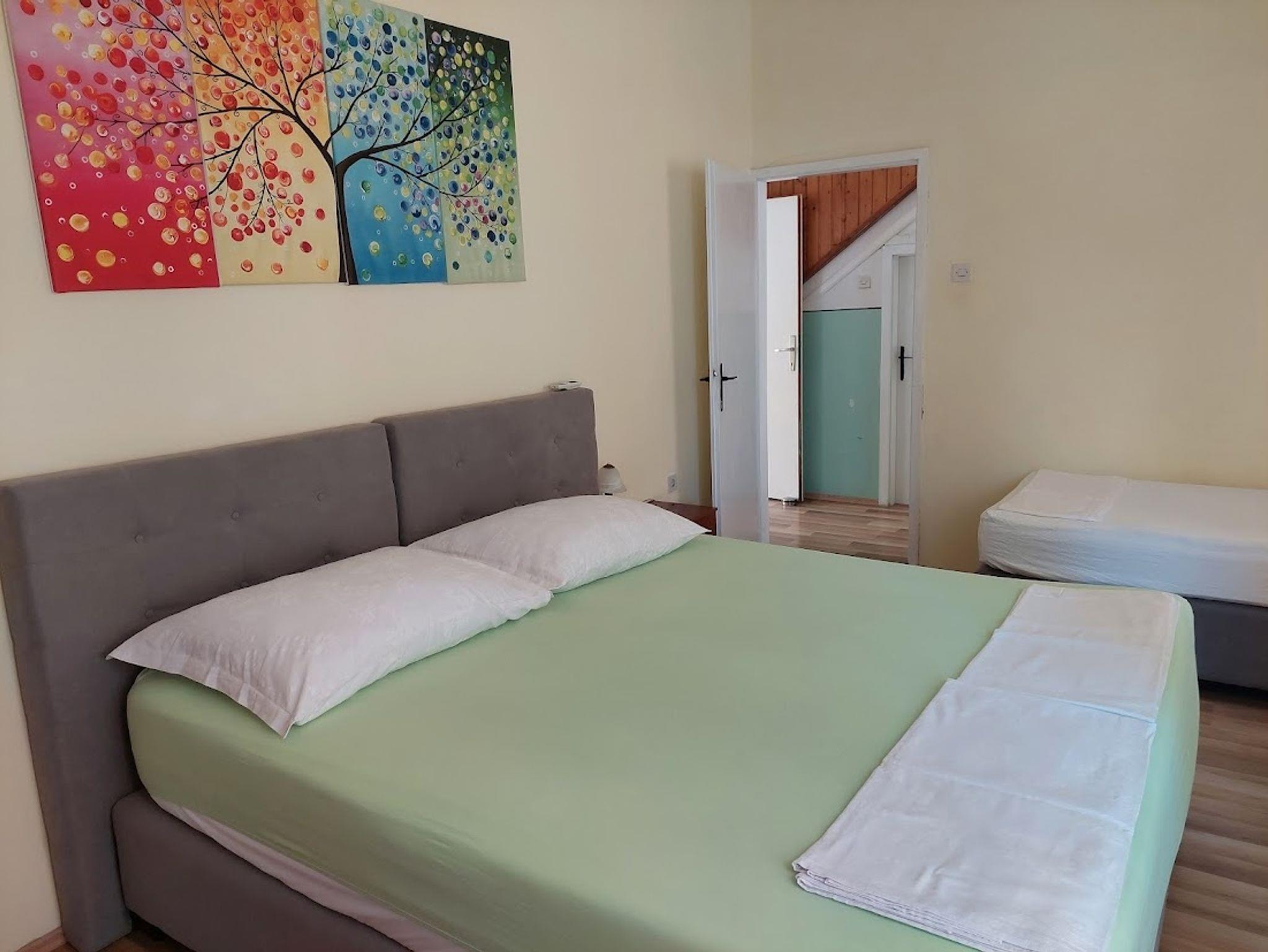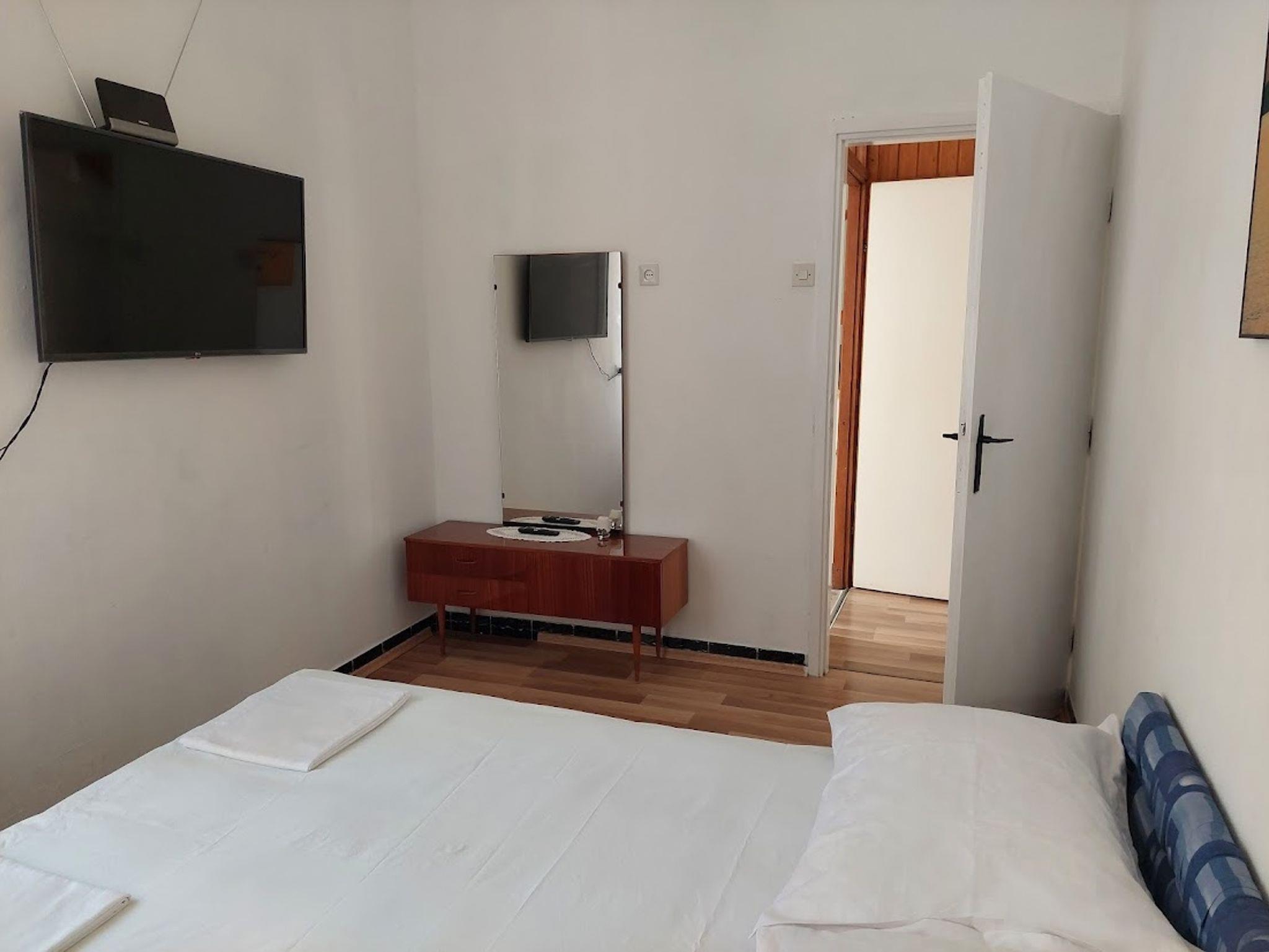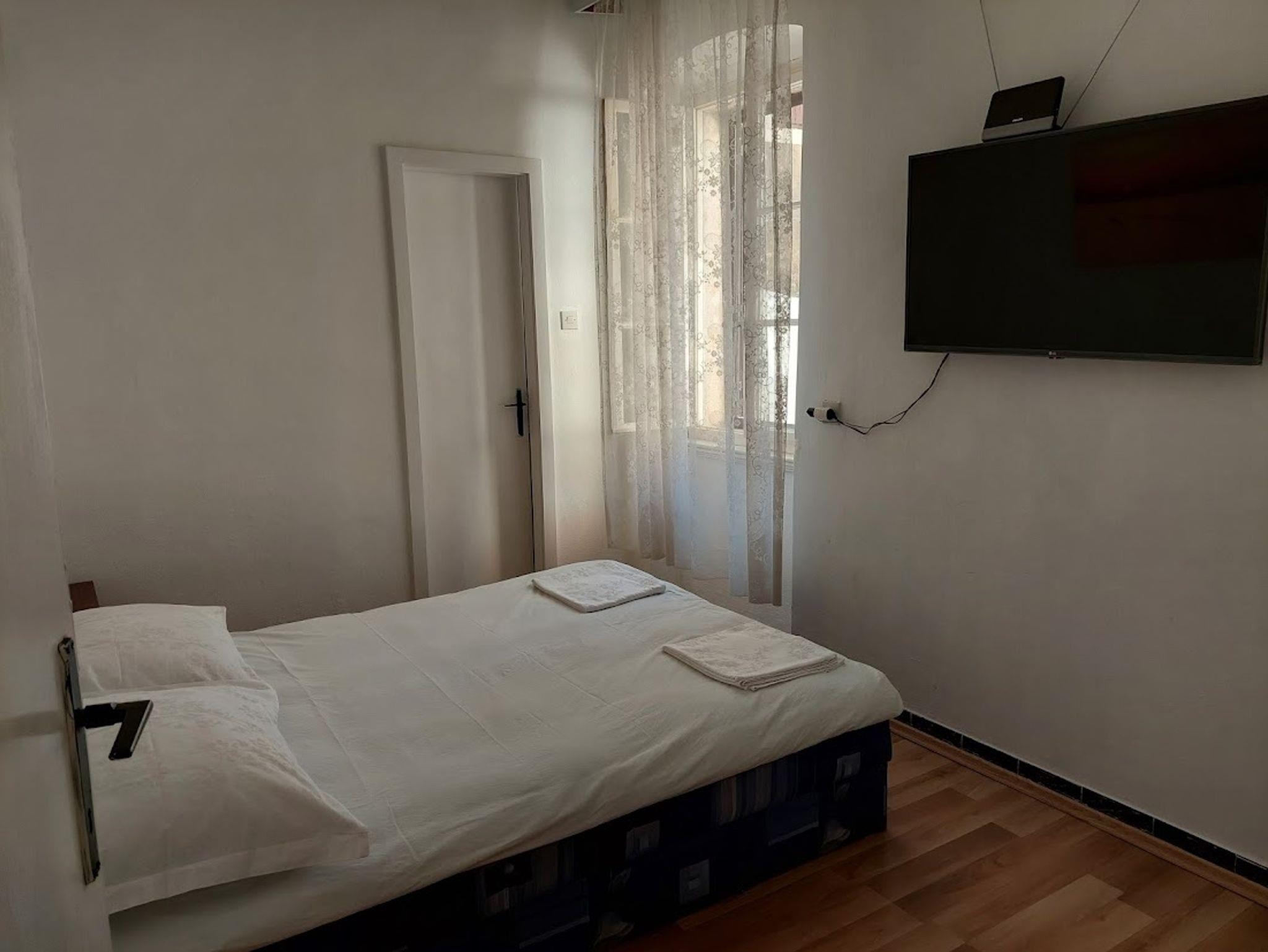 Ferienwohnung bietet Platz für 5 Gäste. Die Betten sind in Schlafzimmern, die es 2 gibt, innerhalb einer Gesamtfläche von 35m2, angeordnet. Die Gäste haben eine eigene Terrasse zur Verfügung, auf der sie in warmen Sommernächten genießen können. Es ist erlaubt, Speisen auf dem Gemeinschafts-Grill vorzubereiten. IM PREIS INBEGRIFFEN: Kurtaxe, Endreinigung, Klimatisierung, Parkplatz, Internet, Wäschewaschen, Bügeleisen, Bügelbrett, Föhn, tragbarer Grill, Sonnenschirm. Die Verfügbarkeit zusätzlicher Dienstleistungen in Ihrem reservierten Termin und die Preise derselben (falls nicht aufgeführt) müssen im Voraus überprüft werden. Zusätzliche Dienstleistungen die in der Zahlungsaufforderung nicht aufgeführt sind werden direkt beim Vermieter bezahlt, angenommen der Gast nutzt auch diese. Ermäßigung auf den Grundpreis: Gratistag 14=13 (bei einem Aufenthalt von 14 Tagen oder mehr erhalten Sie einen Gratistag für den Aufenthalt bis 31.12.26).