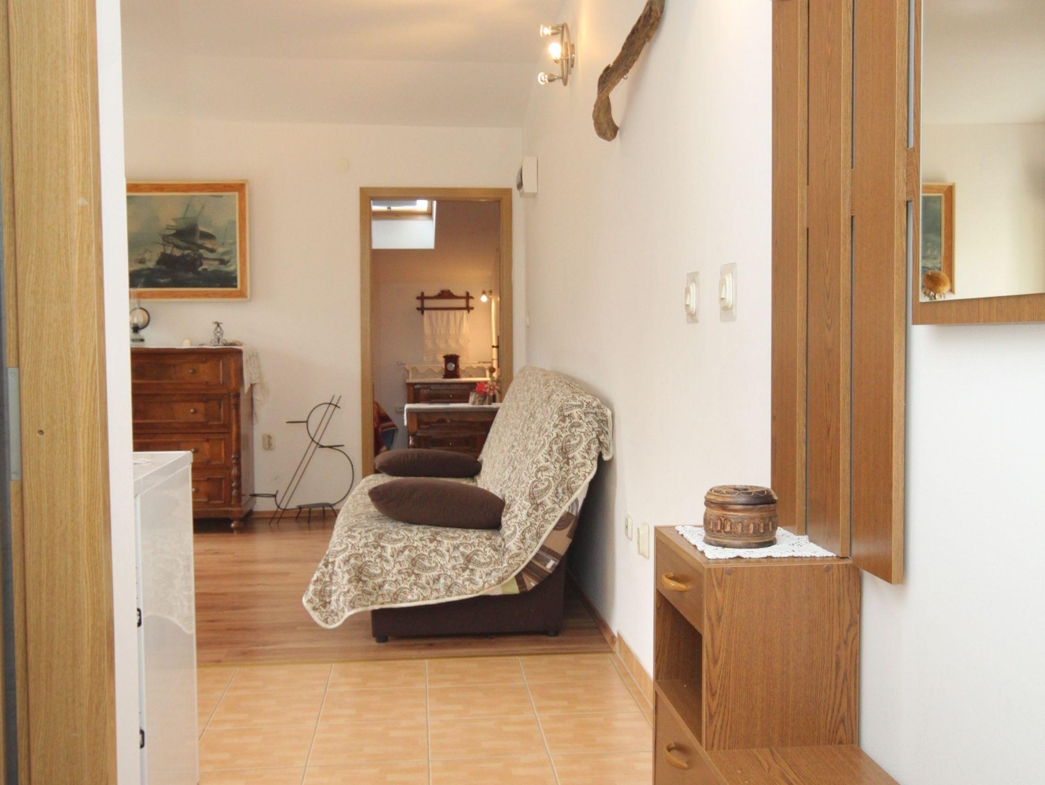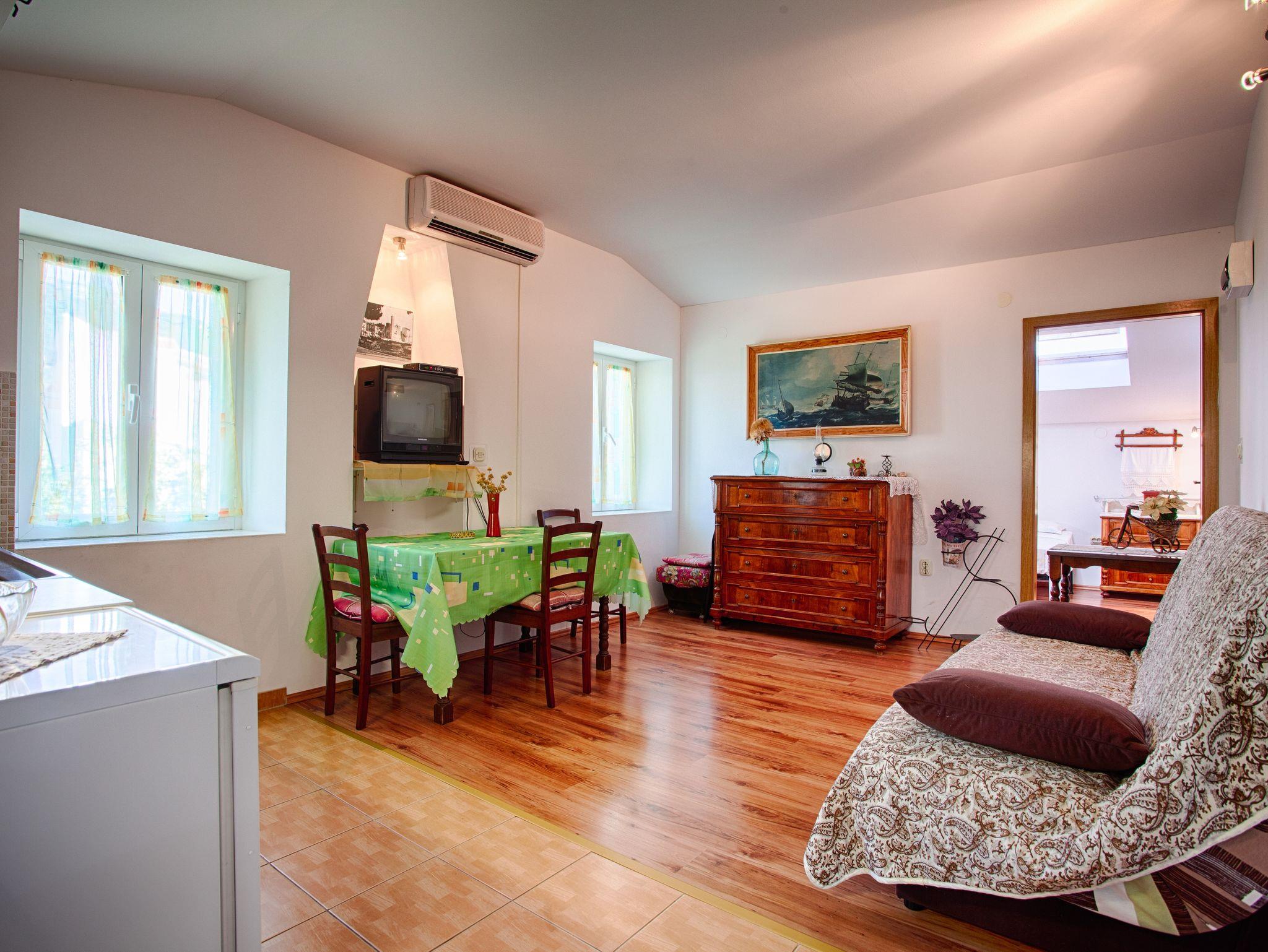 Ferienwohnung bietet Platz für 3 Gäste. Die Betten sind in Schlafzimmern, die es 1 gibt, und in Wohnzimmer, innerhalb einer Gesamtfläche von 37m2, angeordnet. Das Apartment bietet Meerblick. Es ist erlaubt, Speisen auf dem Gemeinschafts-Grill vorzubereiten. Die reservierte Unterkunftseinheit verfügt über einen gemeinsame Terrasse. IM PREIS INBEGRIFFEN: Kurtaxe, Endreinigung, Klimatisierung, Internet, Wäschewaschen, Kinderbett, Bügeleisen, Bügelbrett, Föhn. VERBINDLICHE ZUSÄTZLICHE KOSTEN: Aufzahlung für Kurzaufenthalte (prozentualer Zuschlag pro Nächtigungsanzahl: 30% - 1, 20% - 2, 10% - 3). Die Verfügbarkeit zusätzlicher Dienstleistungen in Ihrem reservierten Termin und die Preise derselben (falls nicht aufgeführt) müssen im Voraus überprüft werden. Zusätzliche Dienstleistungen die in der Zahlungsaufforderung nicht aufgeführt sind werden direkt beim Vermieter bezahlt, angenommen der Gast nutzt auch diese.