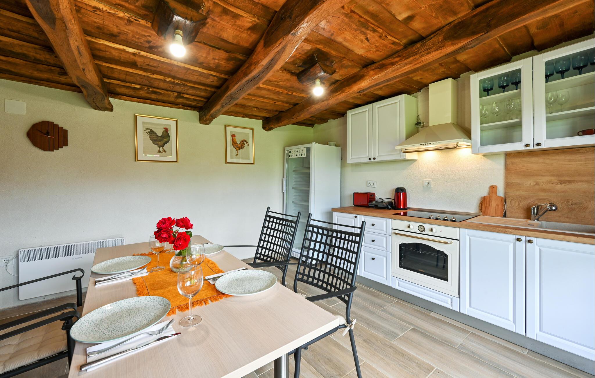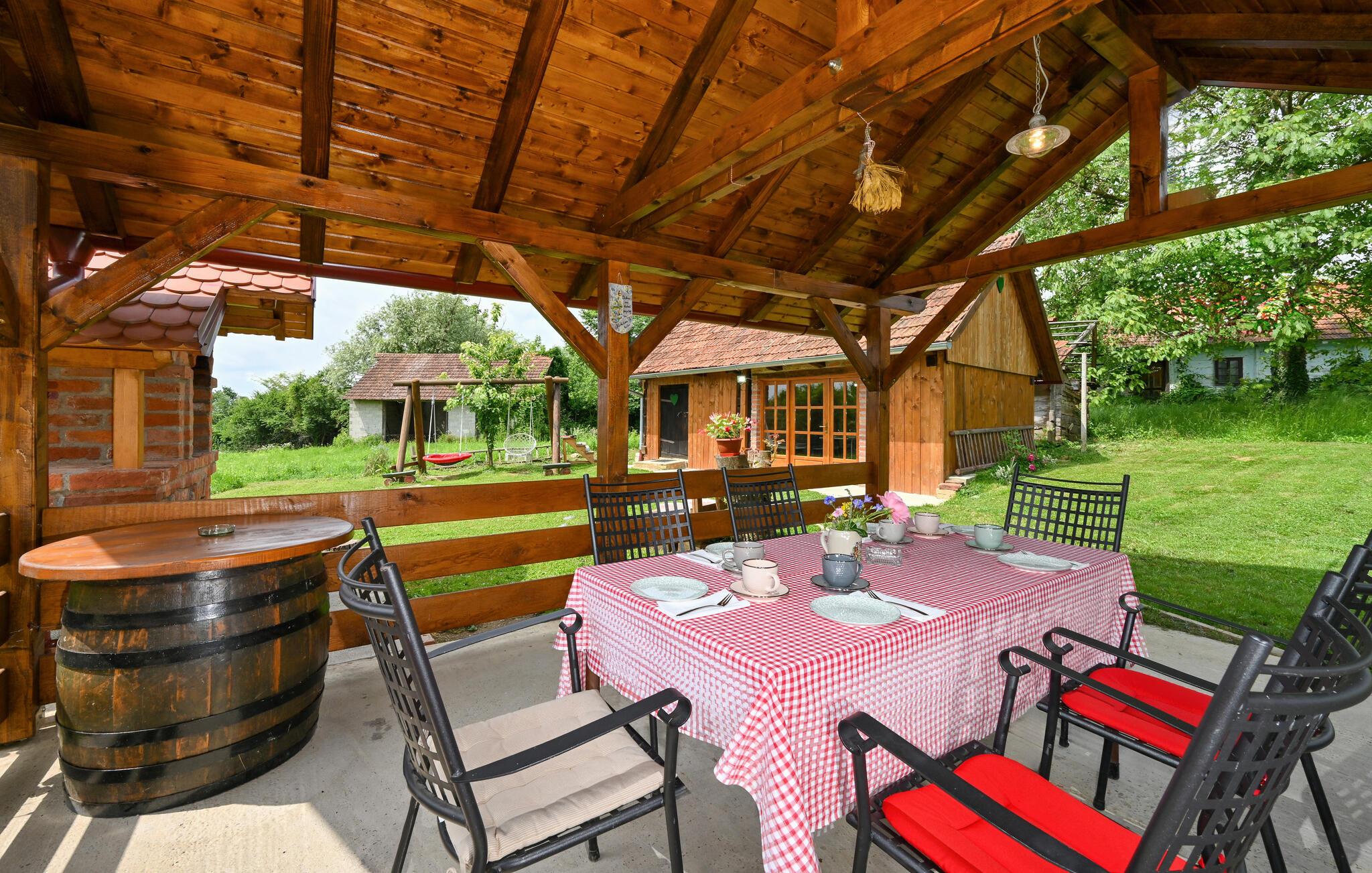 Klimen er en charmerende landsby i den kroatiske region Zagorje, idyllisk beliggende i de bølgende bakker. Landskabet er præget af grønne skove, maleriske marker og traditionelle gårde. Her kan I også udforske naturen på idylliske vandrestier eller tage cykelture gennem det bakkede landskab. Et besøg i den nærliggende kurby Tuhelj tilbyder afslapning i de varme kilder. Regionen er også kendt for sine historiske slotte og kulturelle attraktioner, som kun ligger en kort køretur væk. Feriehusets beliggenhed er et ideelt udgangspunkt for en dagstur til Zagreb.