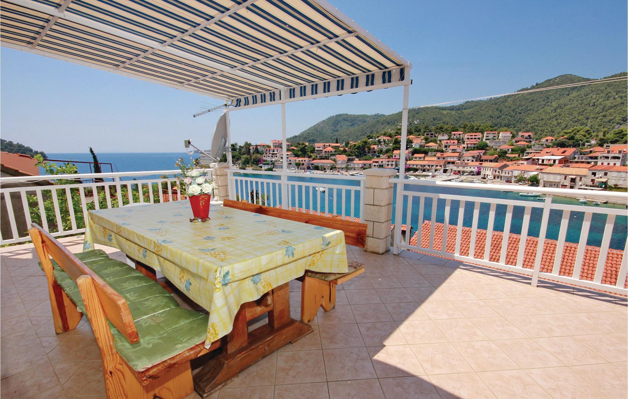Denne rummelige ferielejlighed på 2. sal i et familiehus råder over en stor terrasse med en vidunderlig panoramaudsigt ud over havet samt bugten Brna.