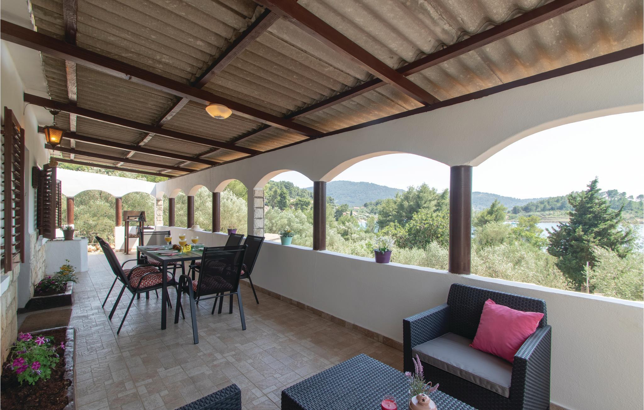 overdækket altan, hvor I kan nyde de lange varme sommerdage og aftener. Huset er omgivet af en mediterran have og har en fantastisk udsigt over den romantiske bugt Grana. I Vela Luka, der ligger 5 km fra huset, kan I besøge spændende restauranter eller deltage i de mange aktiviteter om sommeren. Udforsk derudover øen Korcula og lad jer inspirere af dens unikke natur.