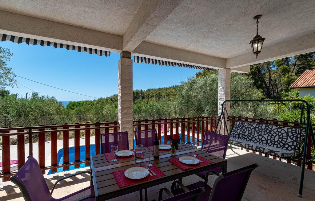 Dette lille hus er omgivet af oliventræer og har en stor, overdækket terrasse med grillplads. Huset er indrettet med komfortable møbler, har to soveværelser og en stue der er kombineret med køkkenet og med udgang til terrassen hvor den store pool ligger. På varme sommerdage kan I tage en dukkert i det klare havvand i bugten Gradina eller gå lange spadsereture. I bugten er der gode fiskerestauranter med mange lækre specialiteter. Tag på udflugter på øen, der er kendt som Marco Polos fødeø.