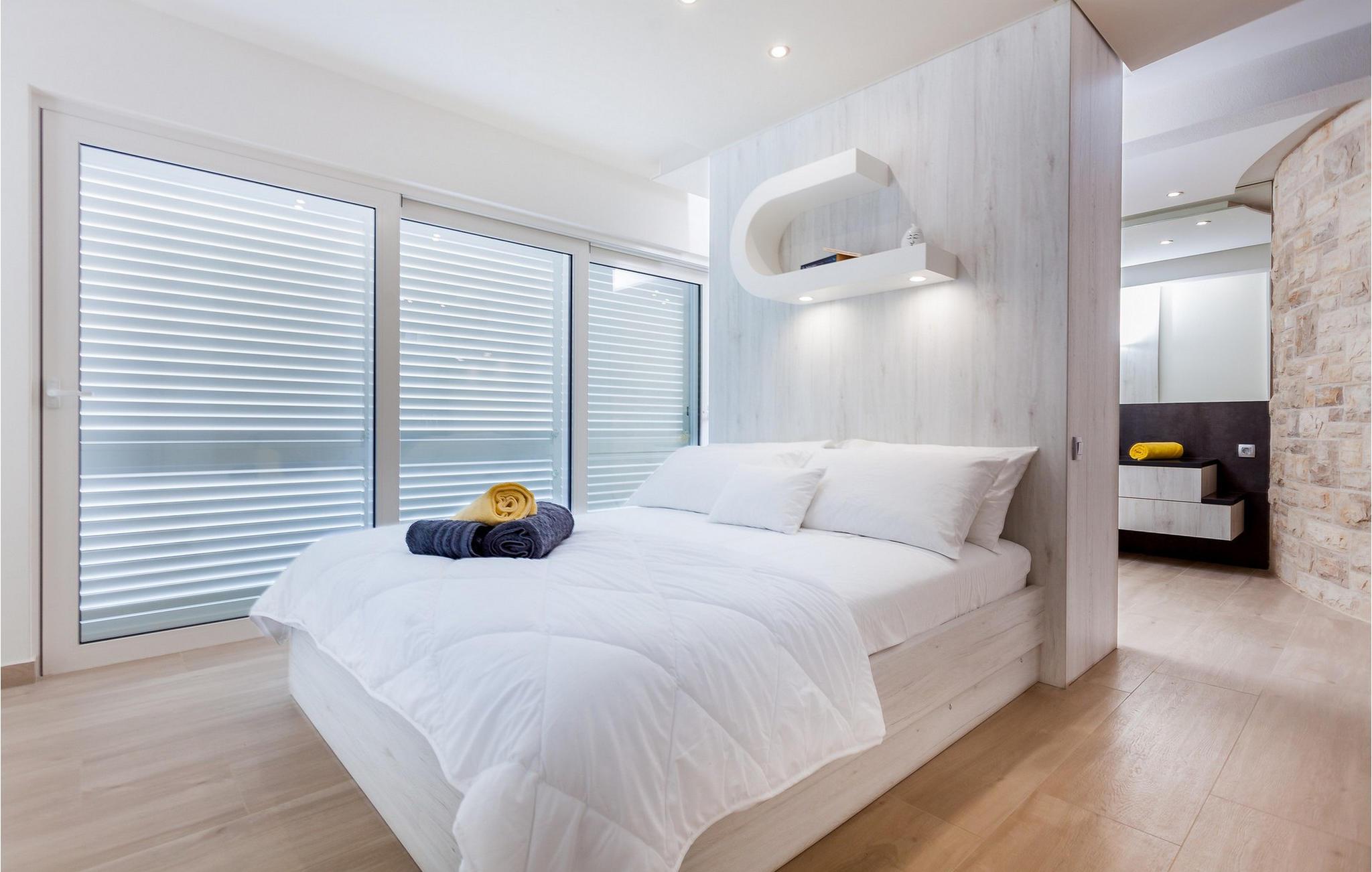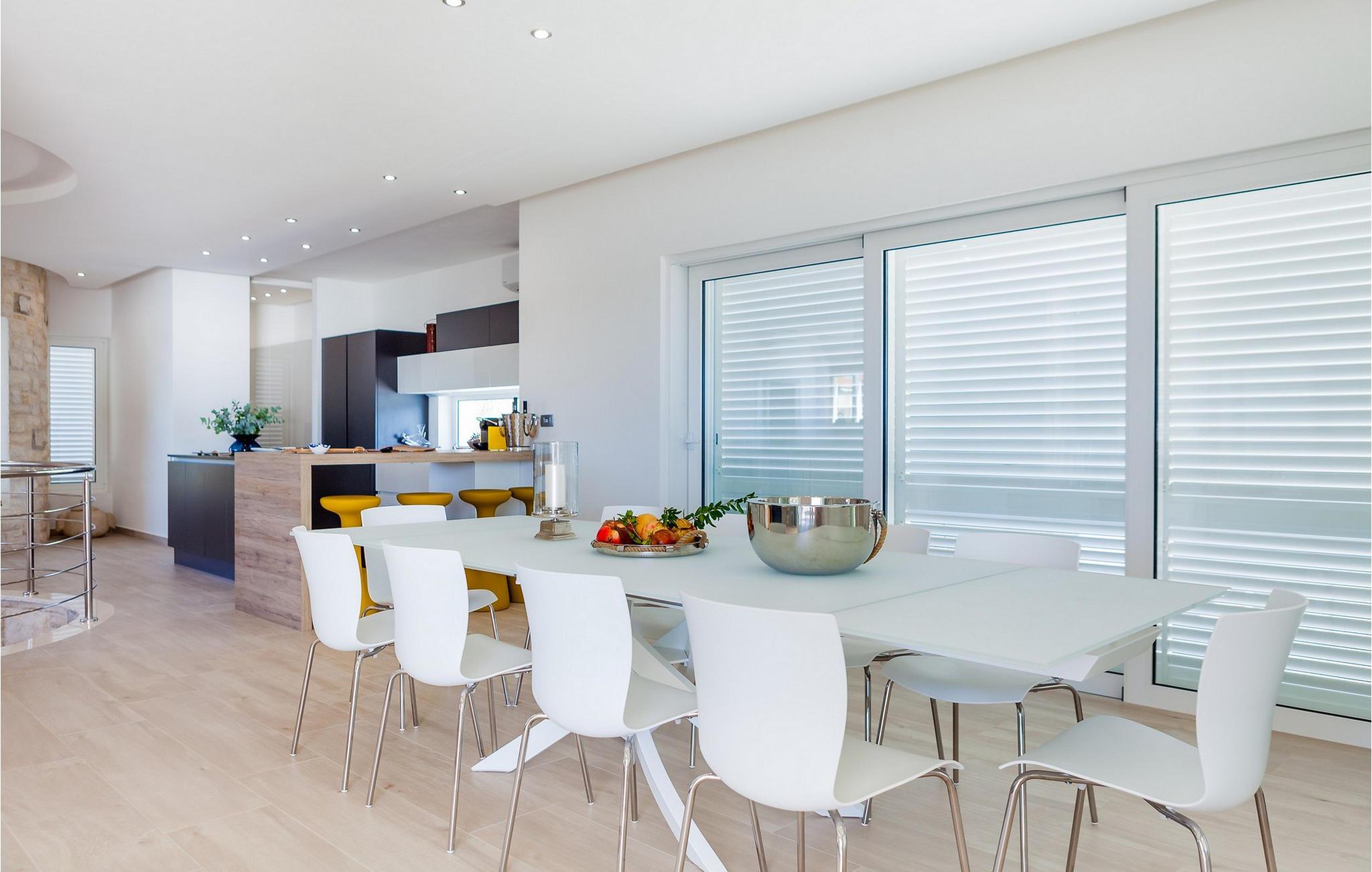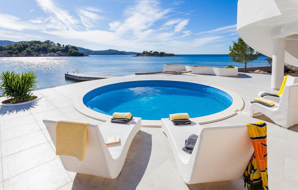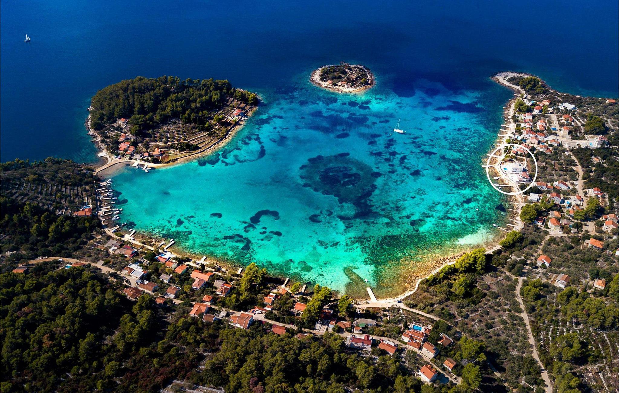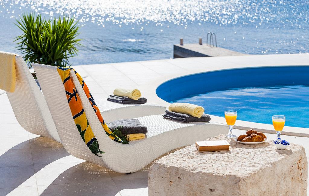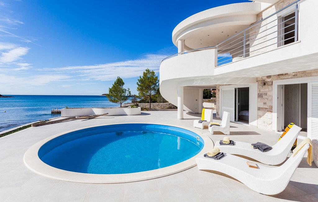 Nyd jeres ferie i denne eksklusive villa, der ligger direkte ved havet i Vela Luka på øen Korcula. Tilbring jeres ferie i Villa Soleil. Den moderne arkitektur kombinerer stilfuld æstetik med funktionelt design og skaber en luksuriøs atmosfære. Oplev de to etager med svingende trapper og lyse værelser. Den åbne stue med et fuldt udstyret køkken, spisestue og stue er fyldt med lys og tilbyder en spektakulær udsigt over havet. På den rummelige terrasse kan I nyde jeres måltider under åben himmel eller slappe af på en af liggestolene ved den cirkulære pool - det perfekte sted at se solnedgangen. Direkte adgang til havet vil gøre jeres ferie uforglemmelig. Vela Luka, der ligger i den vestlige del af øen Korcula, er et ideelt udgangspunkt for jeres udforskninger. Denne charmerende by er rig på historie, kultur og middelhavsstemning. Tag på bådture til de omkringliggende øer, oplev skjulte bugter eller besøg den historiske gamle bydel i Korcula. Det omkringliggende område byder på mange muligheder for udendørsaktiviteter som vandreture, cykling og vandsport. Oplev dalmatisk køkken i byens hyggelige restauranter og nyd den afslappede atmosfære i denne unikke middelhavsregion. Bemærk venligst: Villaen er ikke egnet til børn under 12 år.