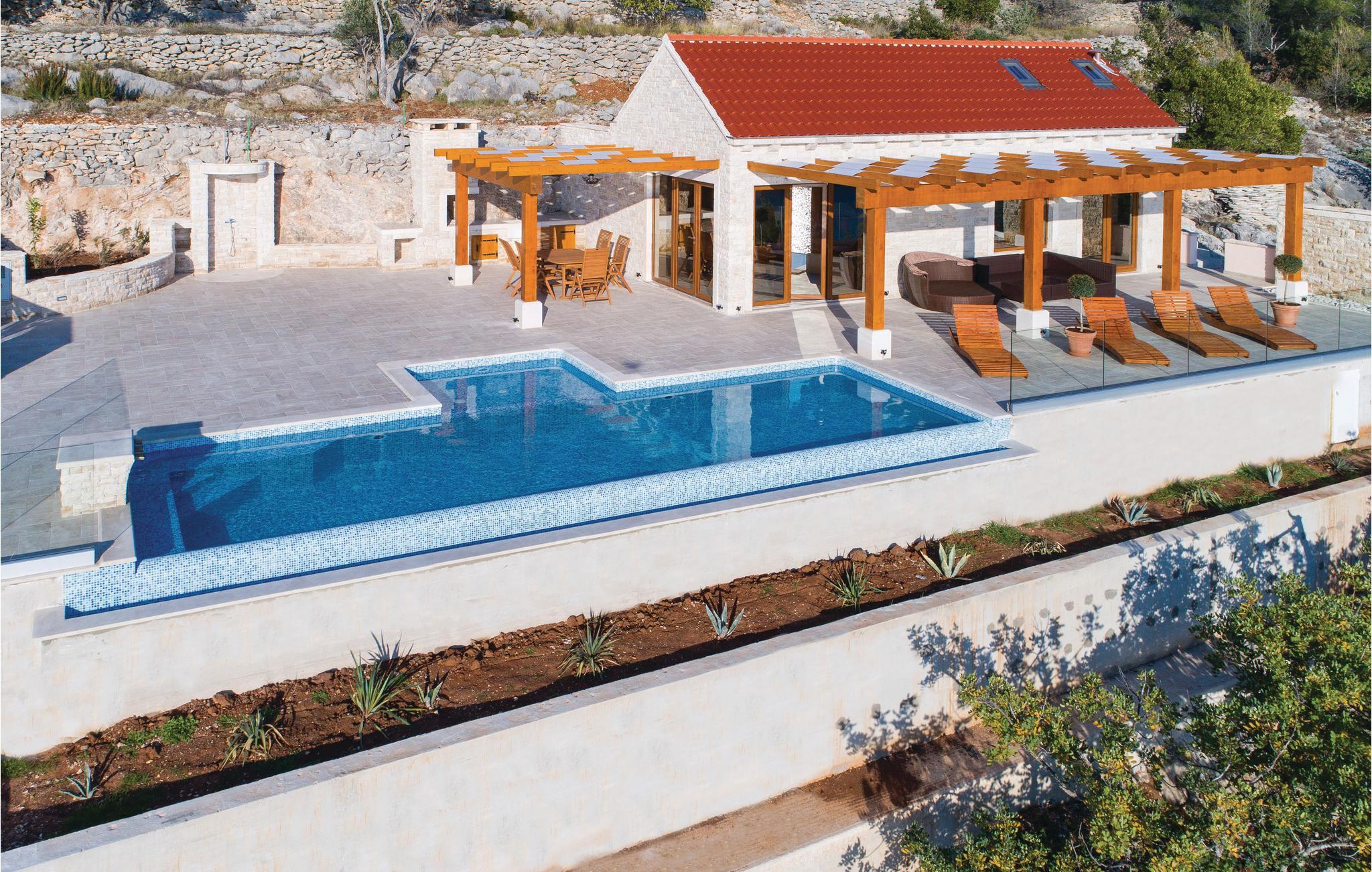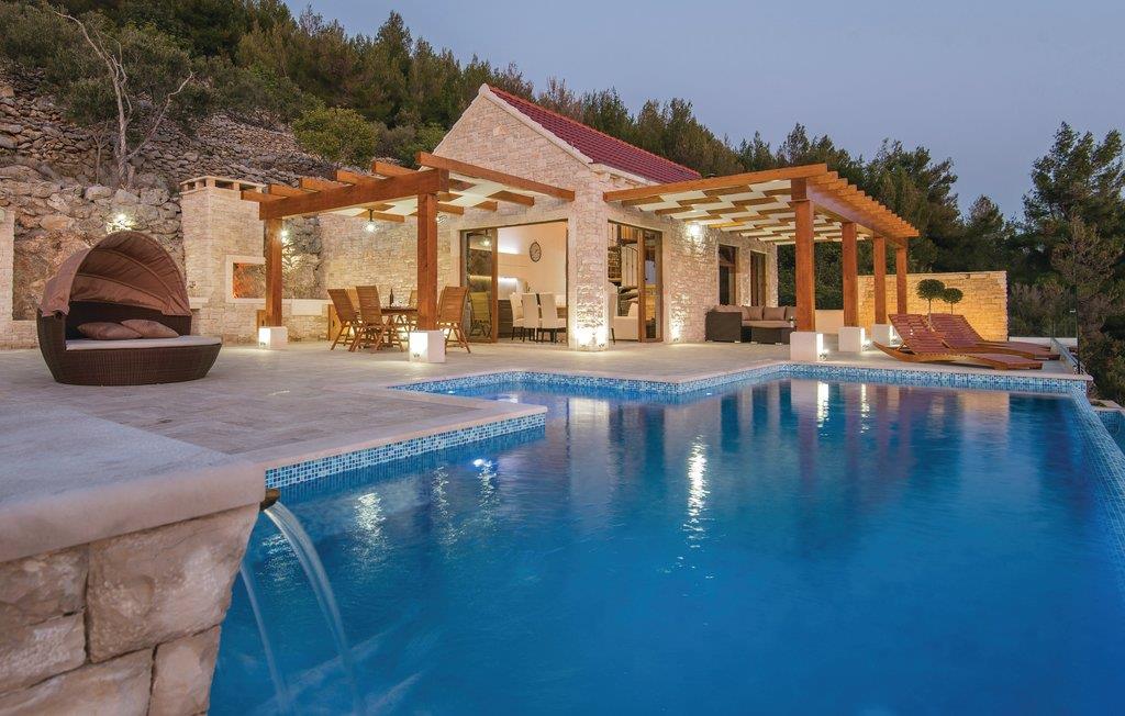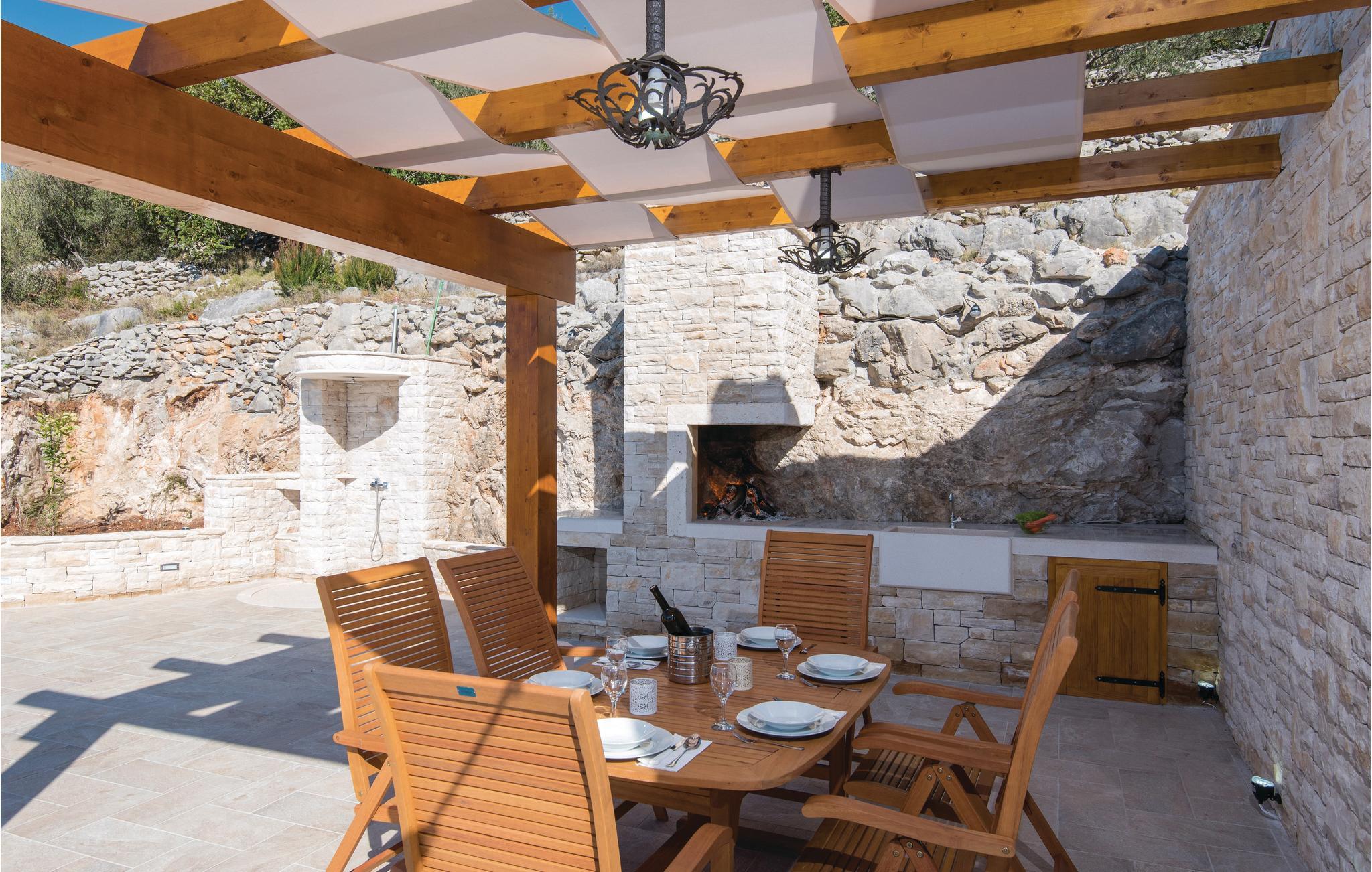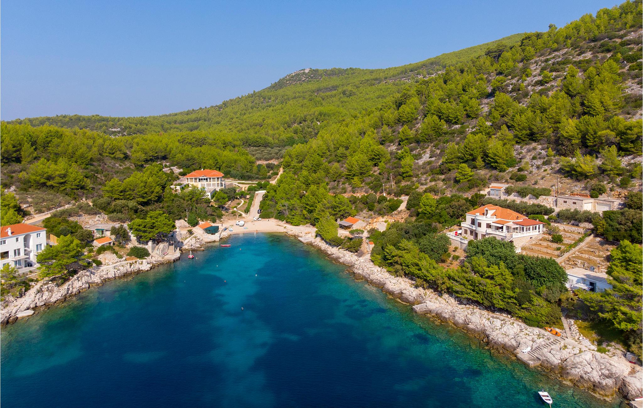 På en bakketop over den skønne Karbunibugt ligger dette feriehus. Det er omgivet af en skøn og uberørt natur og herfra er der en skøn panoramaudsigt over havet og naboøerne. Huset er indrettet meget moderne og rustikt i en charmerende blanding. I stueplan ligger køkkenet i åben forbindelse med køkkenet og et soveværelse med badeværelse en suite. Der er også et soveværelse og et badeværelse i et galleri, som I kommer op til ad en vindeltrappe. I haven ligger den rummelige terrasse og en pool med en børneafdeling. Udforsk byen på dagsture til de nærliggende byer Vela Luka, Blato og Prigradica hvor I kan lære de lokale skikke at kende og lære mere om området interessante kultur og historie. De sidste 500 m op til huset er en grusvej, der ikke er egnet til lave biler. De sidste 150 meter er med fliser.