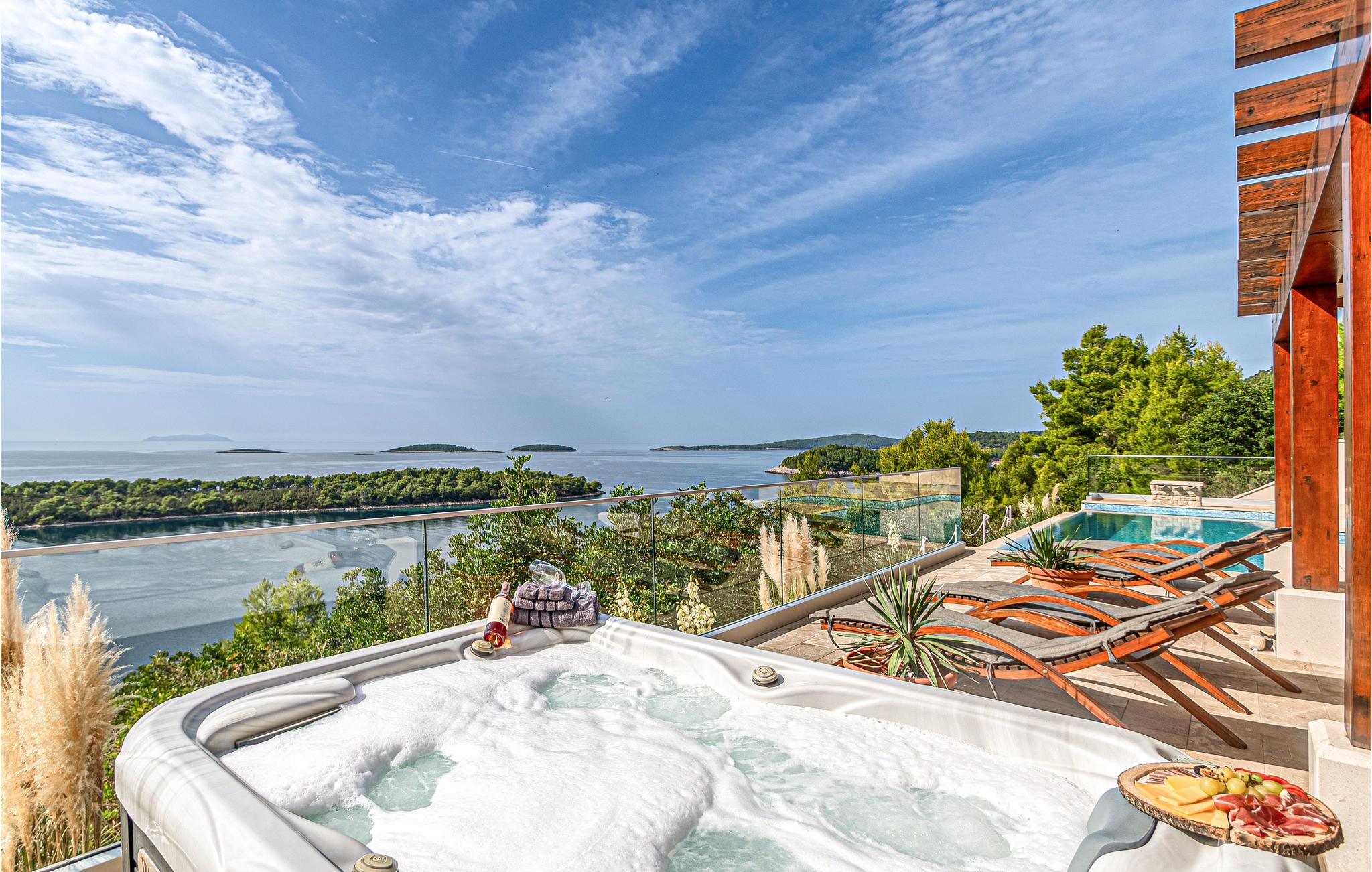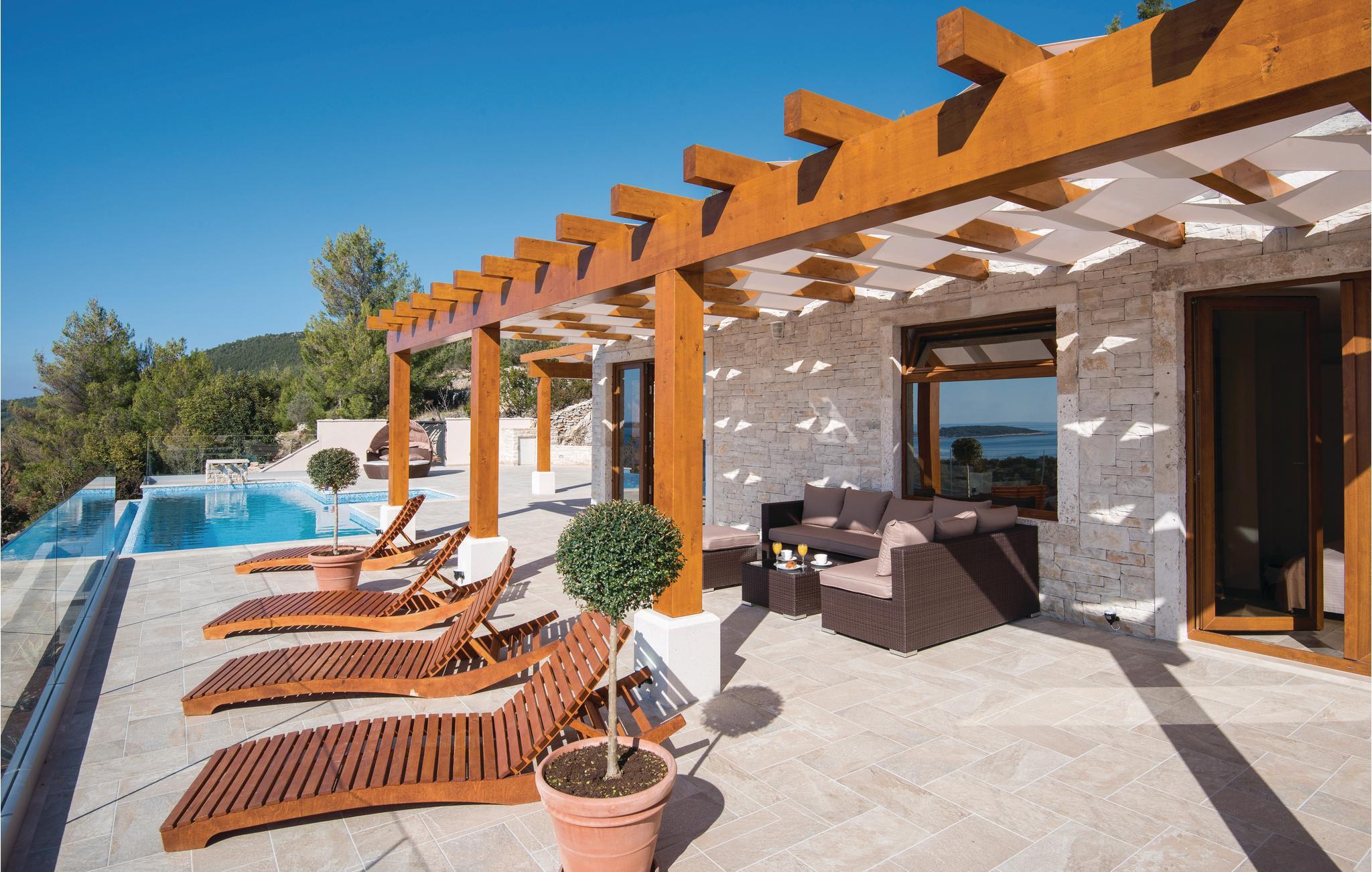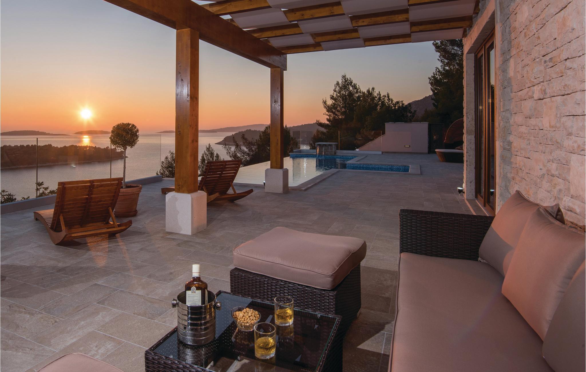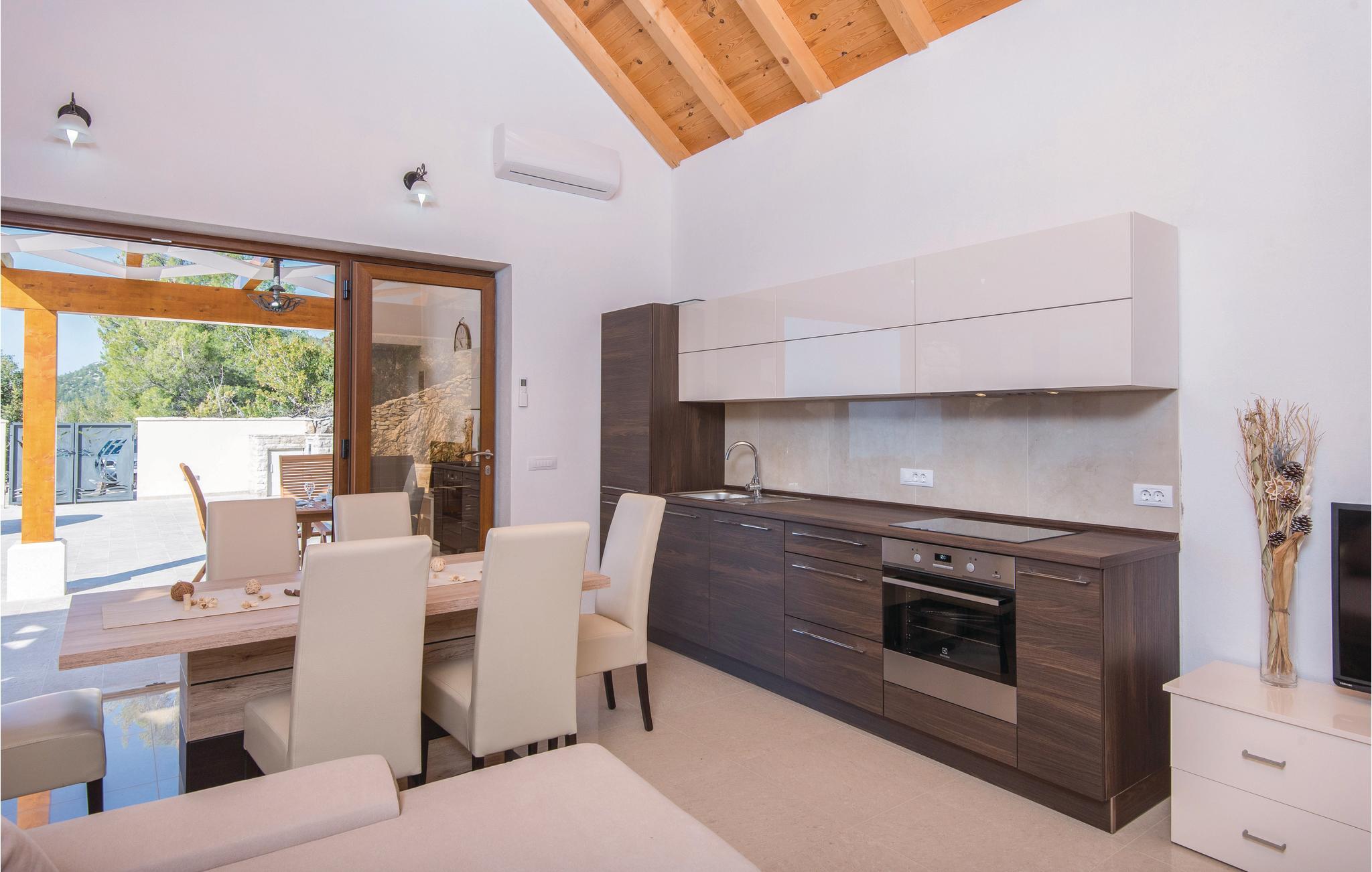På en bakketop over den skønne Karbunibugt ligger dette feriehus. Det er omgivet af en skøn og uberørt natur og herfra er der en skøn panoramaudsigt over havet og naboøerne. Huset er indrettet meget moderne og rustikt i en charmerende blanding. I stueplan ligger køkkenet i åben forbindelse med køkkenet og et soveværelse med badeværelse en suite. Der er også et soveværelse og et badeværelse i et galleri, som I kommer op til ad en vindeltrappe. I haven ligger den rummelige terrasse og en pool med en børneafdeling. Udforsk byen på dagsture til de nærliggende byer Vela Luka, Blato og Prigradica hvor I kan lære de lokale skikke at kende og lære mere om området interessante kultur og historie. De sidste 500 m op til huset er en grusvej, der ikke er egnet til lave biler. De sidste 150 meter er med fliser.