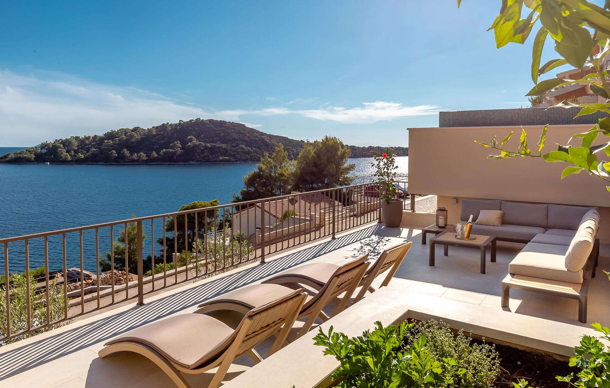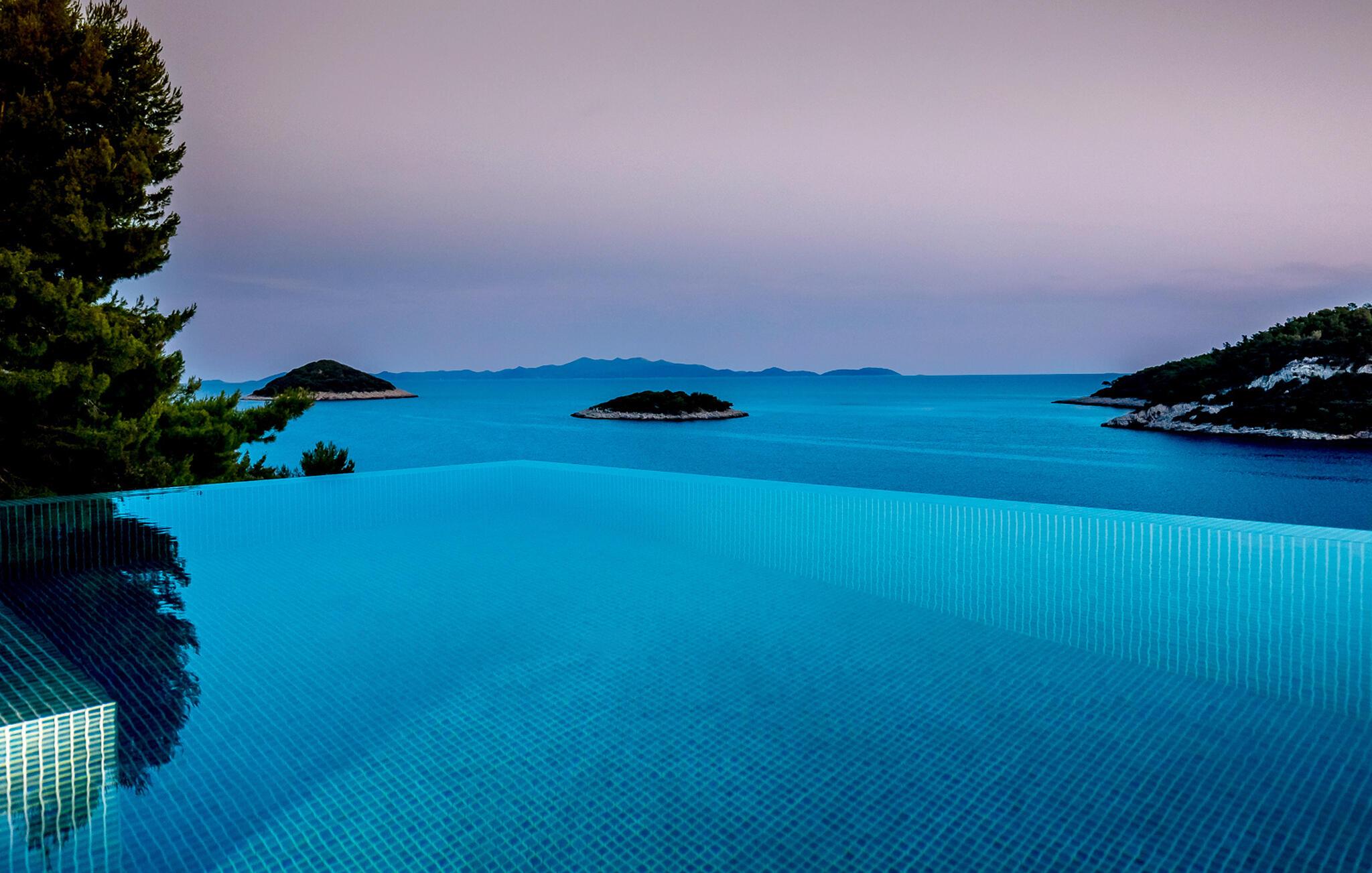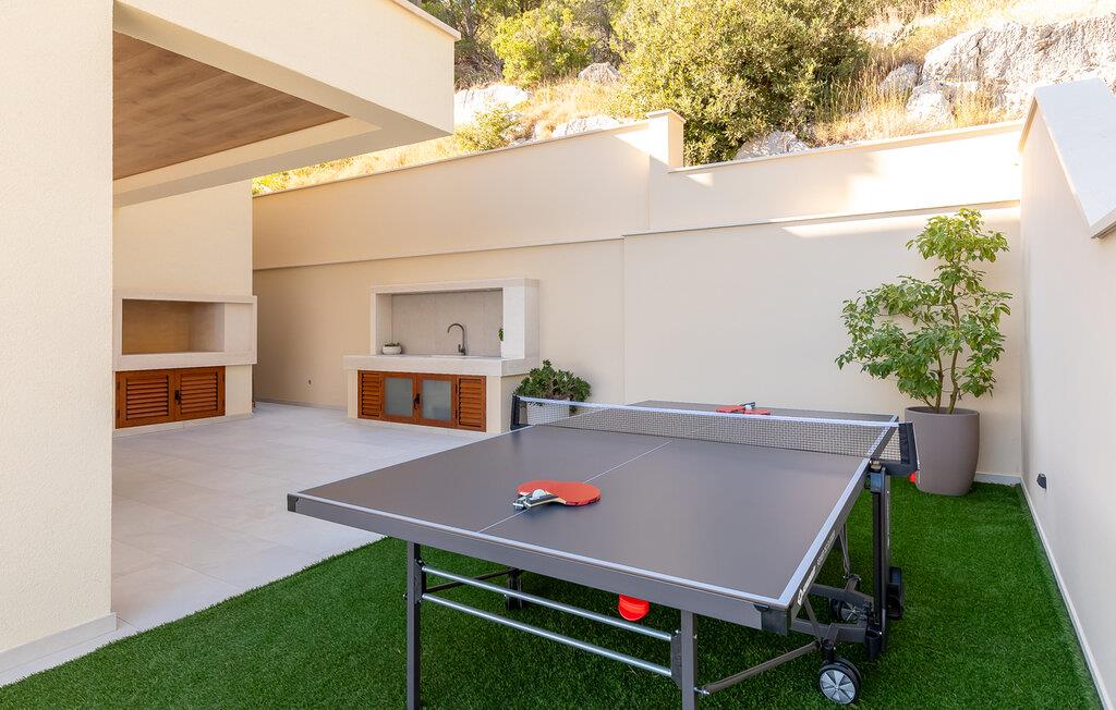 Tilbring en uforglemmelig ferie i denne luksuriøse villa på øen Korcula. Den moderne villa i Karbuni er noget særligt med en betagende panoramaudsigt over det glitrende hav og de omkringliggende øer. Nyd den rolige beliggenhed, der garanterer jer fuldstændig privatliv og afslapning. Brug jeres tid i villaens elegante interiør, som formidler en følelse af rum og lys med møbler af høj kvalitet og store panoramavinduer. Tilbered lækre måltider i det moderne, åbne køkken og nyd dem ved det stilfulde spisebord med udsigt over havet. Brug fitnessrummet og spil bordtennis eller slap af i saunaen. snup en frisk dukkert i den stilfulde infinity-pool, og lad jeres blik vandre over det endeløse blå. Slap af på de komfortable liggestole eller nyd hyggelige timer på den store terrasse, som er optimal til at dele måltider udendørs. Besøg de historiske gyder i Korcula by, slentre gennem de maleriske gader og smag de lokale delikatesser i de traditionelle restauranter. Tag en bådtur til de omkringliggende øer og udforsk regionens skjulte bugter og strande. Oplev den blå grotte på øen Bisevo. Eller nyd en dag på den smukke strand Pupnatska Luka.