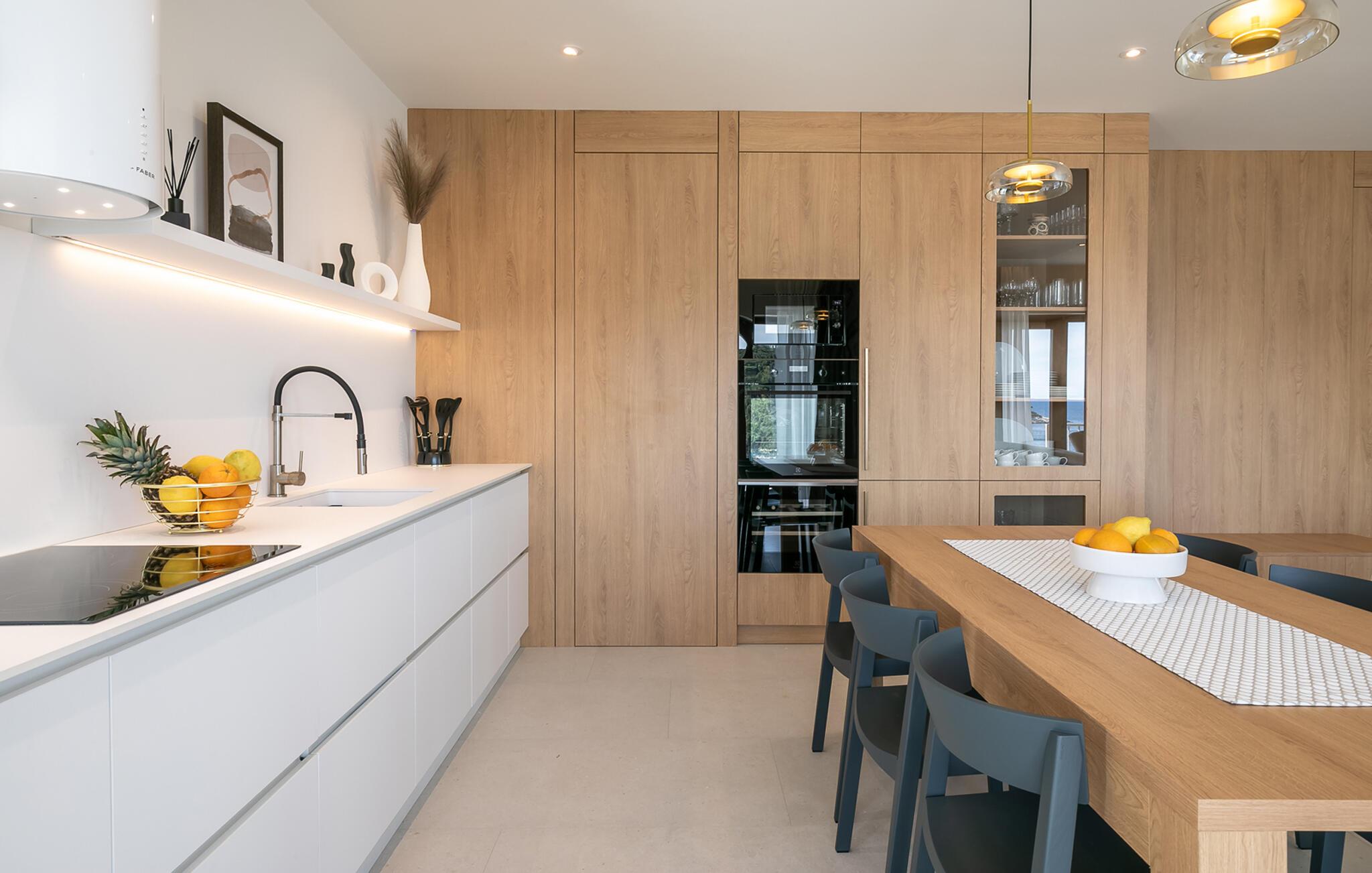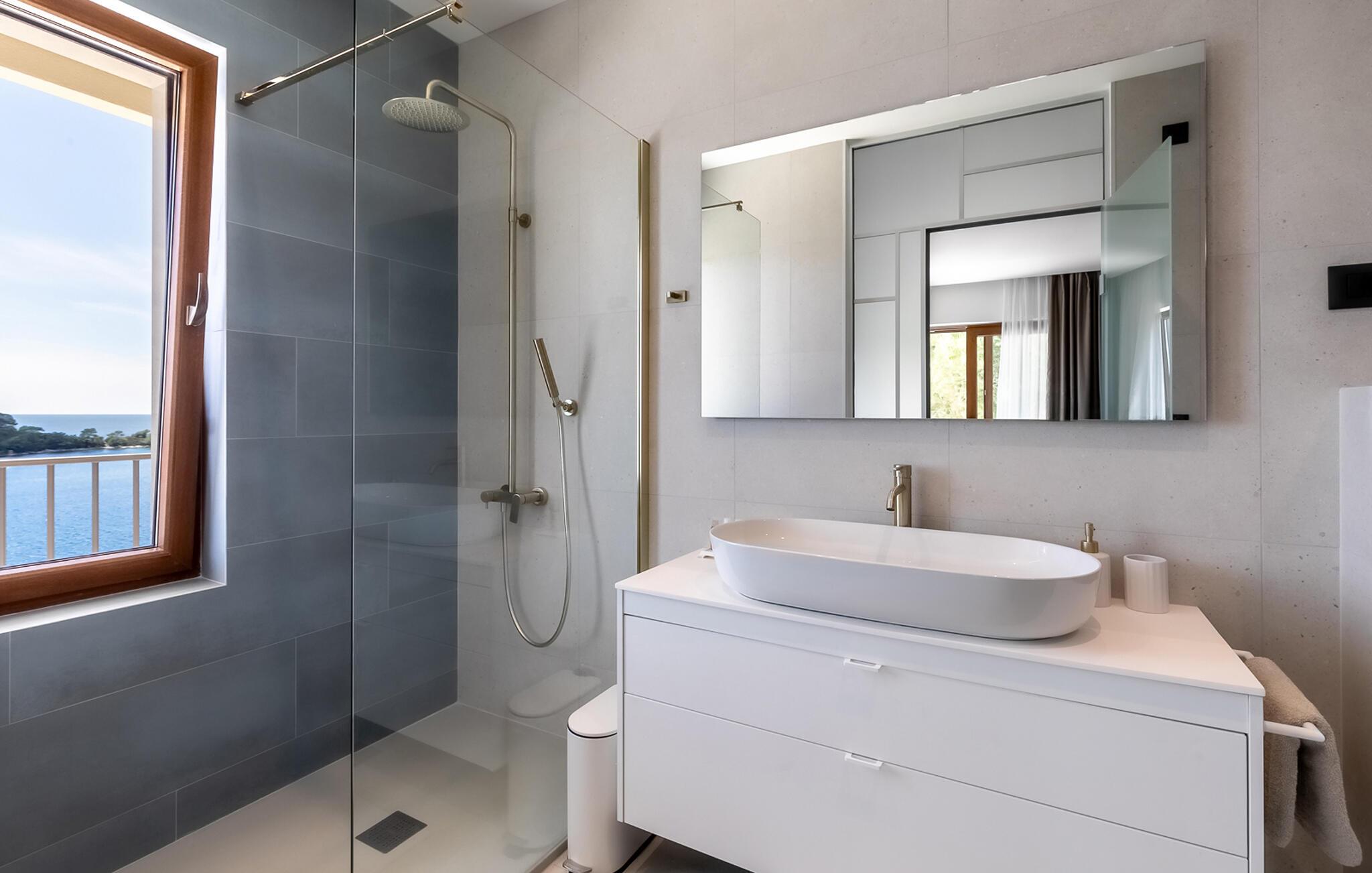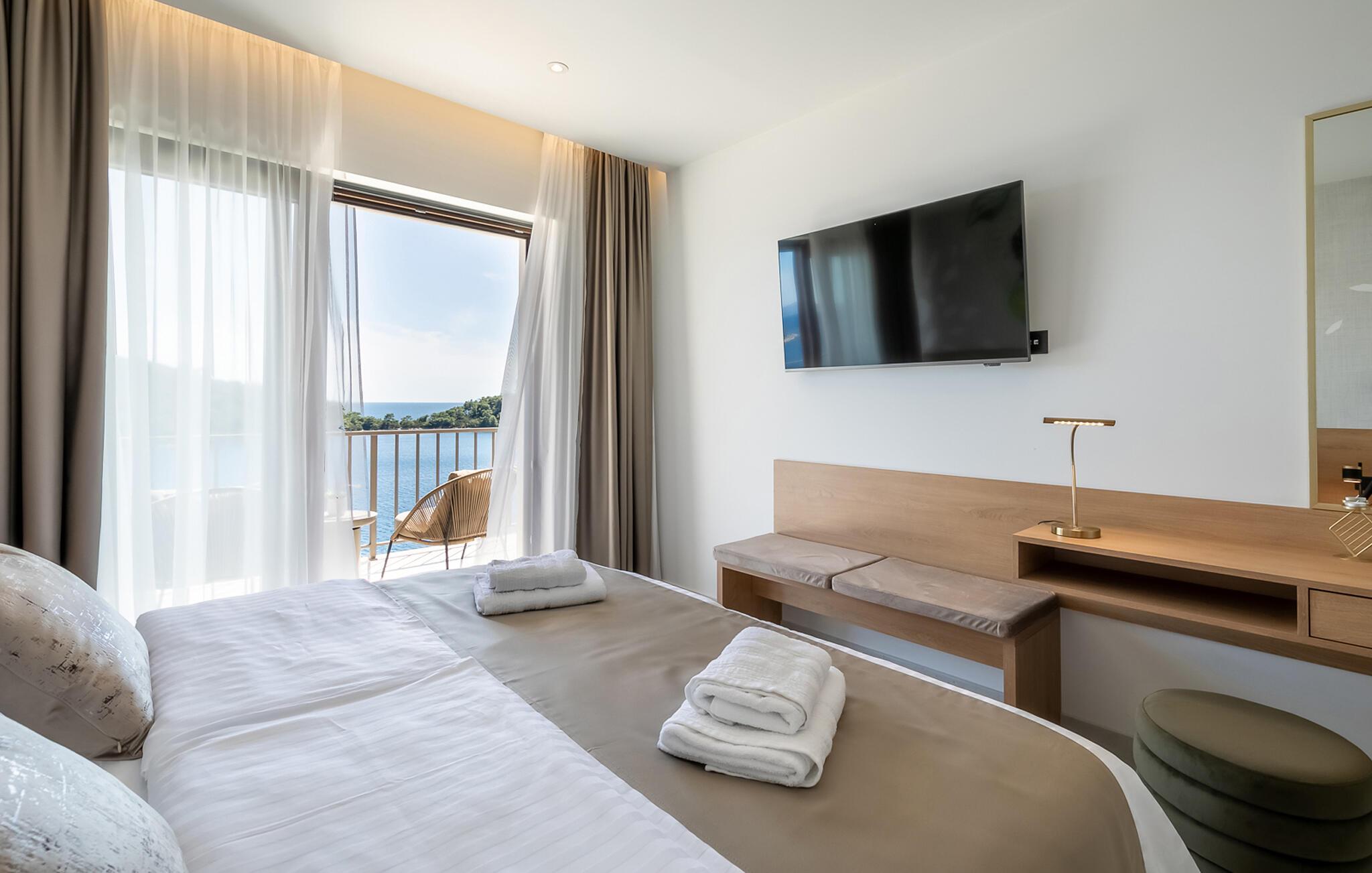 Tilbring en uforglemmelig ferie i denne luksuriøse villa på øen Korcula. Den moderne villa i Karbuni er noget særligt med en betagende panoramaudsigt over det glitrende hav og de omkringliggende øer. Nyd den rolige beliggenhed, der garanterer jer fuldstændig privatliv og afslapning. Brug jeres tid i villaens elegante interiør, som formidler en følelse af rum og lys med møbler af høj kvalitet og store panoramavinduer. Tilbered lækre måltider i det moderne, åbne køkken og nyd dem ved det stilfulde spisebord med udsigt over havet. Brug fitnessrummet og spil bordtennis eller slap af i saunaen. snup en frisk dukkert i den stilfulde infinity-pool, og lad jeres blik vandre over det endeløse blå. Slap af på de komfortable liggestole eller nyd hyggelige timer på den store terrasse, som er optimal til at dele måltider udendørs. Besøg de historiske gyder i Korcula by, slentre gennem de maleriske gader og smag de lokale delikatesser i de traditionelle restauranter. Tag en bådtur til de omkringliggende øer og udforsk regionens skjulte bugter og strande. Oplev den blå grotte på øen Bisevo. Eller nyd en dag på den smukke strand Pupnatska Luka.