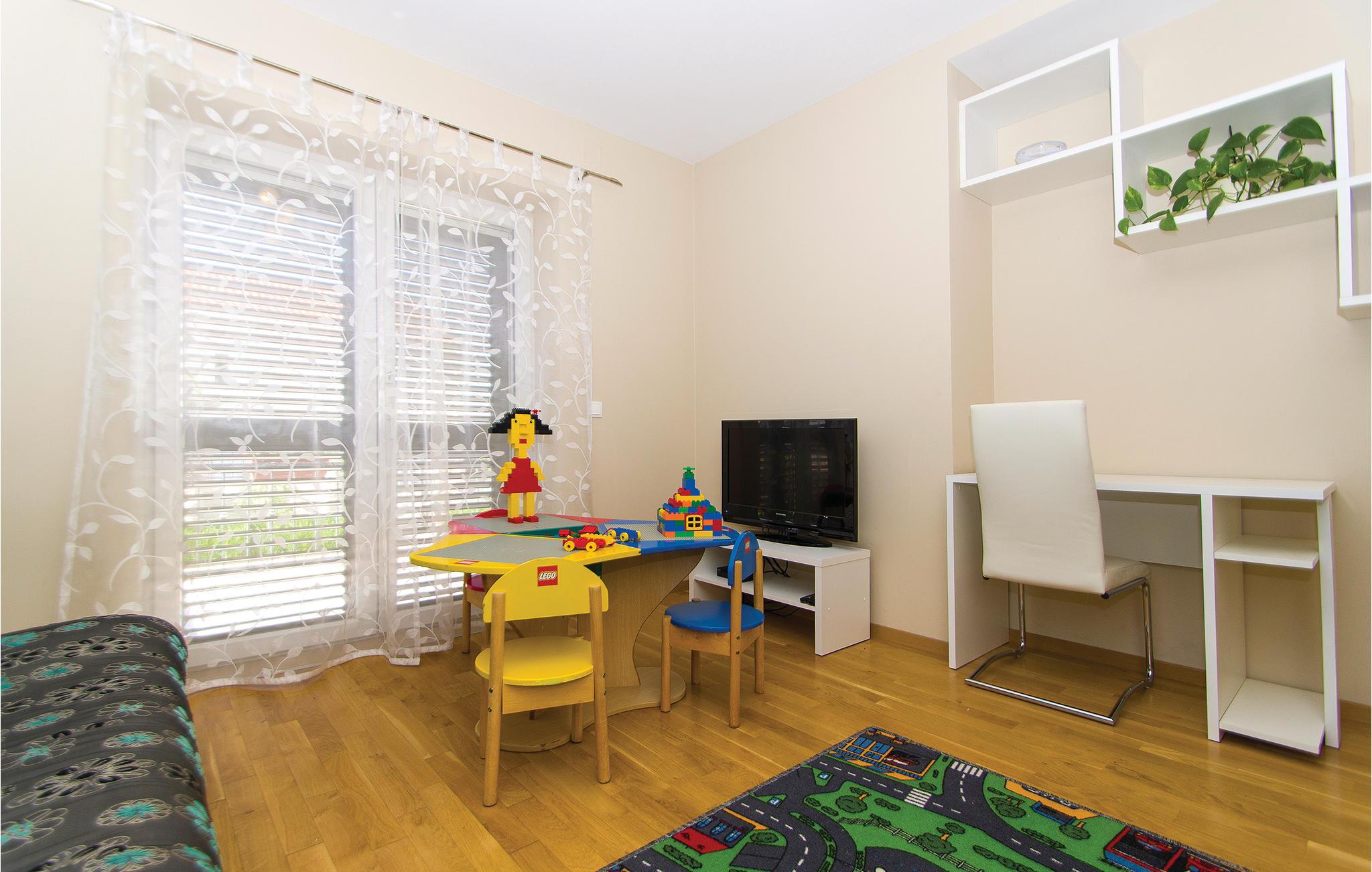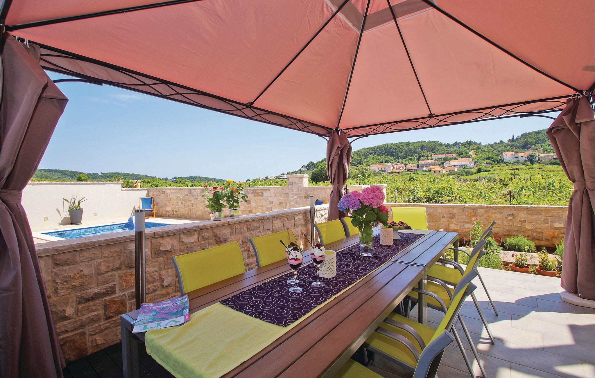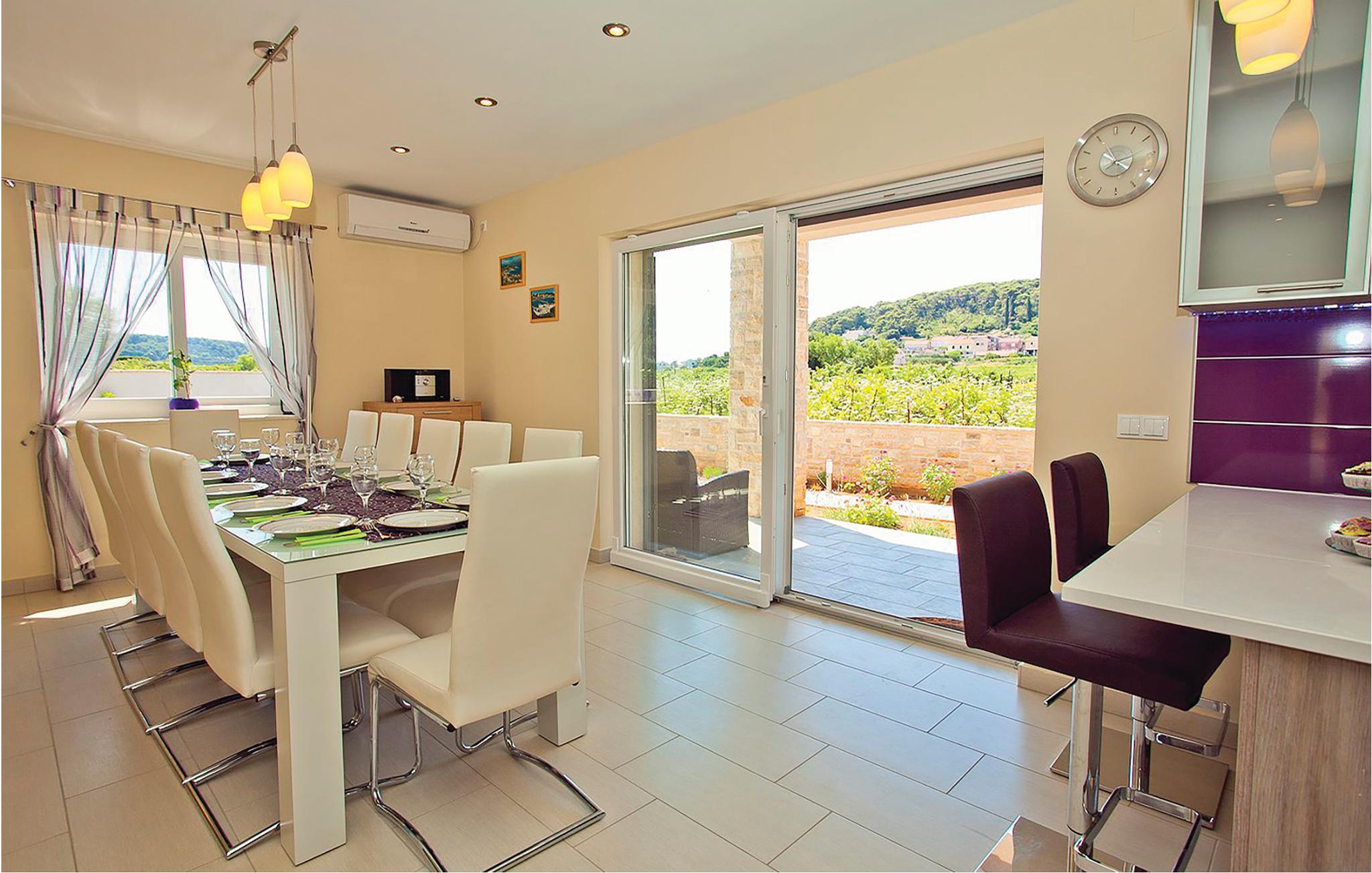 Ved det sydlige Adriaterhav, på den idylliske ø Korcula ligget dette funktionelt indrettede feriehus. I den indhegnede have, der er på hele 1000 m², ligger en pool og forskellige legeredskaber til familiens børn. Her venter jer desuden et velgørende boblebad i whirlpoolen hvor der er plads til tre personer. Huset fordeler sig på flere etager: souterrain, stueetage, første sal og tagetage. Tagetagen med to soveværelser har en laveste loftshøjde på 40 cm. Ud over ialt 6 soveværelser er her også køkken, stue, spisestue, badeværelse og fællesrum, mens I finder et poolbord og en dartskive i souterrain. Et perfekt valg til en ferie med hele gruppen af venner eller storfamilien, her kan I slappe af, tage et venskabeligt spil pool eller samles på terrassen mens de friske fisk sender lokkende dufte fra grillen hvor de hurtigt bliver færdig til servering. Øen Korcula er et elsket rejsemål pga sine klippekyster med mange romantiske ensomme bugter og det krystalblå hav. I skal I hvert fald sætte en del af ferien af til at udforske øen der gør meget for at bevare sine smukke bygninger og vie eksempler på en lang og spændende historie. Især er ridderturneringerne i Morska populære, pga sin professionelle og historisk korrekte udførelse. Besøg øen, nyd den rene og betagende natur og det milde klima og smag på de mange gastronomiske specialiteter. På øens nordside ligger byen med samme navn som øen: Korcula. Den er berømt for sin gamle bydel der er bygget i form af et fiskeben. Her er der meget at se og deltage i hele sommeren.