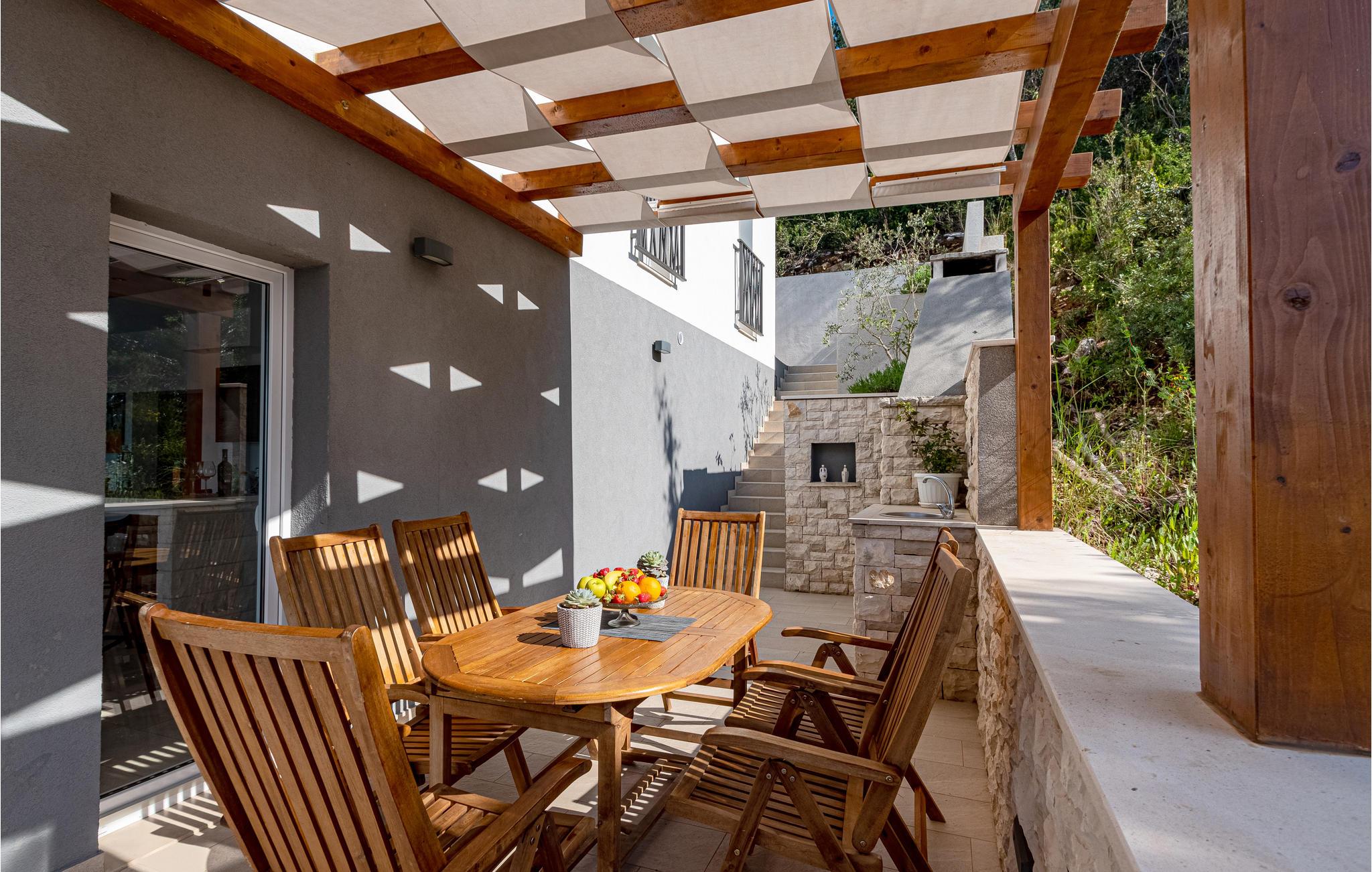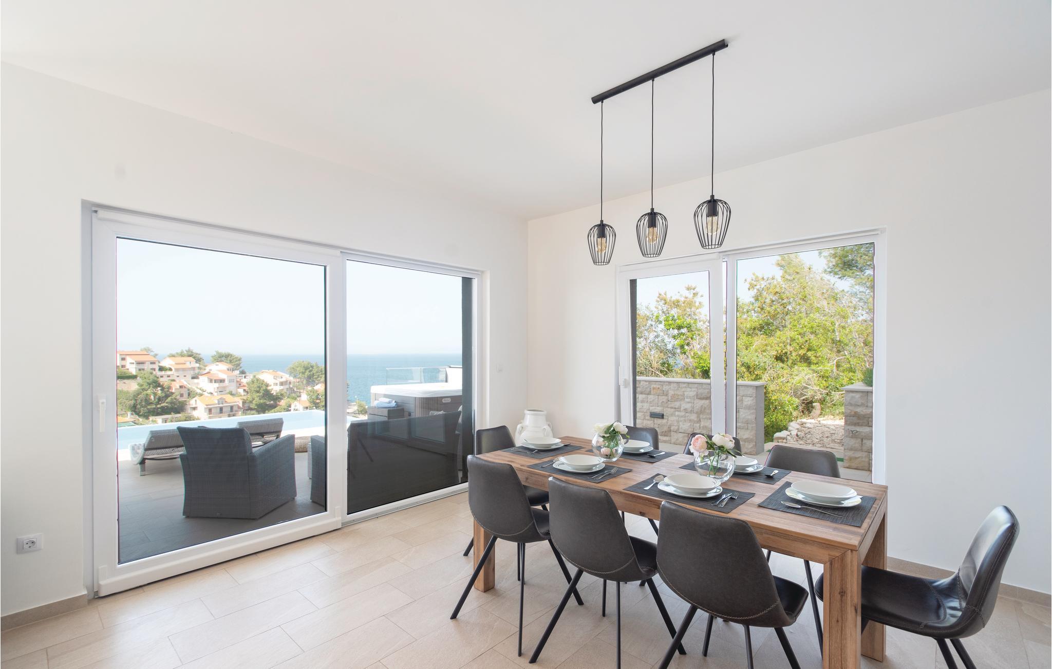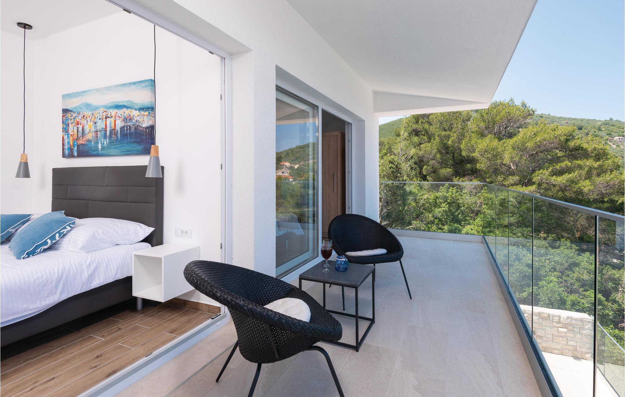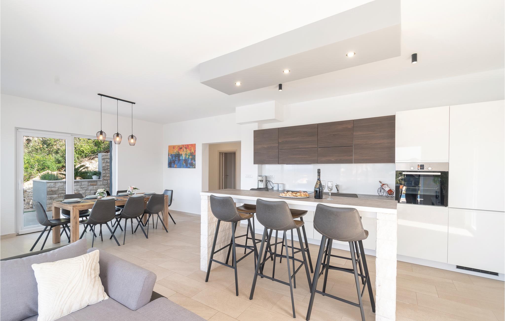 Dette dejlige og attraktive feriehus ligger på den nordvestlige del af øen Korcula. Det er beliggende på toppen af en bakke ovenfor den lille landsby Prigradica, og her råder I over udsigt til bugten og øen Hvar. Den enkle arkitektur, med dens harmoniske linjer og moderne design, giver huset en naturlig elegance. Oplev den perfekte middelhavsferie med panoramaudsigten fra dette behagelige drømmehus. Efter de lange dage ved stranden kan I tage en spadseretur langs promenaden, eller nyde aftenen med et glas vin. I bil når I let byerne Vela Luka, Korcula og Lumbarda, som bestemt er besøg værd.