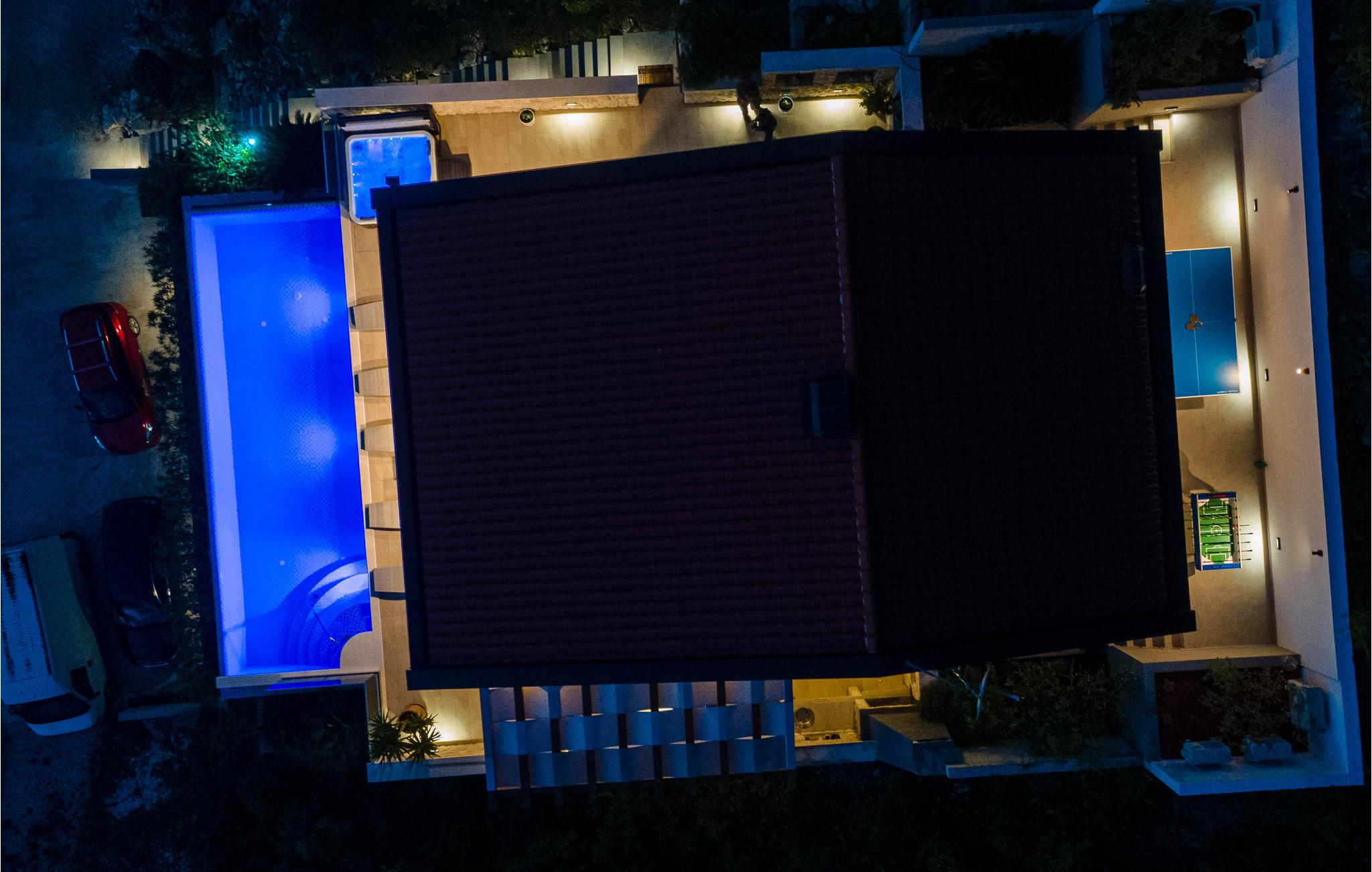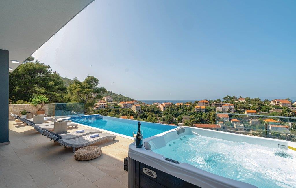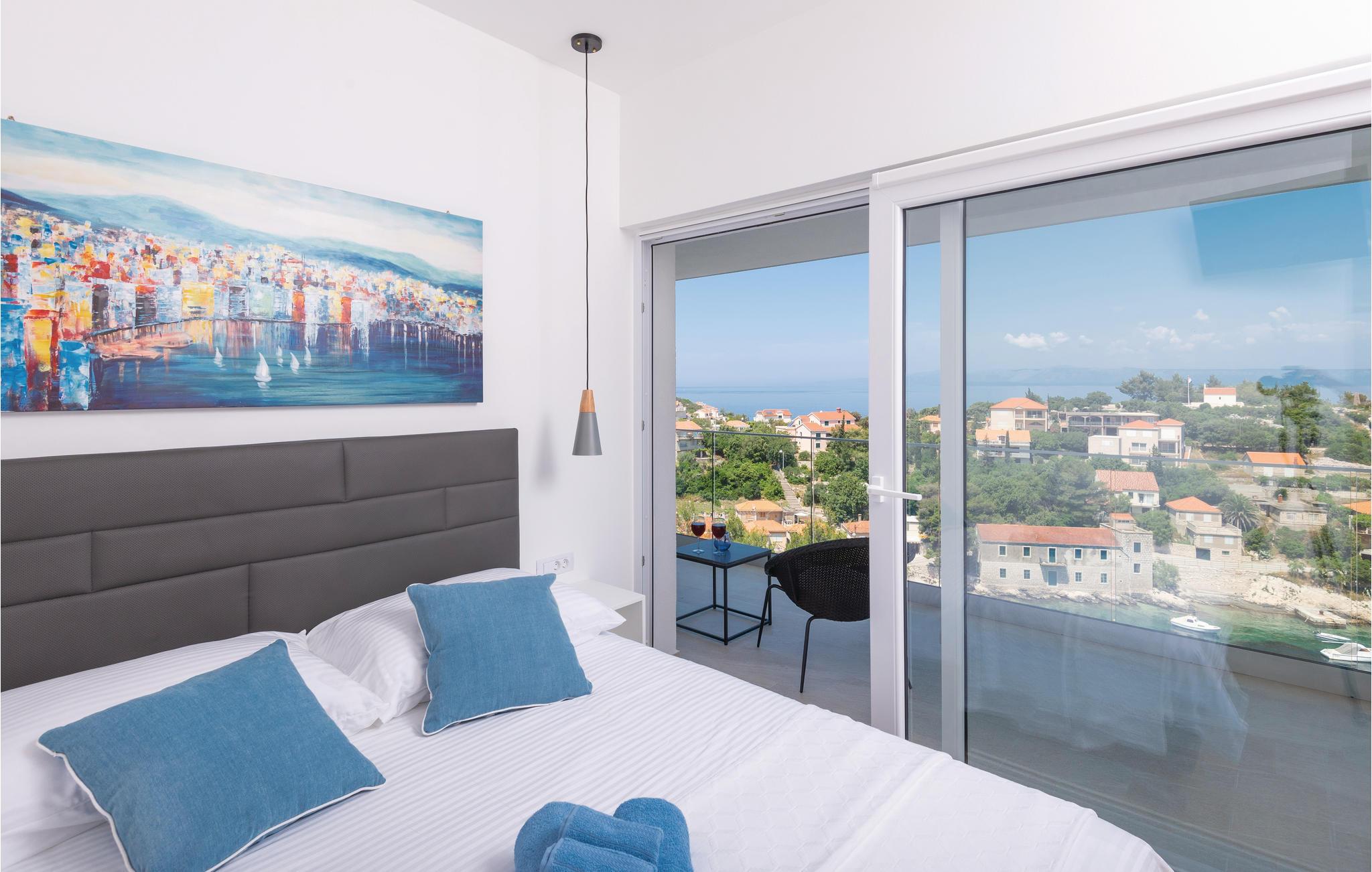 Dette dejlige og attraktive feriehus ligger på den nordvestlige del af øen Korcula. Det er beliggende på toppen af en bakke ovenfor den lille landsby Prigradica, og her råder I over udsigt til bugten og øen Hvar. Den enkle arkitektur, med dens harmoniske linjer og moderne design, giver huset en naturlig elegance. Oplev den perfekte middelhavsferie med panoramaudsigten fra dette behagelige drømmehus. Efter de lange dage ved stranden kan I tage en spadseretur langs promenaden, eller nyde aftenen med et glas vin. I bil når I let byerne Vela Luka, Korcula og Lumbarda, som bestemt er besøg værd.