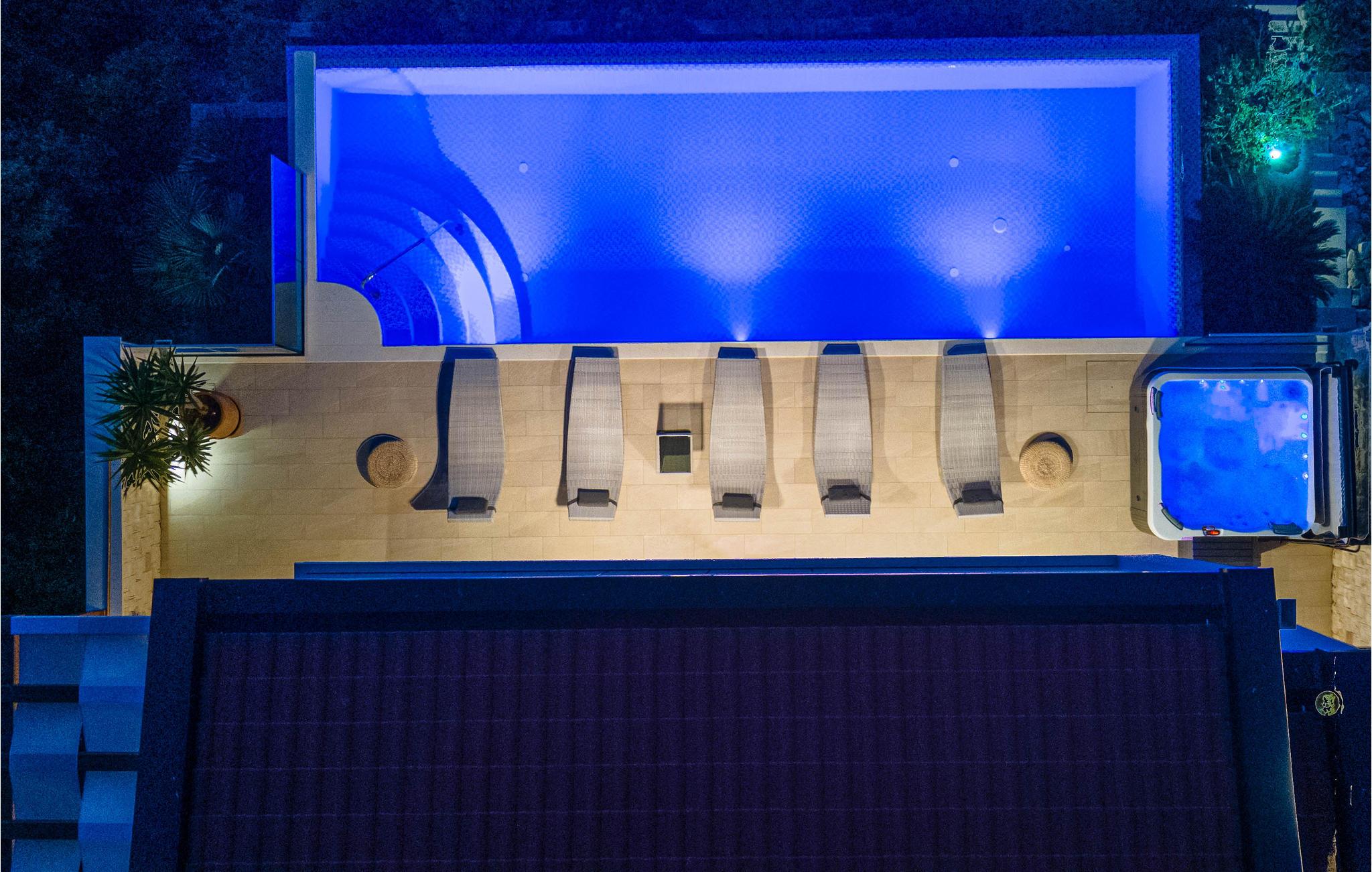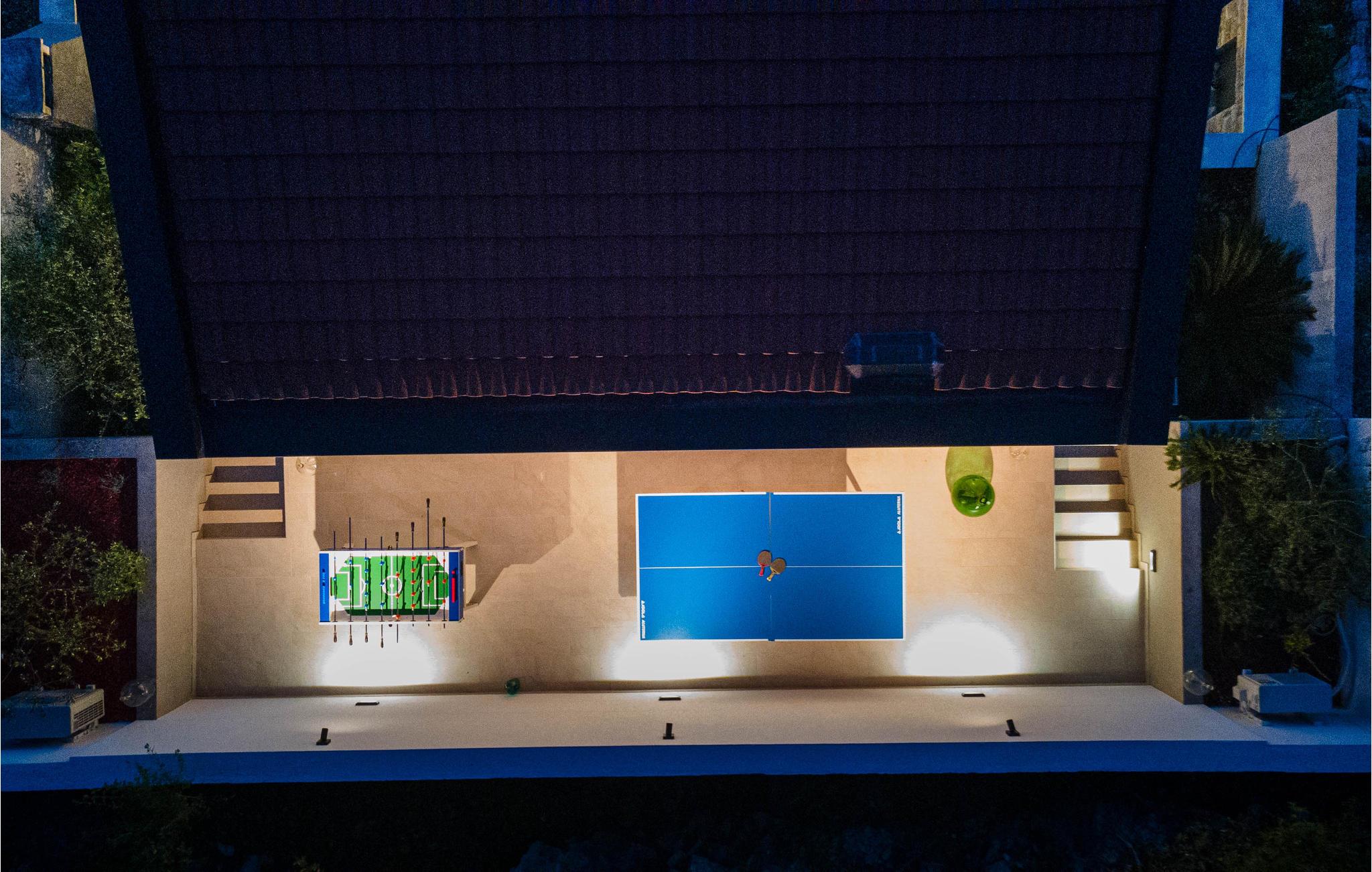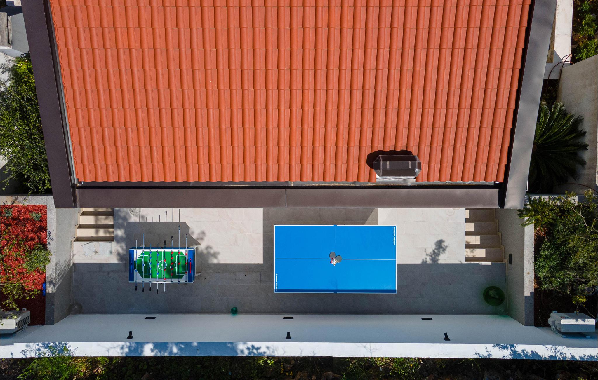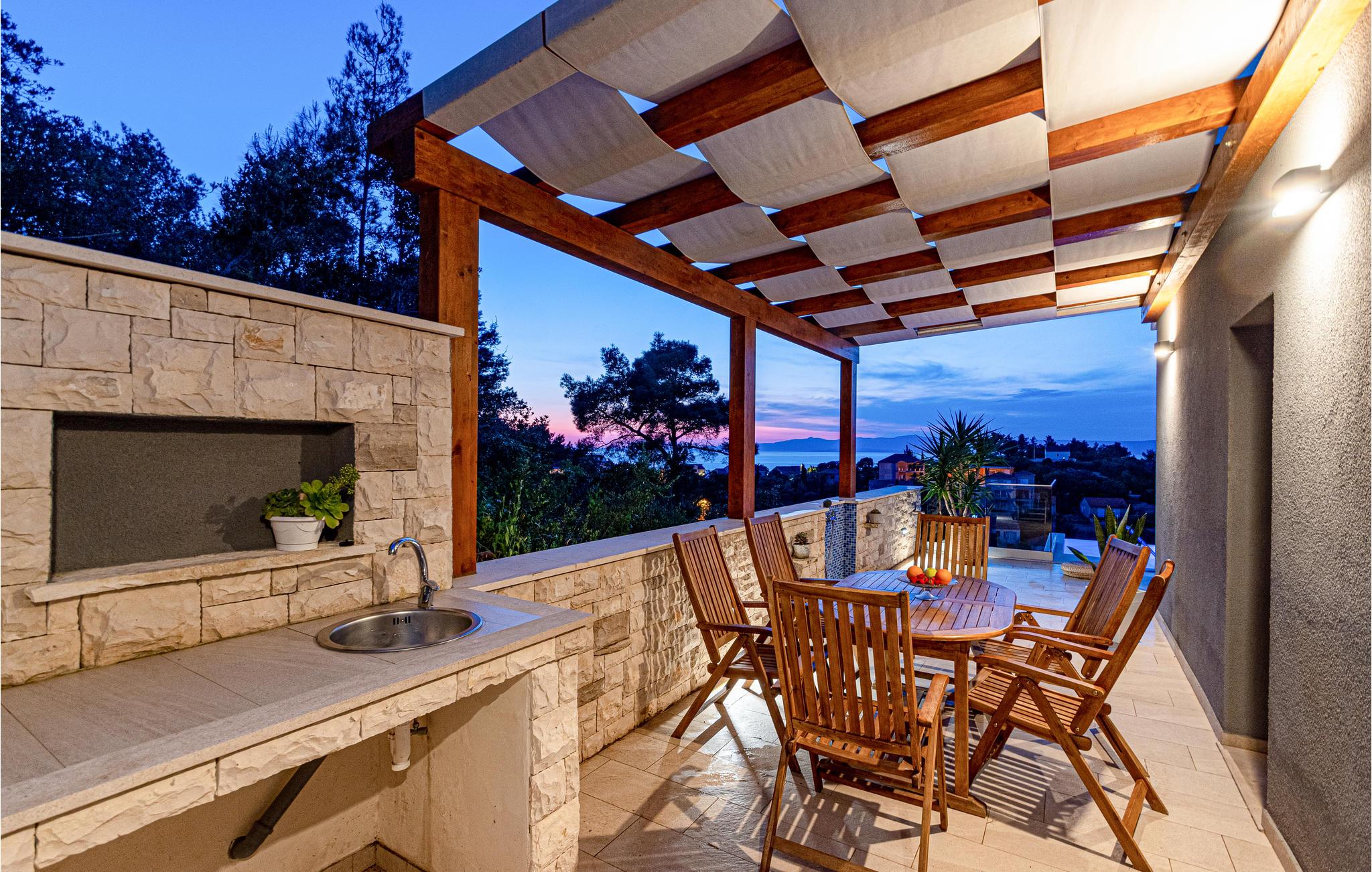 Dette dejlige og attraktive feriehus ligger på den nordvestlige del af øen Korcula. Det er beliggende på toppen af en bakke ovenfor den lille landsby Prigradica, og her råder I over udsigt til bugten og øen Hvar. Den enkle arkitektur, med dens harmoniske linjer og moderne design, giver huset en naturlig elegance. Oplev den perfekte middelhavsferie med panoramaudsigten fra dette behagelige drømmehus. Efter de lange dage ved stranden kan I tage en spadseretur langs promenaden, eller nyde aftenen med et glas vin. I bil når I let byerne Vela Luka, Korcula og Lumbarda, som bestemt er besøg værd.