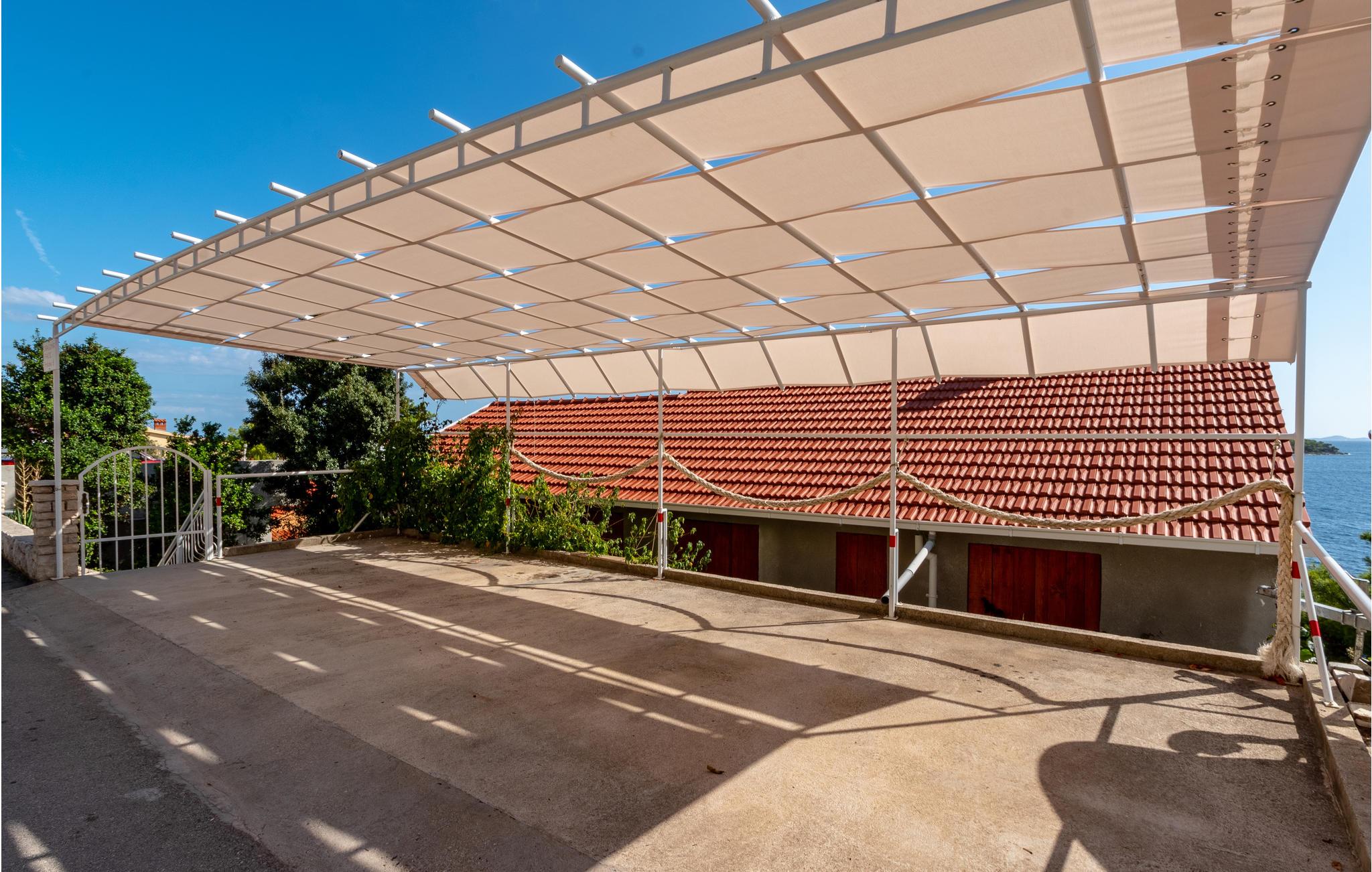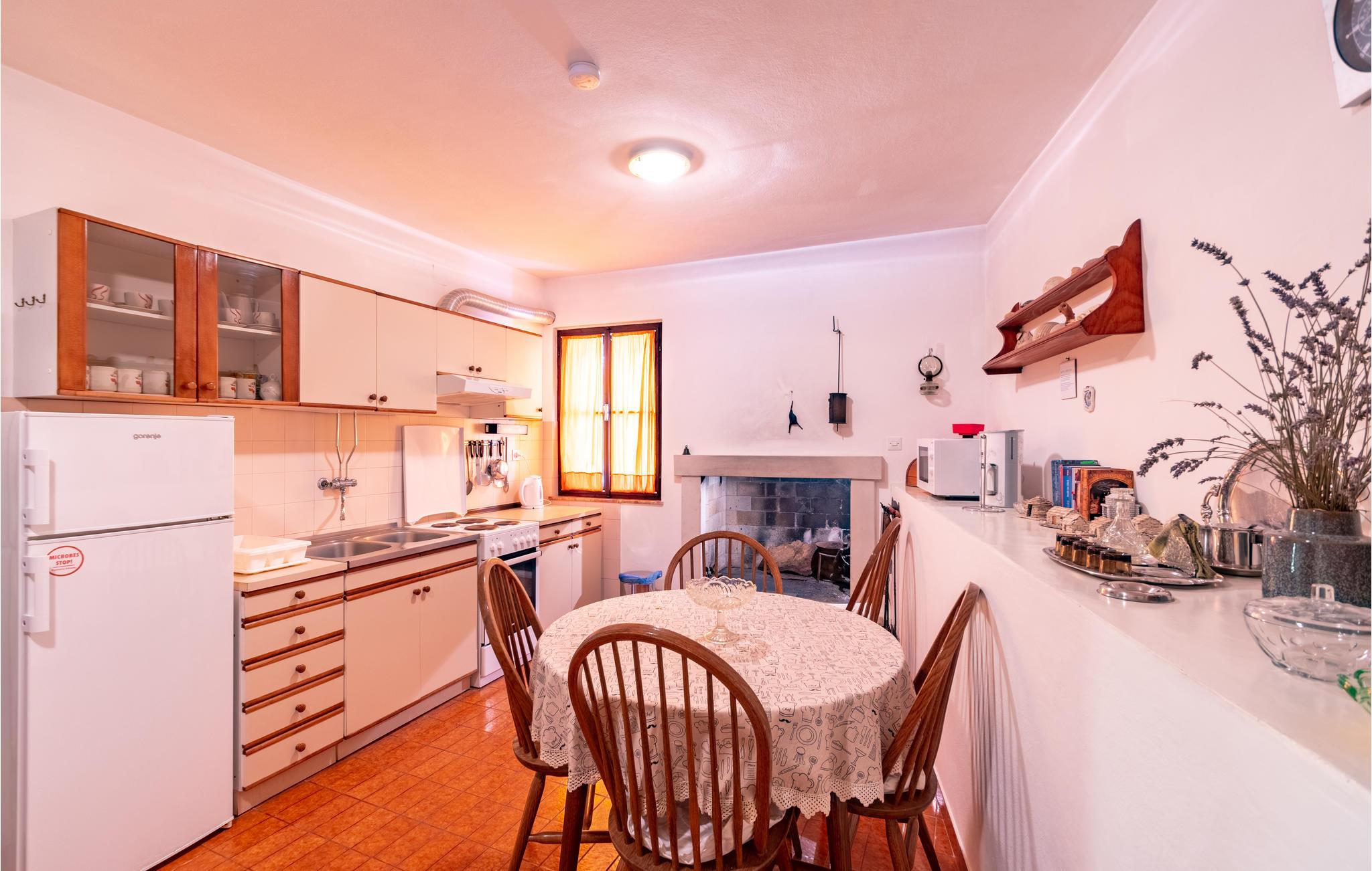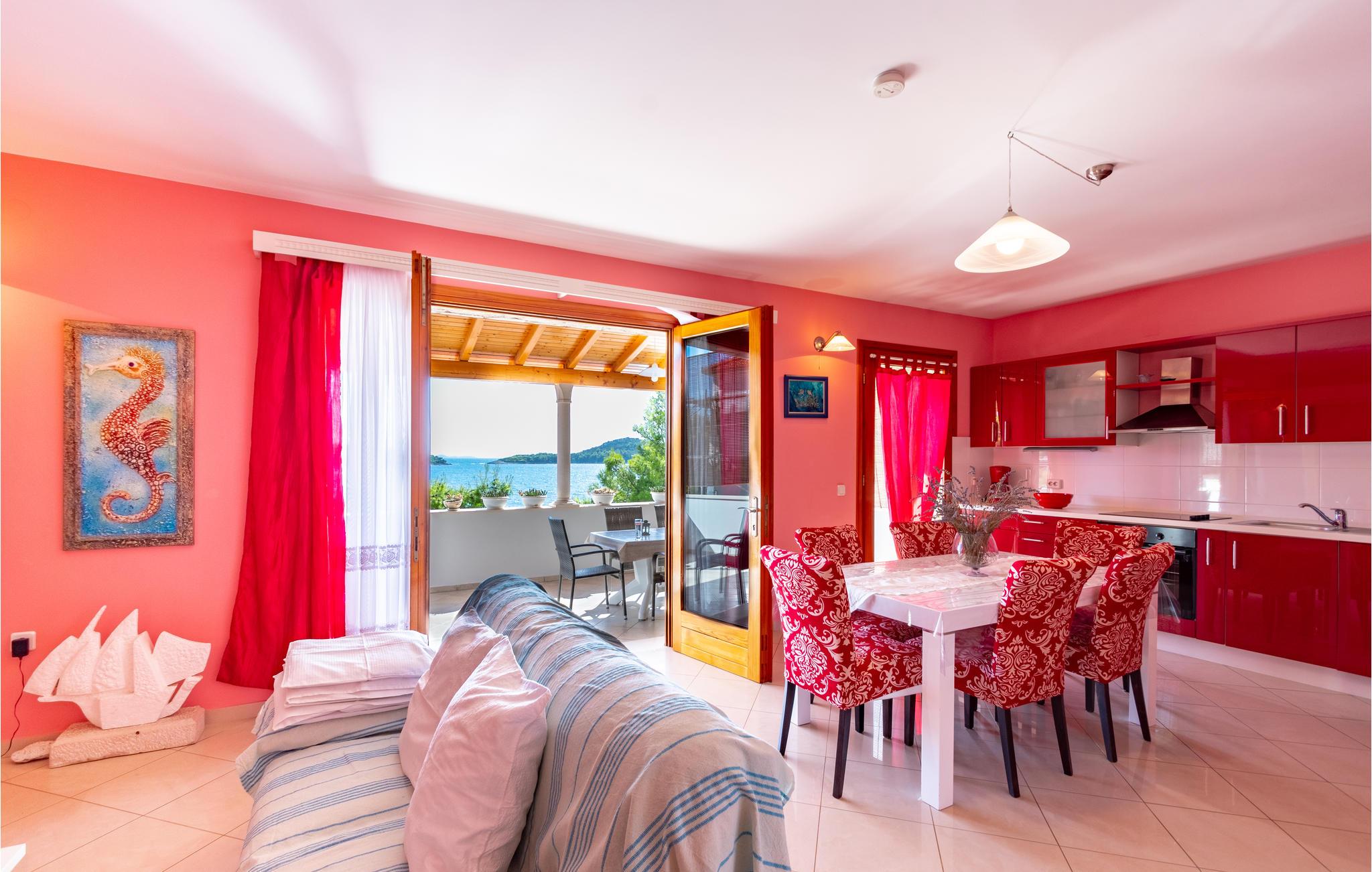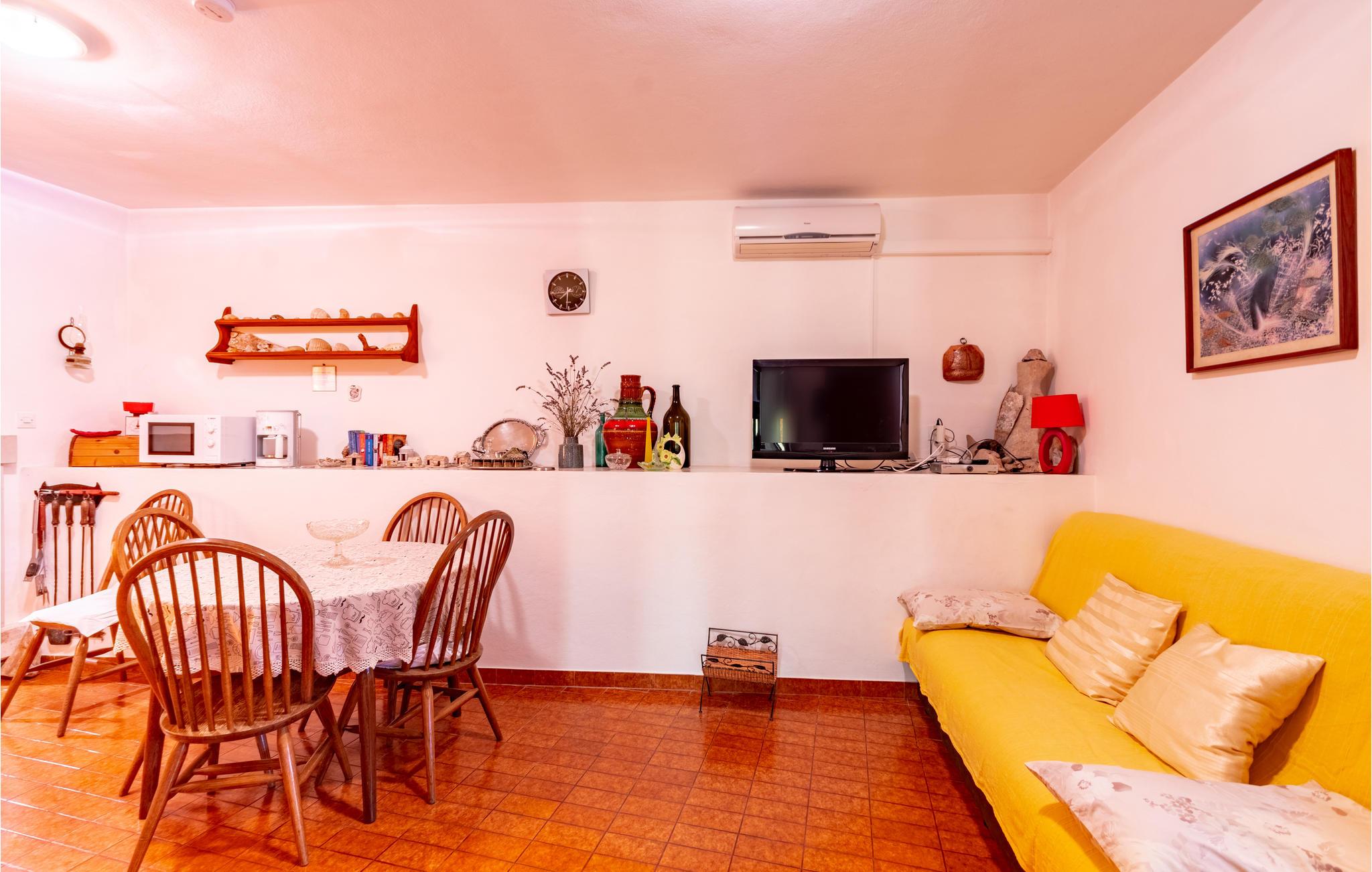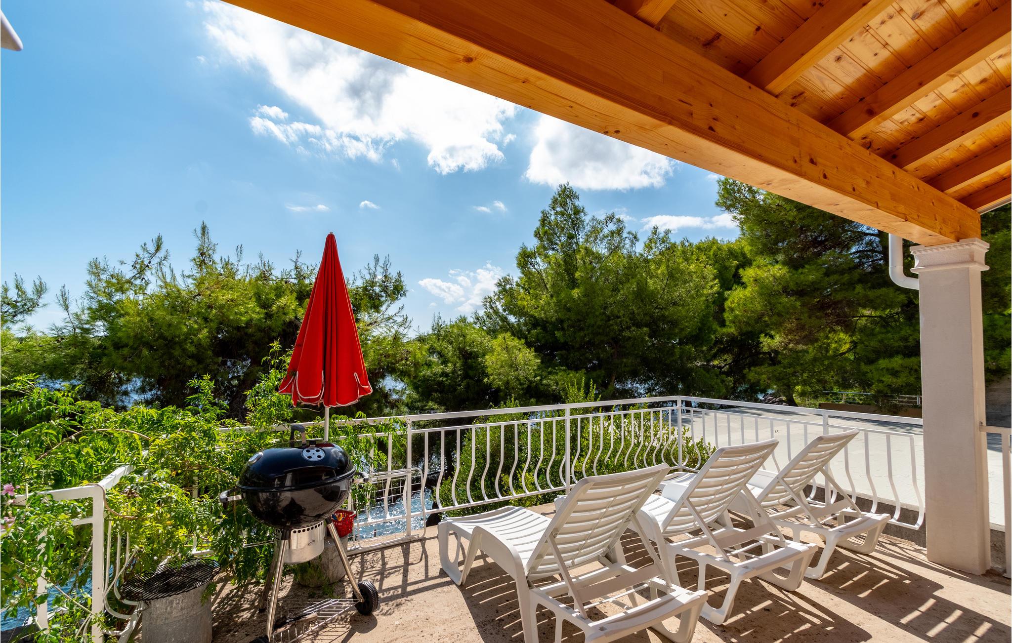 De skønneste dage på hele året bliver ganske enkelt helt uforglemmelige i dette lille, flotte stenhus! Lad solstrålerne danse hen over kroppen, svøm i det krystalklare hav, og træk jer tilbage på den skyggefulde terrasse, der er omgivet af flotte fyrretræer, når det bliver for varmt i solen. Huset ligger kun 10 m fra en dejlig privat strand, så det er oplagt at begynde eller slutte dagen med en svømmetur. Huset har to adskilte boligenheder, som er forbundne af en udendørs trappe. Stueetagen er ikke renoveret og har enkle møbler. Hvis I kommer med egen båd, er der en gratis anlægsplads til jeres rådighed. Et hus med alle forudsætninger til en uforglemmelig dejlig ferie.