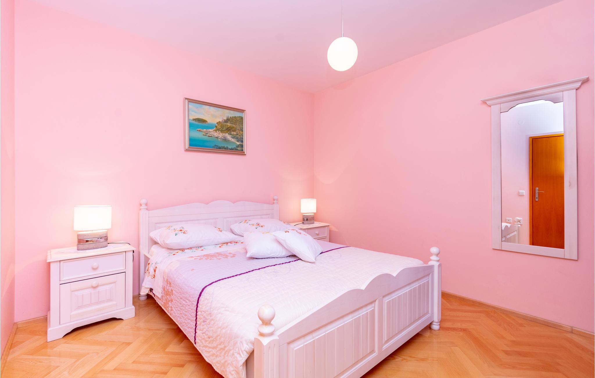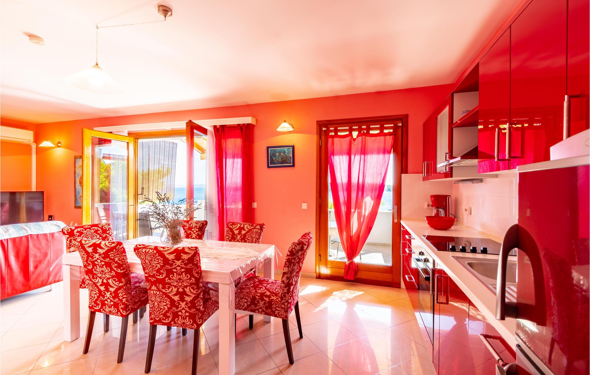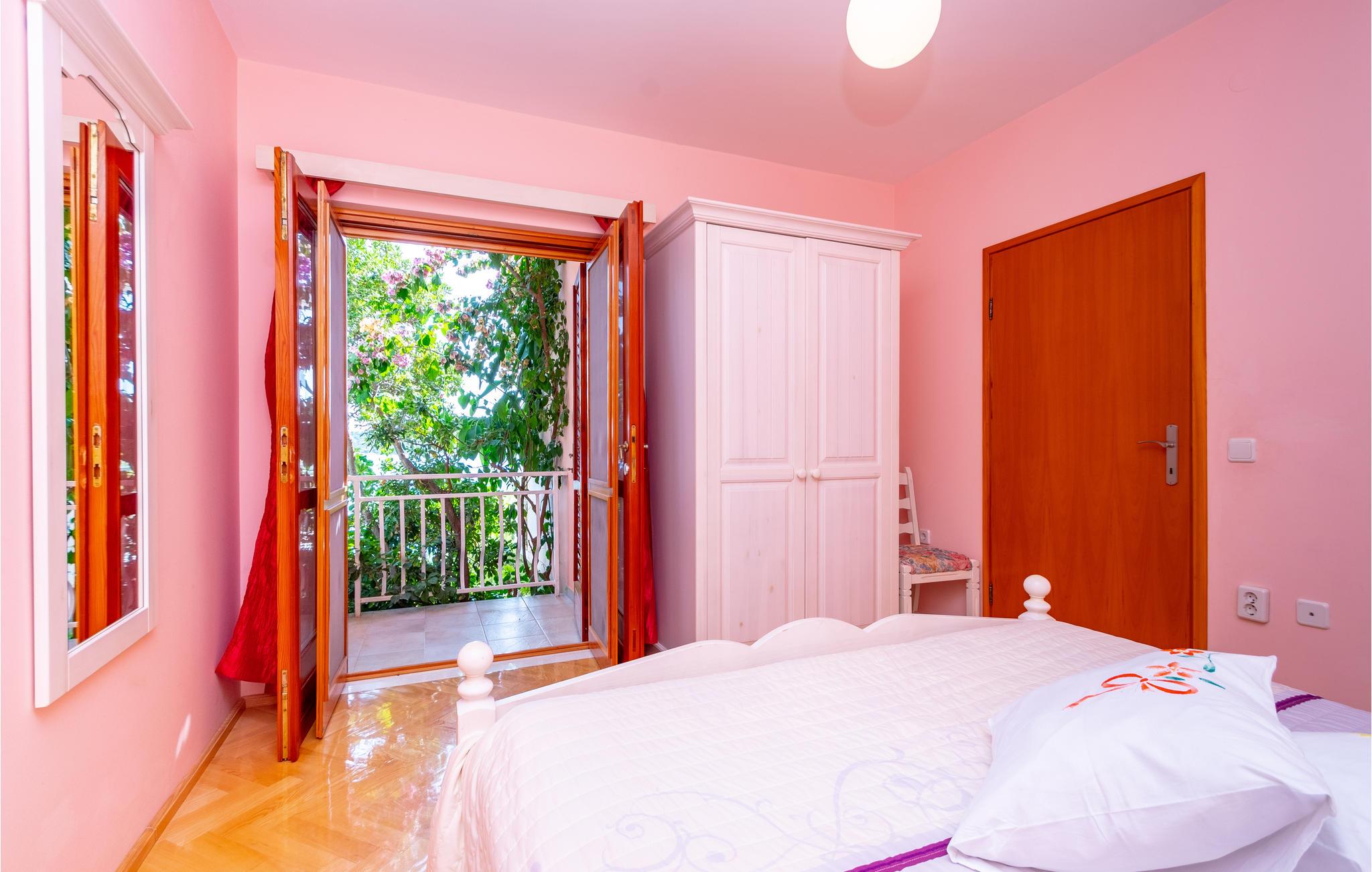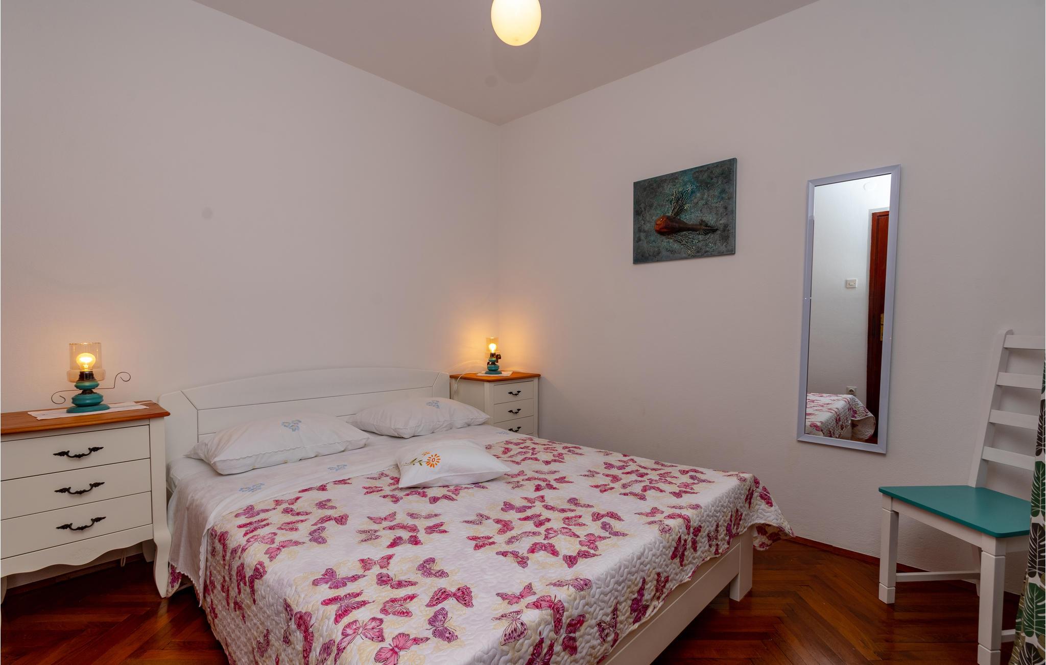De skønneste dage på hele året bliver ganske enkelt helt uforglemmelige i dette lille, flotte stenhus! Lad solstrålerne danse hen over kroppen, svøm i det krystalklare hav, og træk jer tilbage på den skyggefulde terrasse, der er omgivet af flotte fyrretræer, når det bliver for varmt i solen. Huset ligger kun 10 m fra en dejlig privat strand, så det er oplagt at begynde eller slutte dagen med en svømmetur. Huset har to adskilte boligenheder, som er forbundne af en udendørs trappe. Stueetagen er ikke renoveret og har enkle møbler. Hvis I kommer med egen båd, er der en gratis anlægsplads til jeres rådighed. Et hus med alle forudsætninger til en uforglemmelig dejlig ferie.