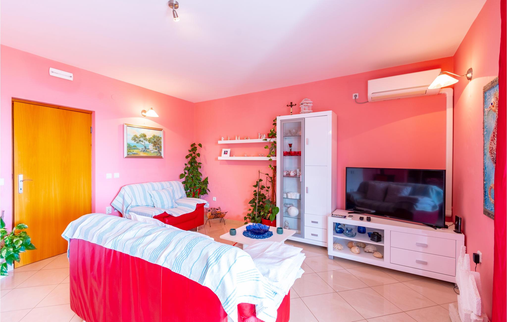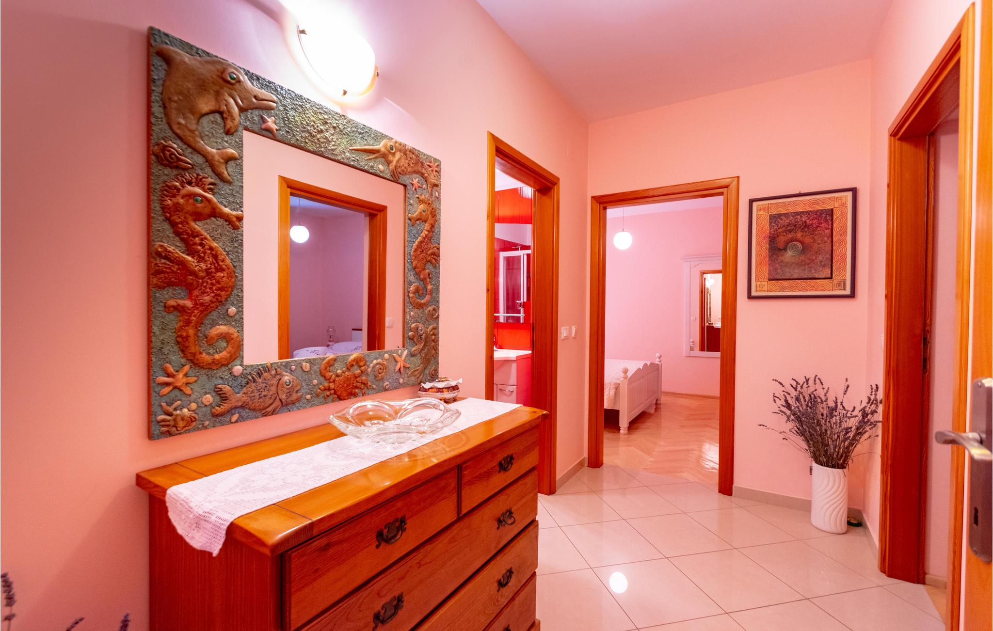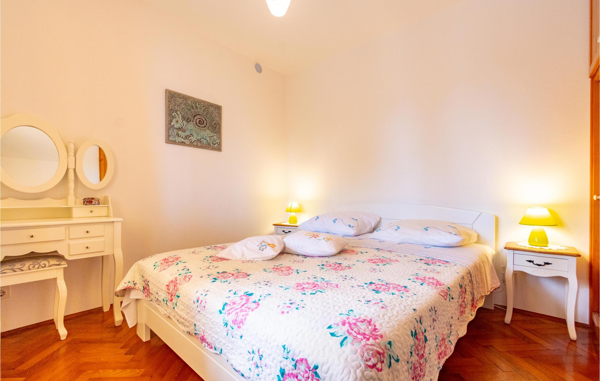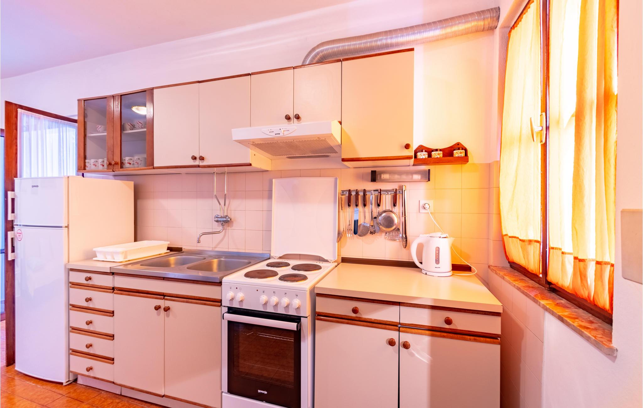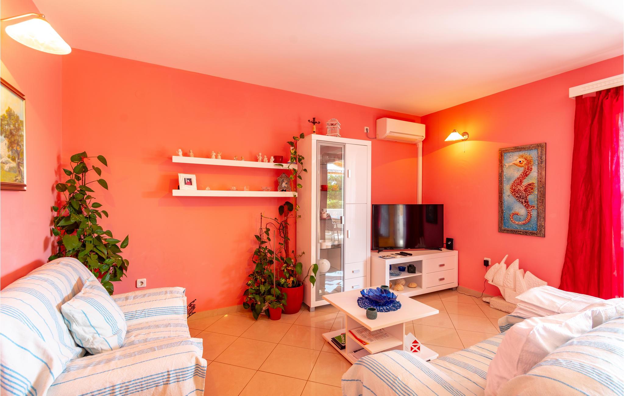 De skønneste dage på hele året bliver ganske enkelt helt uforglemmelige i dette lille, flotte stenhus! Lad solstrålerne danse hen over kroppen, svøm i det krystalklare hav, og træk jer tilbage på den skyggefulde terrasse, der er omgivet af flotte fyrretræer, når det bliver for varmt i solen. Huset ligger kun 10 m fra en dejlig privat strand, så det er oplagt at begynde eller slutte dagen med en svømmetur. Huset har to adskilte boligenheder, som er forbundne af en udendørs trappe. Stueetagen er ikke renoveret og har enkle møbler. Hvis I kommer med egen båd, er der en gratis anlægsplads til jeres rådighed. Et hus med alle forudsætninger til en uforglemmelig dejlig ferie.