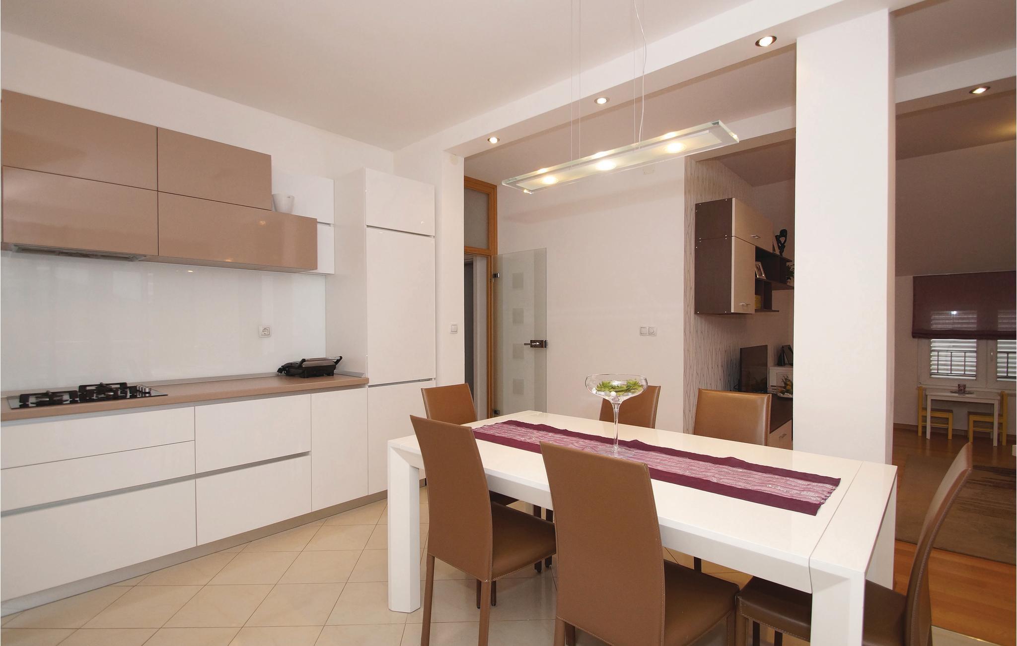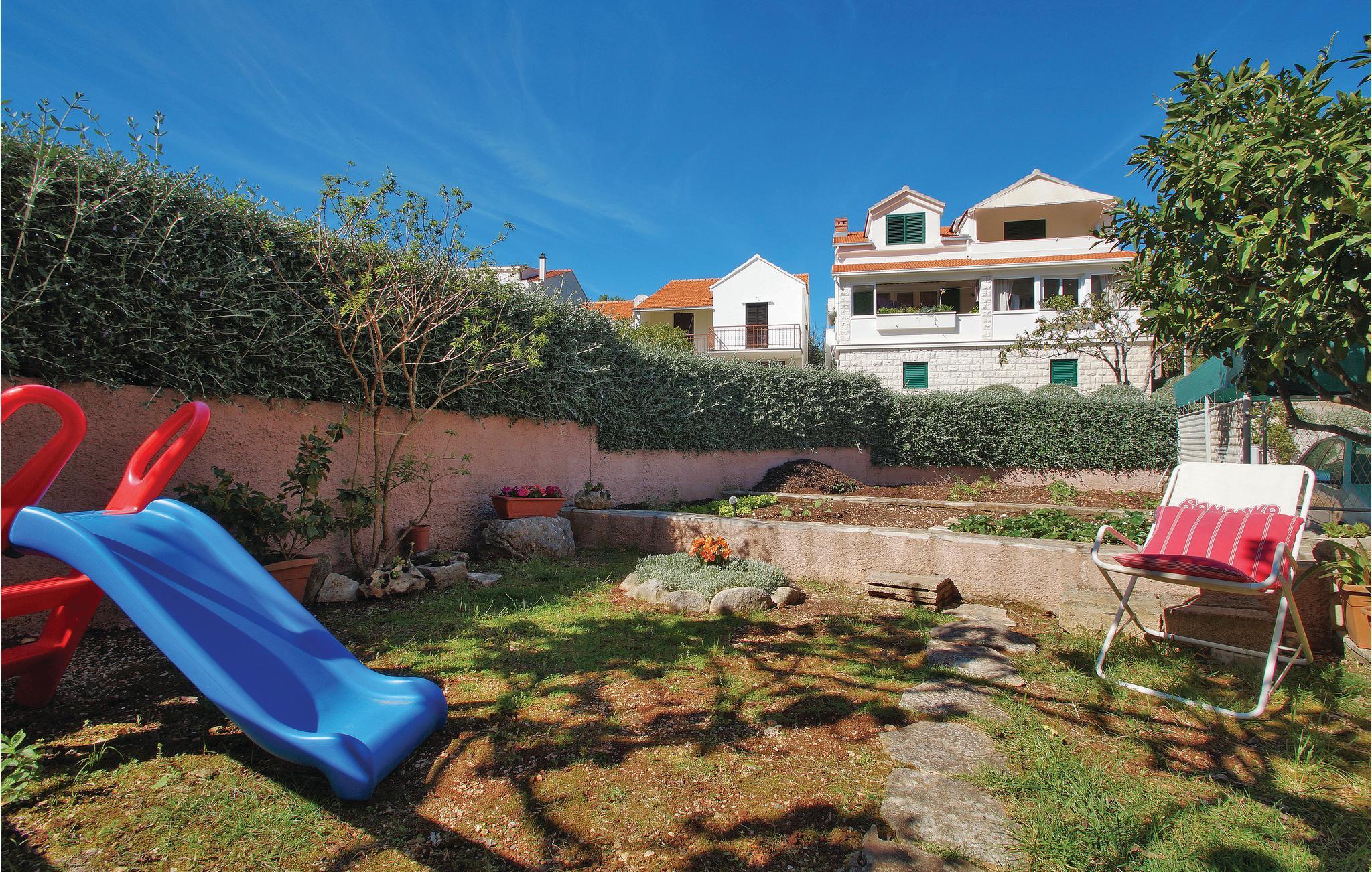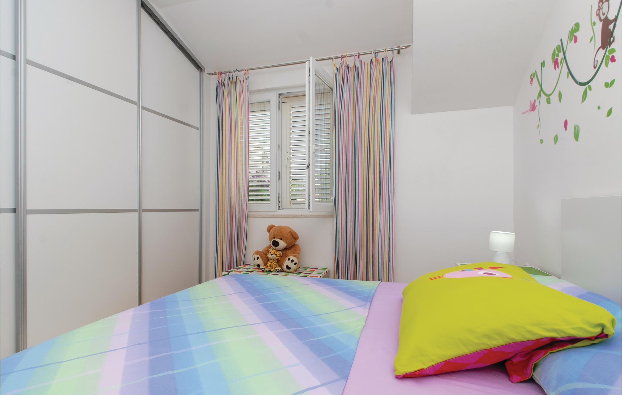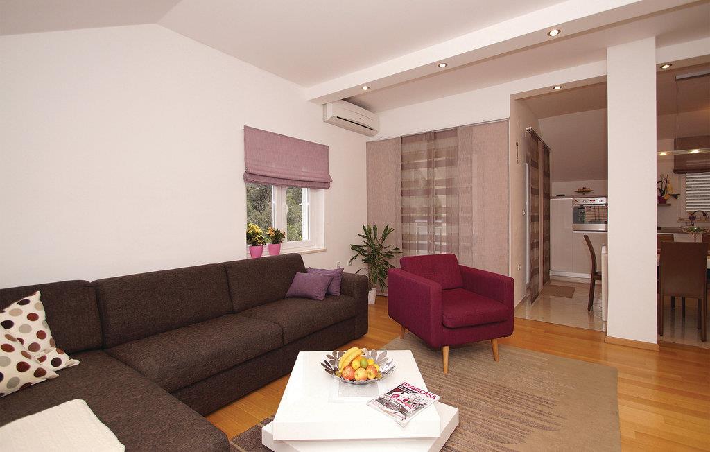 Denne rummelige ferielejlighed i Racišce ligger på første sal af ejernes hus. Den er smagfuldt indrettet, med stor dagligstue og komplet udstyret køkken. Den mindste loftshøjde er 100 cm. Den er den eneste ferielejlighed i huset, og i stuen bor kun ejerne. På terrassen i stueetagen er der også en grill til rådighed, som I kan tilbringe mange dejlige timer omkring, ligesom i havemøblerne på terrassen ovenpå. I nærheden nyder I godt af to badestrande og det krystalklare hav.