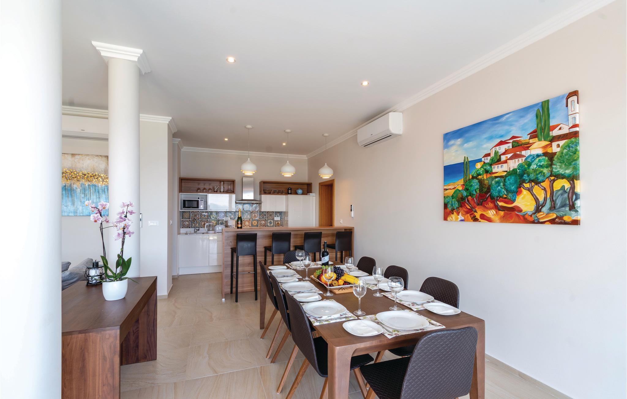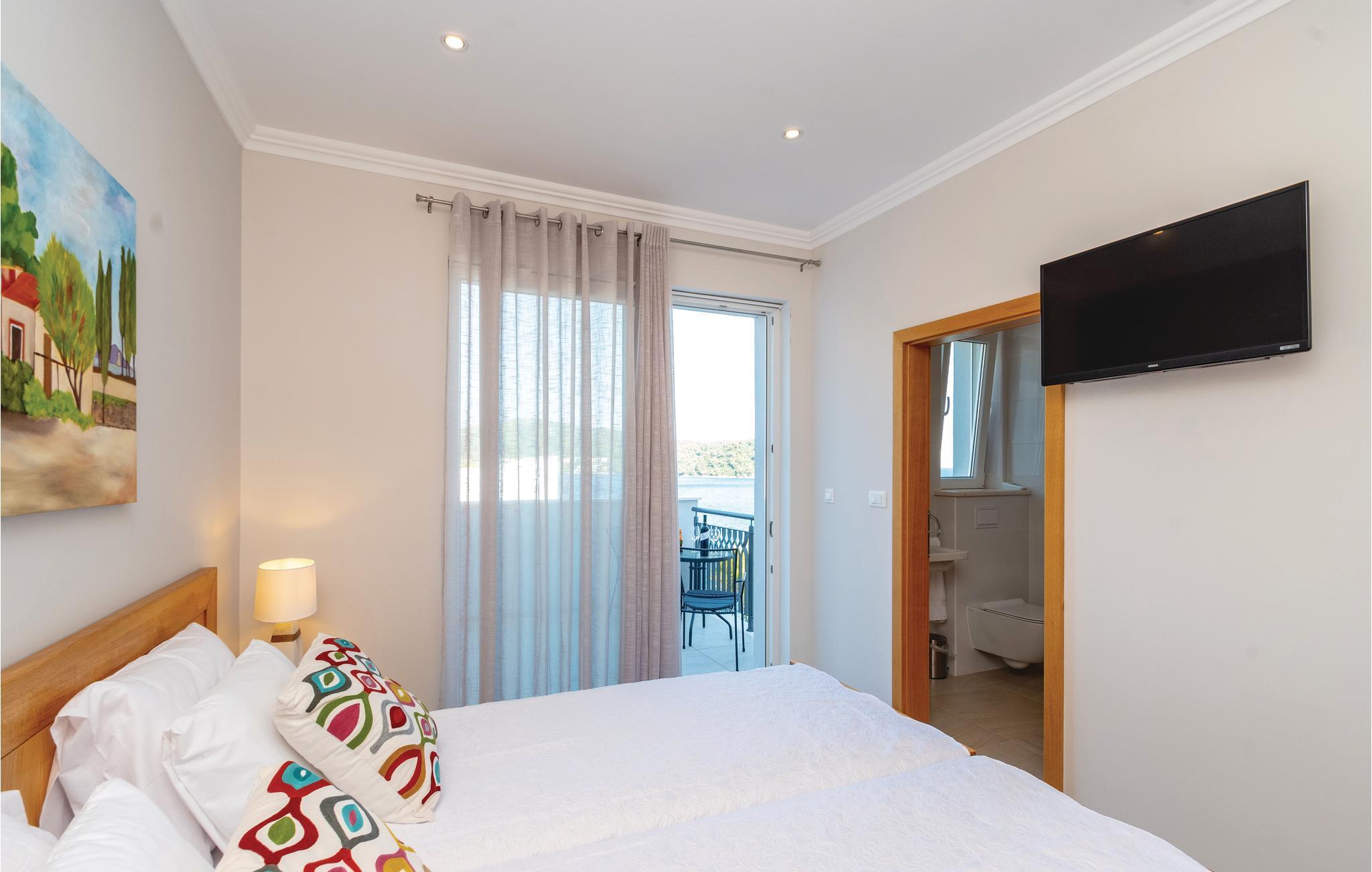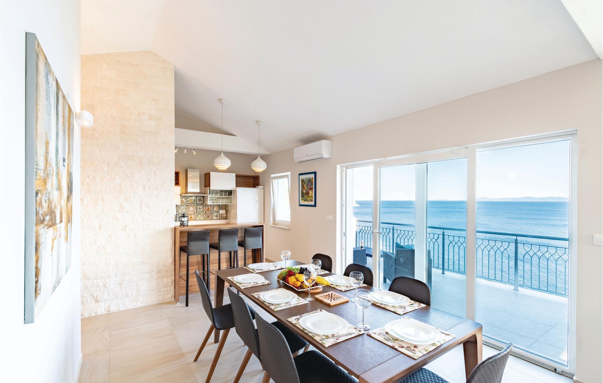 Dette drømmeskønne feriehus med pool ligger lige i nærheden af havet, ved den lille bugt Vinacac nær byen Brna, på øen Korcula. Klare linjer, luksuøse detaljer og materialevalg af høj kvalitet er overskriften i denne villa. Den er fordelt på to etager, i stueplan med et stort opholdsrum og fuldt udstyret køkken, et master-bedroom med badeværelse og en skøn terrasse med pool og en grill. Indre trapper fører til første sal med fire soveværelser med klimaanlæg, badeværelser en suite og en terrasse med havudsigt. Huset ligger kun få meter fra havet, med trin ned til et betonplateau, hvor I kan tage solbade og bade i havet.