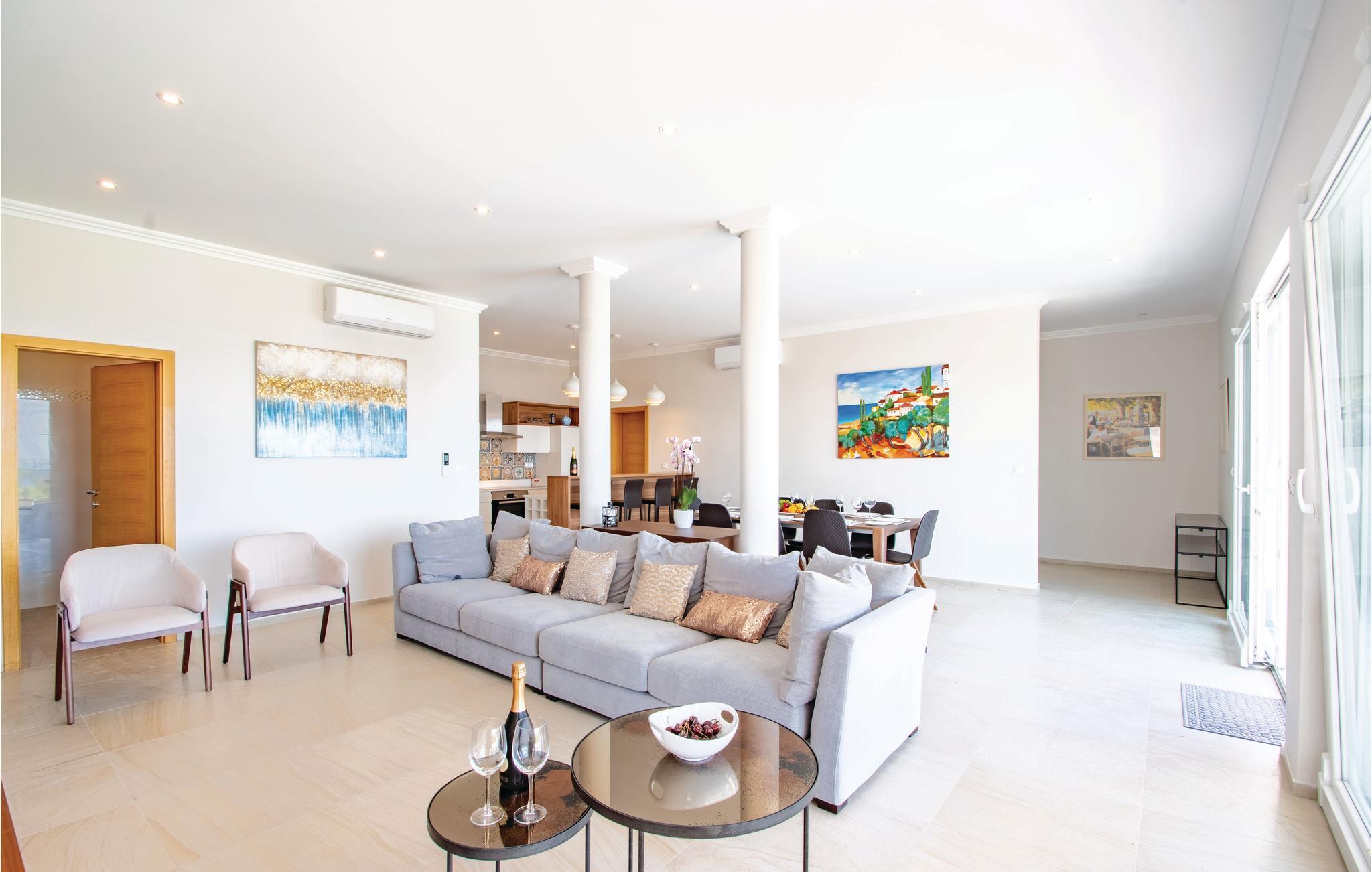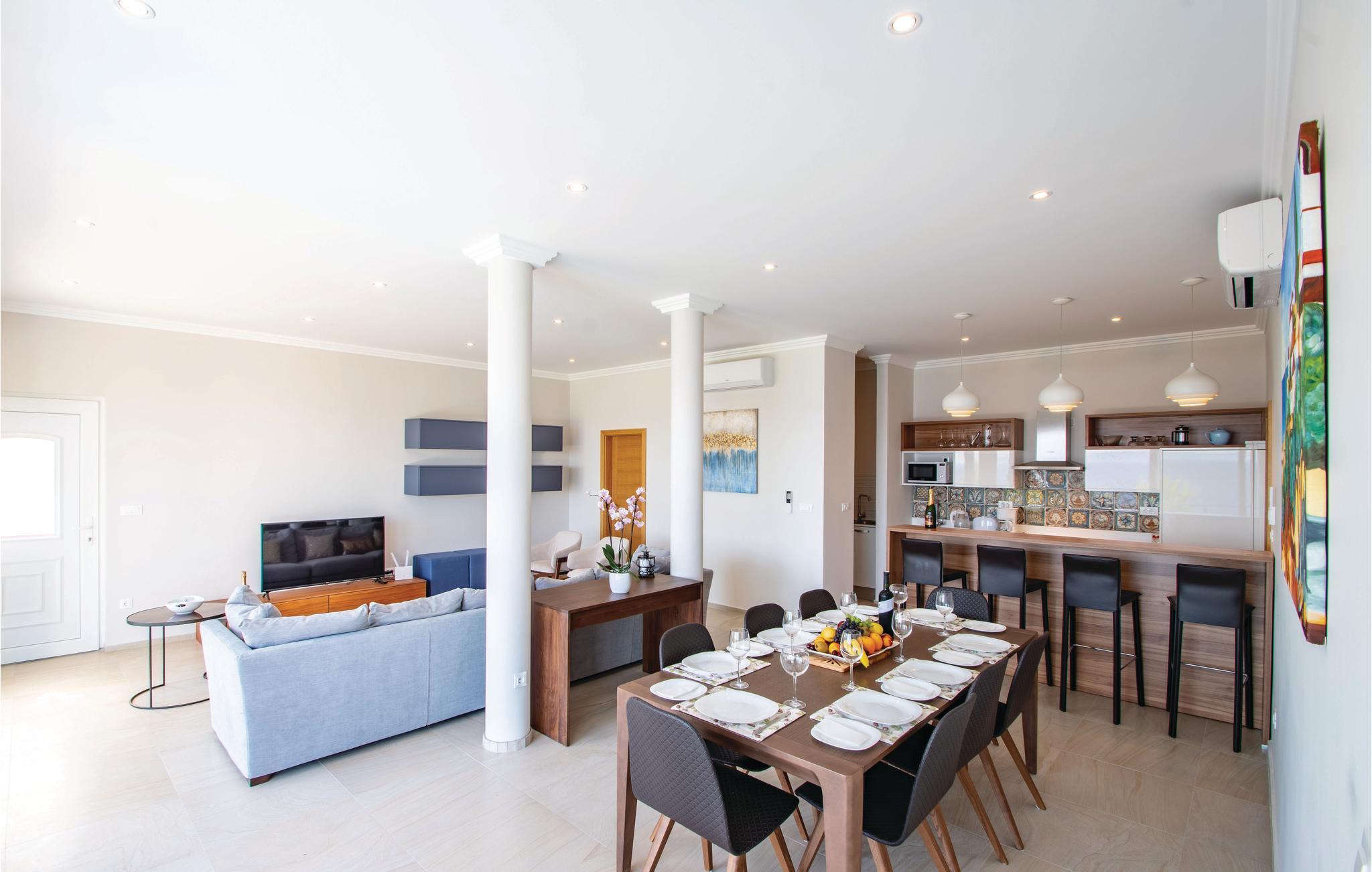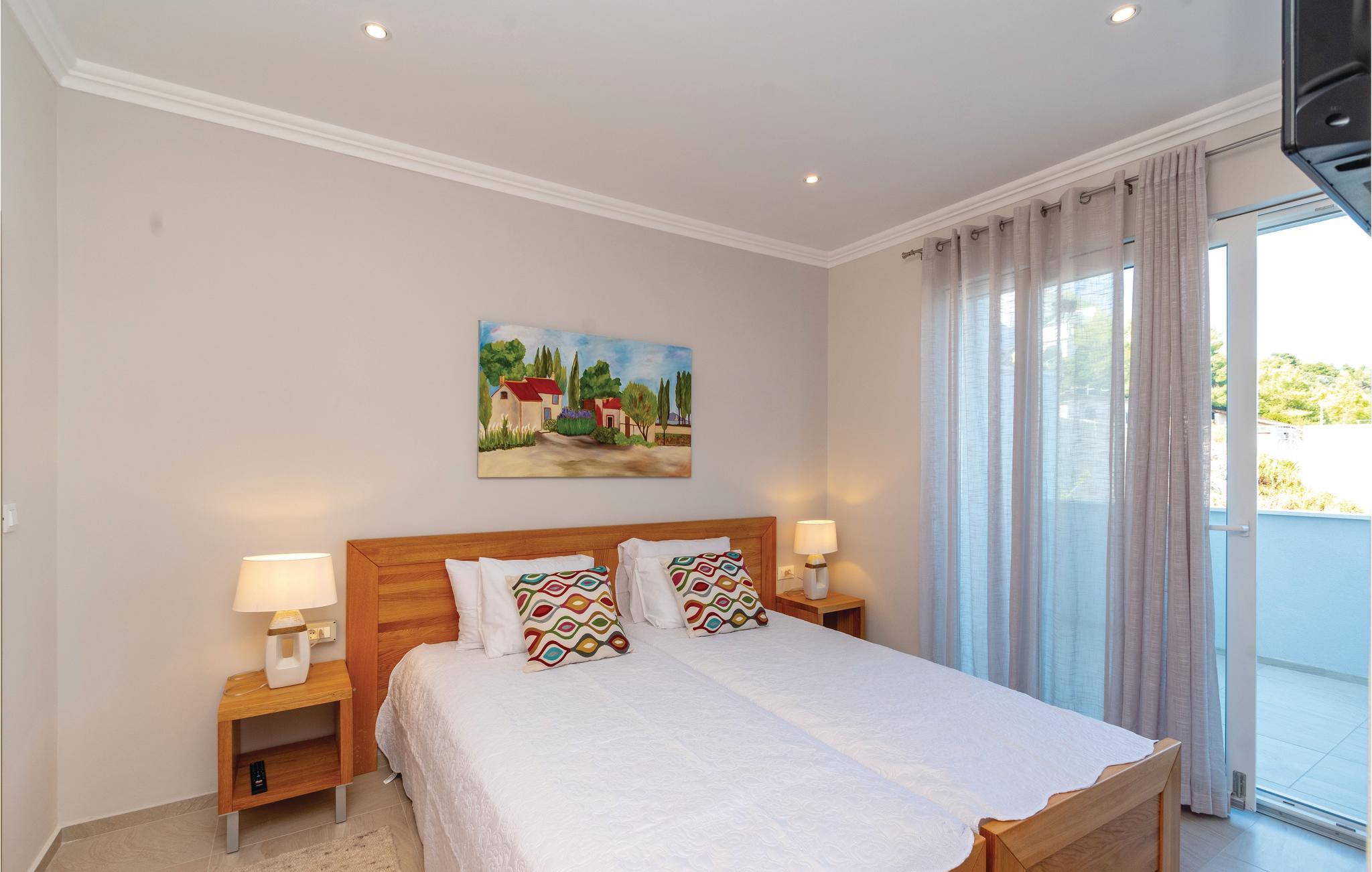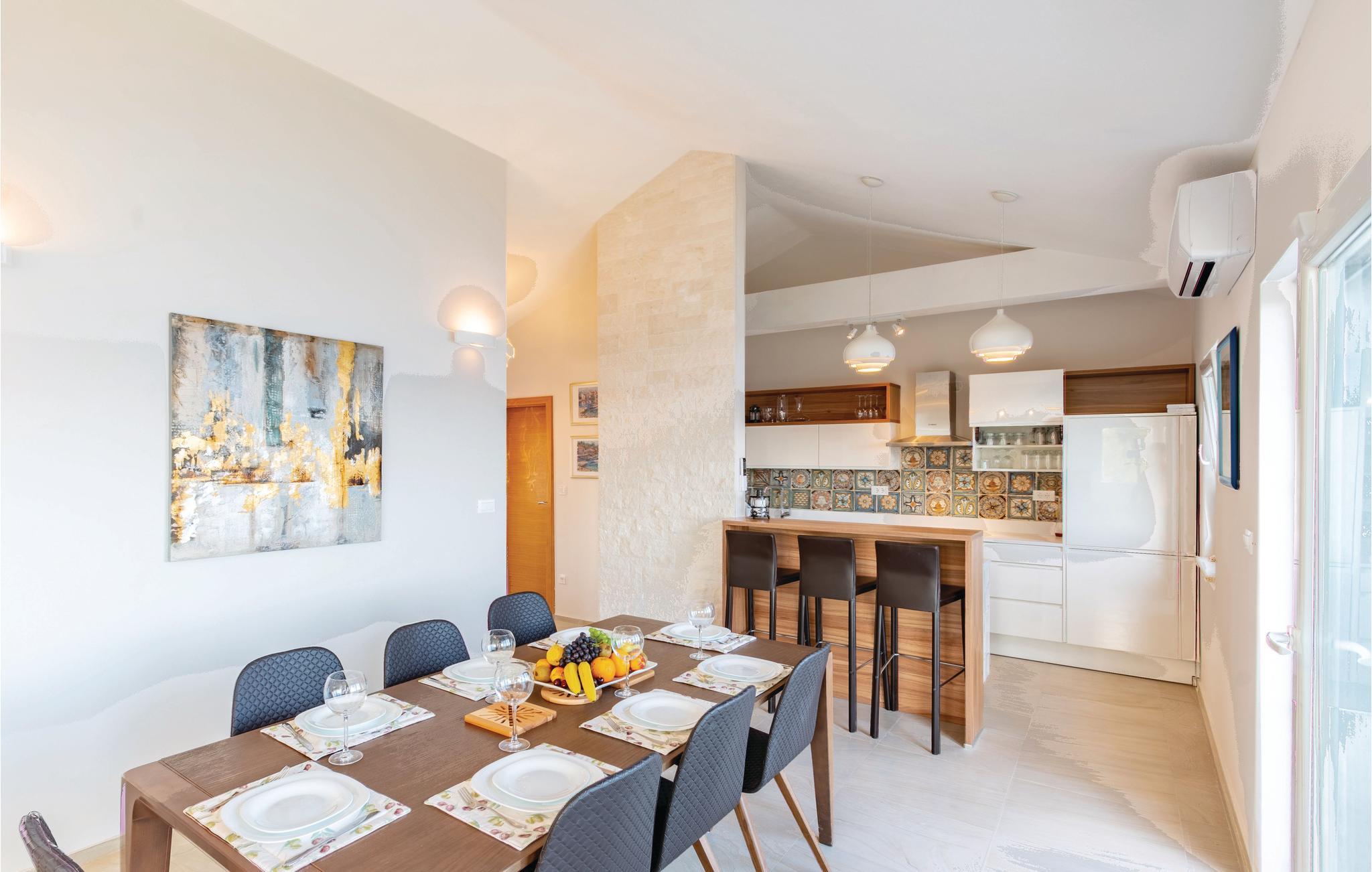 Dette drømmeskønne feriehus med pool ligger lige i nærheden af havet, ved den lille bugt Vinacac nær byen Brna, på øen Korcula. Klare linjer, luksuøse detaljer og materialevalg af høj kvalitet er overskriften i denne villa. Den er fordelt på to etager, i stueplan med et stort opholdsrum og fuldt udstyret køkken, et master-bedroom med badeværelse og en skøn terrasse med pool og en grill. Indre trapper fører til første sal med fire soveværelser med klimaanlæg, badeværelser en suite og en terrasse med havudsigt. Huset ligger kun få meter fra havet, med trin ned til et betonplateau, hvor I kan tage solbade og bade i havet.