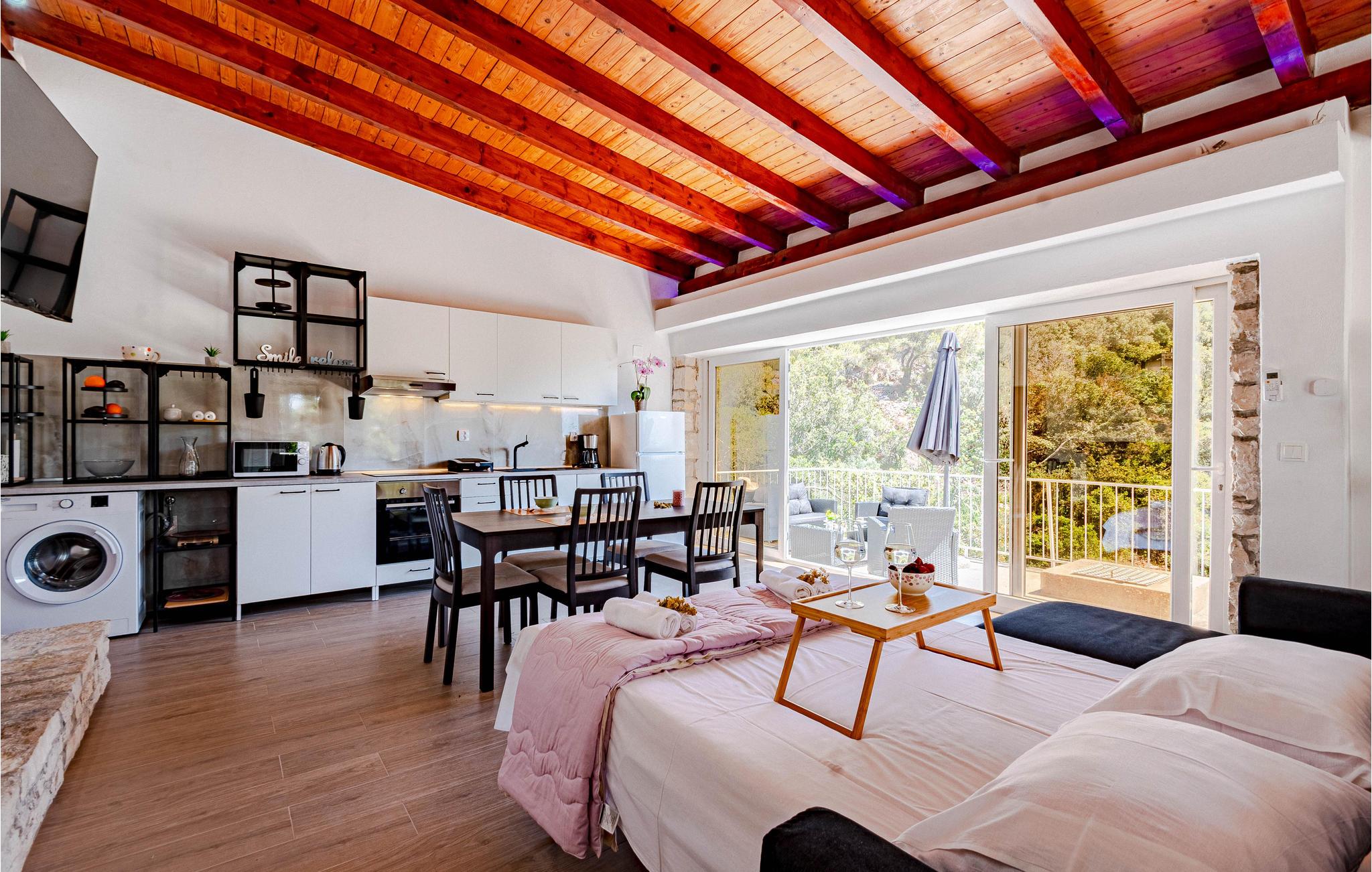 Her er det perfekte sted til en fantastisk ferie for to. Lejligheden ligger smukt placeret i en stille bugt, og der er ikke kun en stor altan, men også jeres egen terrasse, hvorfra I kan nyde udsigten til havet dag ud og dag ind. Værelset er komfortabelt og gennemtænkt indrettet, og de skønne kvalitetsmøbler sørger for god komfort.