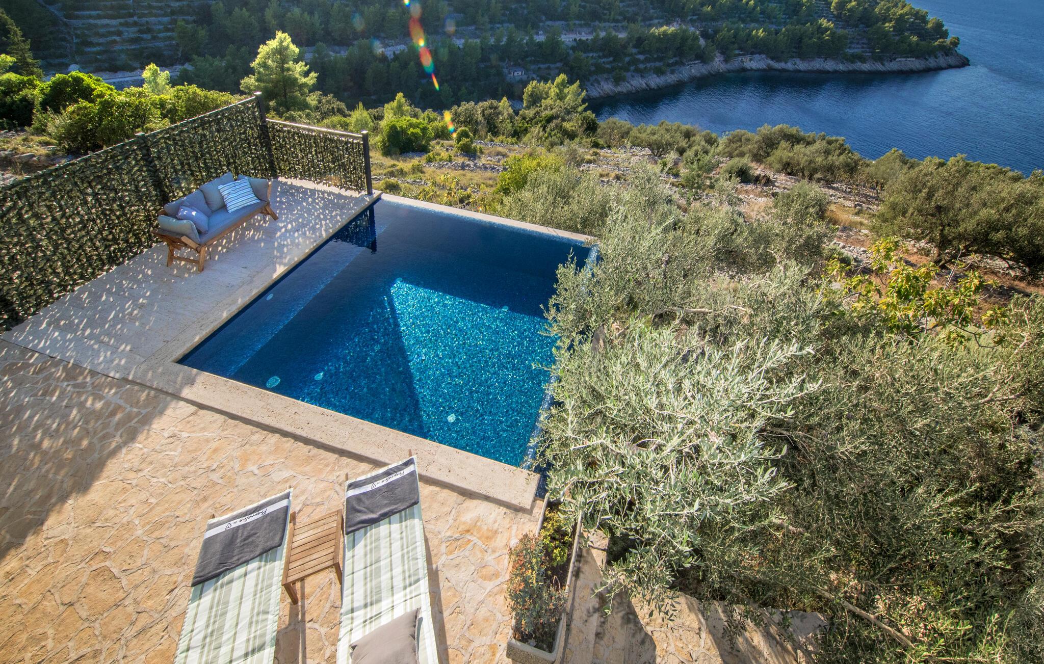 Jeres feriehus på øen Korcula byder på en betagende udsigt over havet og det omkringliggende landskab. Start dagen med et forfriskende spring i poolen, som smelter sammen med udsigten til det åbne hav. På den rummelige terrasse inviterer komfortable liggestole jer til at nyde solen eller slappe af med en forfriskning. Husets afsides beliggenhed sikrer, at I her kan finde fuldstændig ro. Indenfor finder I lyse rum, der alle har direkte adgang til terrassen eller en balkon, så I kan nyde udsigten i fulde drag.