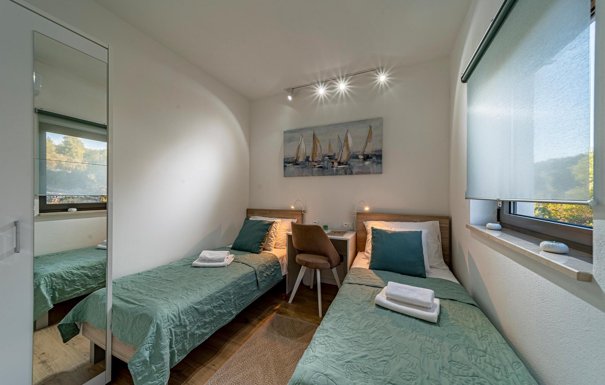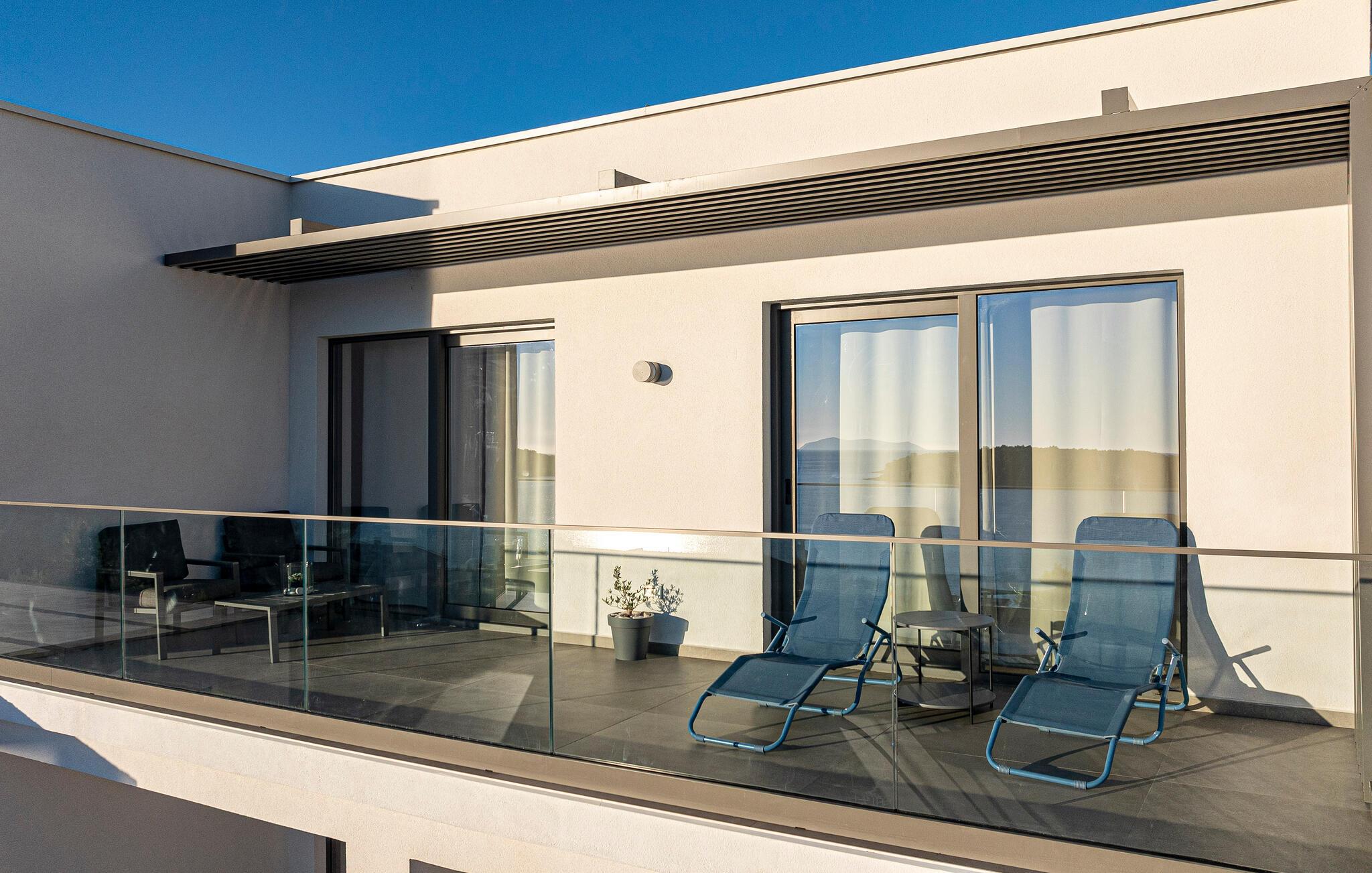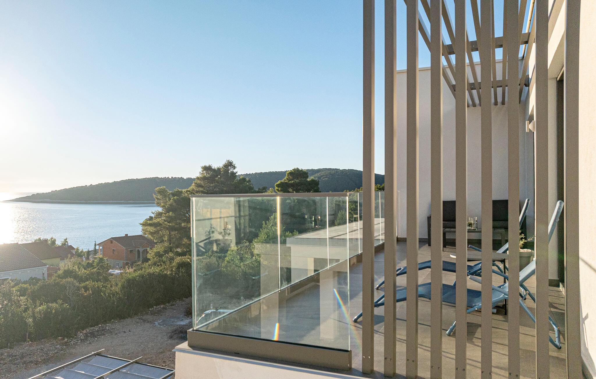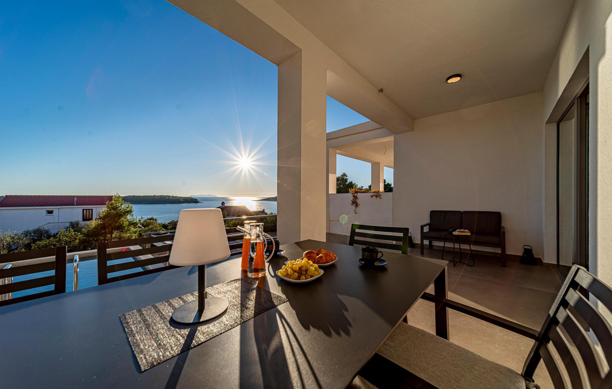 Oplad jeres batterier i infinity-poolen og lad jeres blik vandre over havet. Slap af på liggestolene, mens børnene leger i haven, eller nyd frisk fisk fra grillen under pergolaen, mens de smukke solnedgange bader terrassen i et varmt lys.