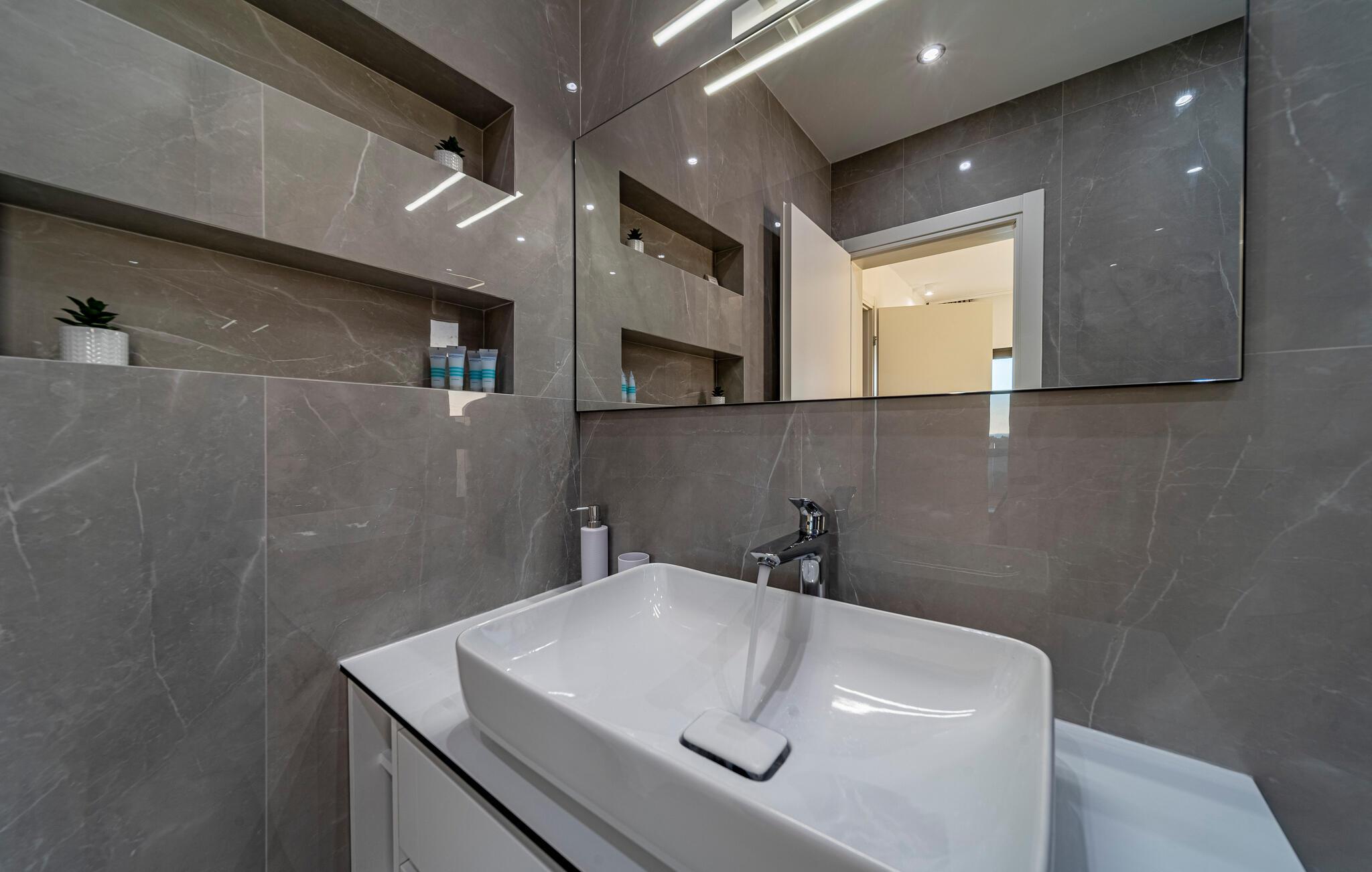 Under en velfortjent pause fra hverdagen kan I lade jer forkæle med de mange faciliteter i dette moderne, veludstyrede feriehus ved havet. Brug det moderne køkken til at tilberede middelhavsretter og tilbring hyggelige aftener i den elegante spiseplads. Spil et spil billard, slap af i fitnessrummet eller nyd en stille time på sofaen, mens I streamer jeres yndlingsserie på Netflix eller har det sjovt sammen på Playstation 5.