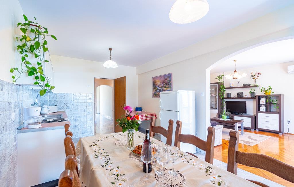 Denne rummelige lejlighed er et ideelt sted for gæster, der søger fred og ro, en autentisk dalmatisk oplevelse og nydelsen af ??naturlig skønhed. Den tilbyder uforglemmelig udsigt over det åbne hav og det omkringliggende område. Lejligheden har klassiske og enkle, men velholdte møbler. Nyd det åbne køkken- og opholdsrum, der åbner lige ud til terrassen, perfekt til fælles måltider eller blot afslapning med venner og familie.