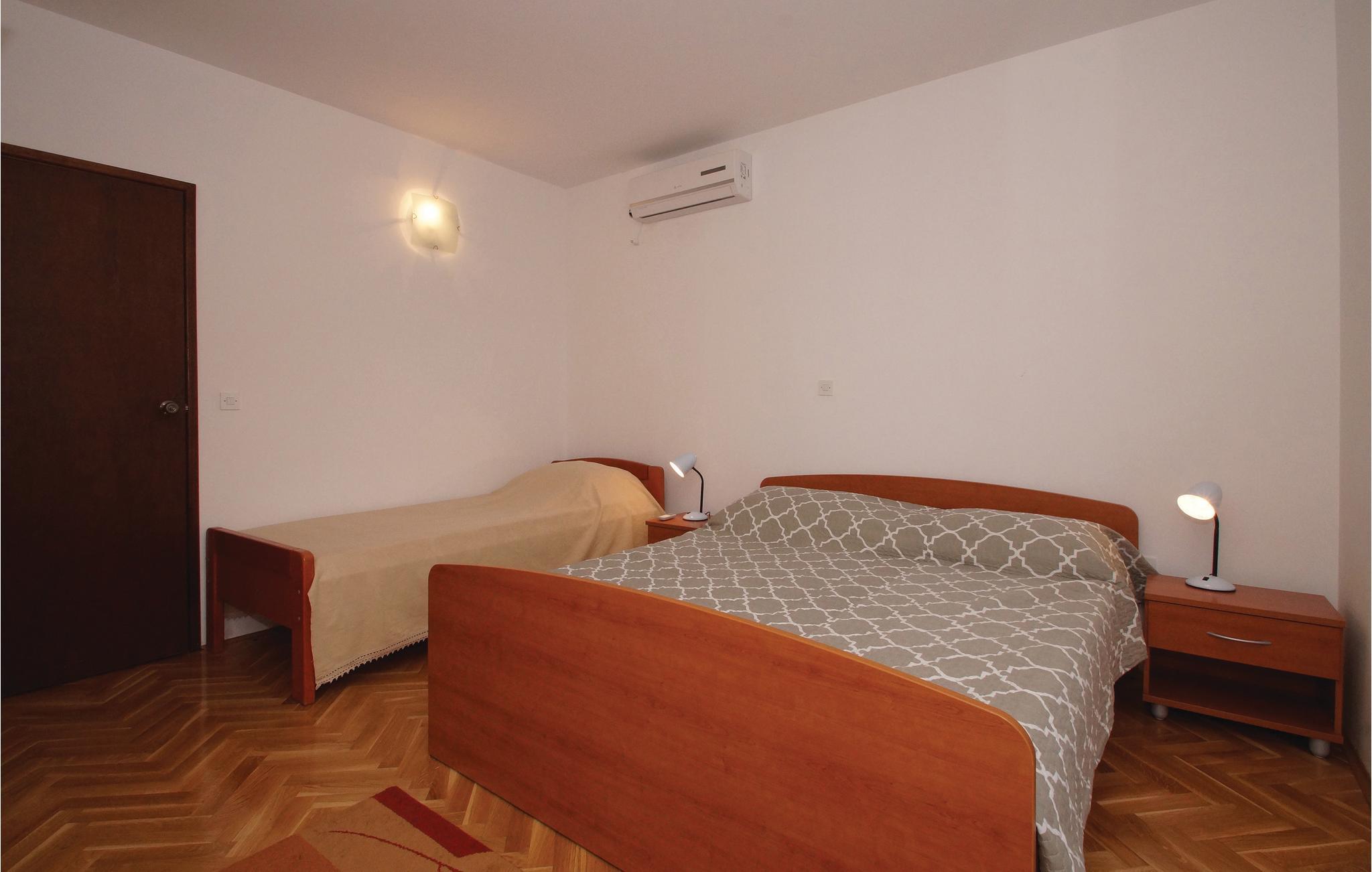 Ved den lille bugt Tri Žala, på øen Korcula, venter denne generøse ferielejlighed med to boligenheder i to etager med indertrapper. På anden sal venter en lejligheded med tre sovevælelser, tre badeværelser, en rummelig stue med køkken og spiseområde samt en dejlig terrasse. På første sal er et soveværelse, badeværelse, køkken samt terrasse med grill. Værelserne er smagfuldt indrettet med moderne og klassiske møbler. Til den nære betonplateau er der få trin og en vej, der skal krydes, men også en børnevenlig kiesstrand ligger i de nærmere omgivelser, som I kan glæde jer til.