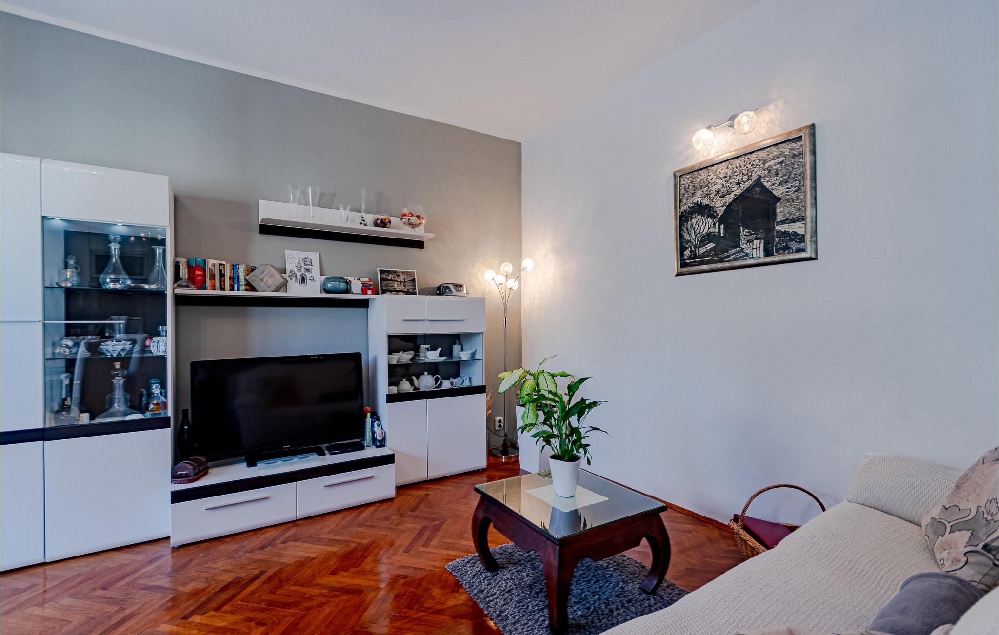 Det ligger i centrum af Korula kun få skridt fra kiesstranden. Indenfor finder du en rummelig stue og spisestue og et soveværelse, hvorfra du kan nå terrassen.