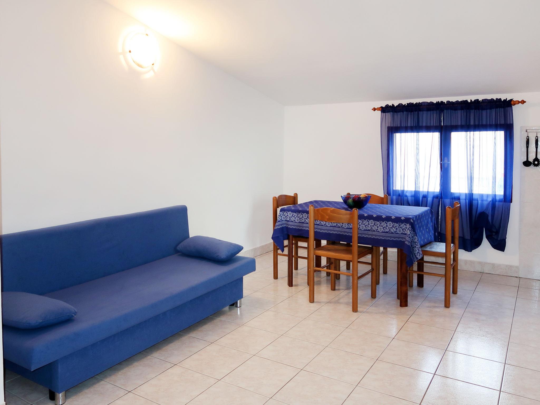 "Peric", 2-room apartment 40 m2 on 2nd floor. Living/dining room with sloping ceilings with 1 sofabed, satellite TV and air conditioning. 1 room with sloping ceilings with 1 bed and 1 double bed. With sloping ceilings, open kitchen (2 hot plates, oven, 2 gas rings, toaster, kettle, electric coffee machine). Shower/WC. No heating option. Terrace 20 m2. Terrace furniture, balcony furniture, deck chairs (2). View of the sea. Facilities: Internet (WiFi, free).