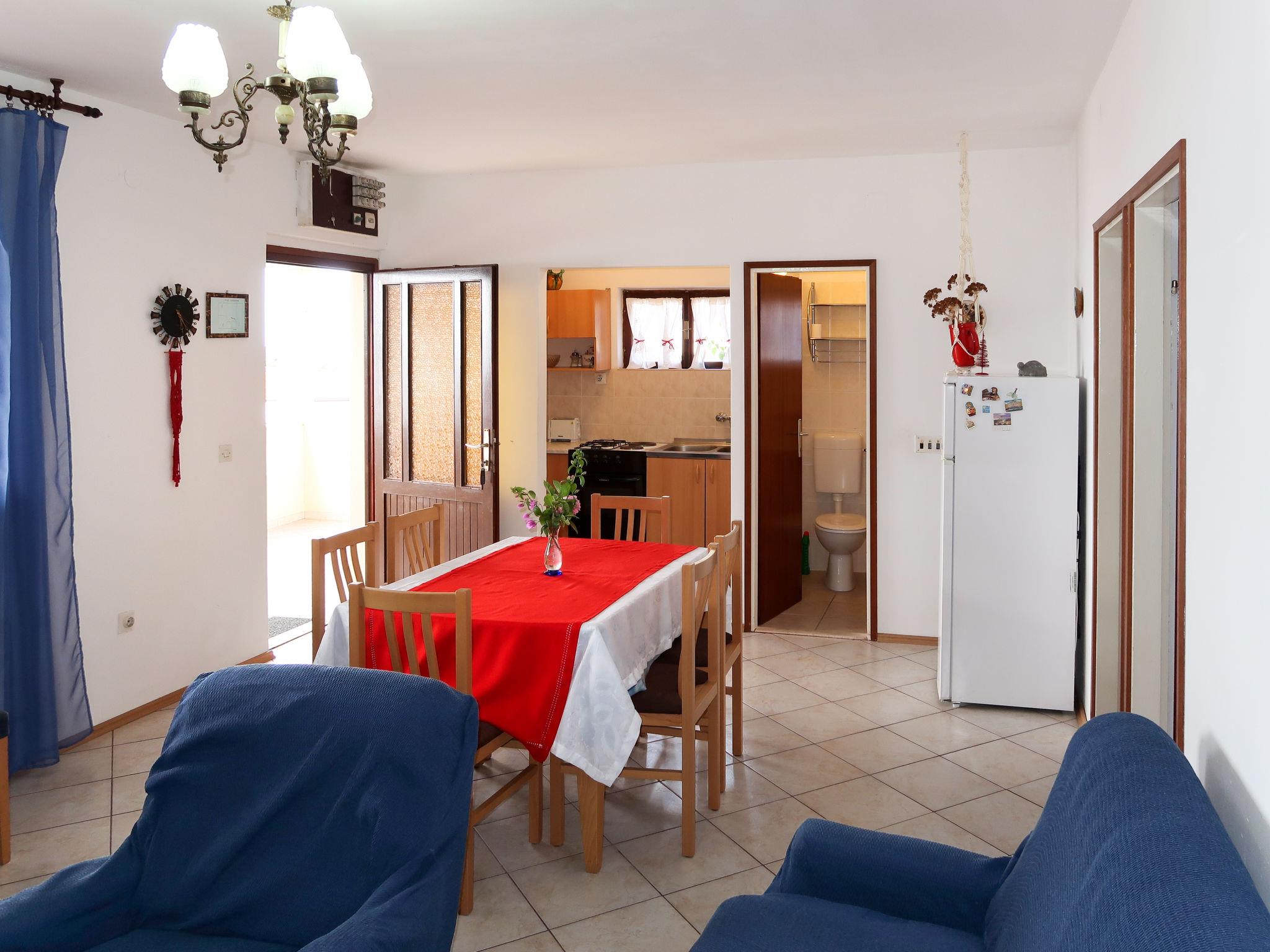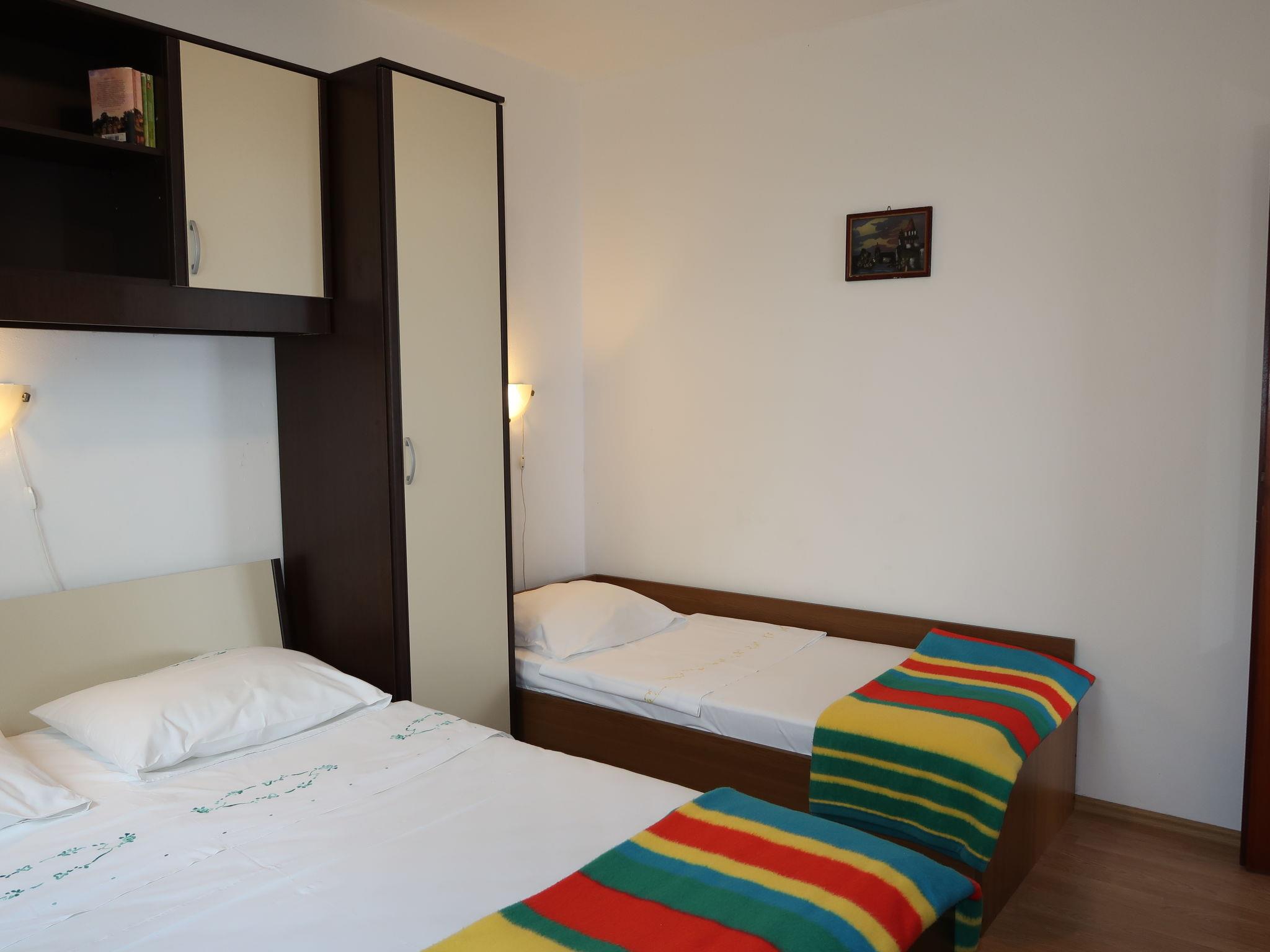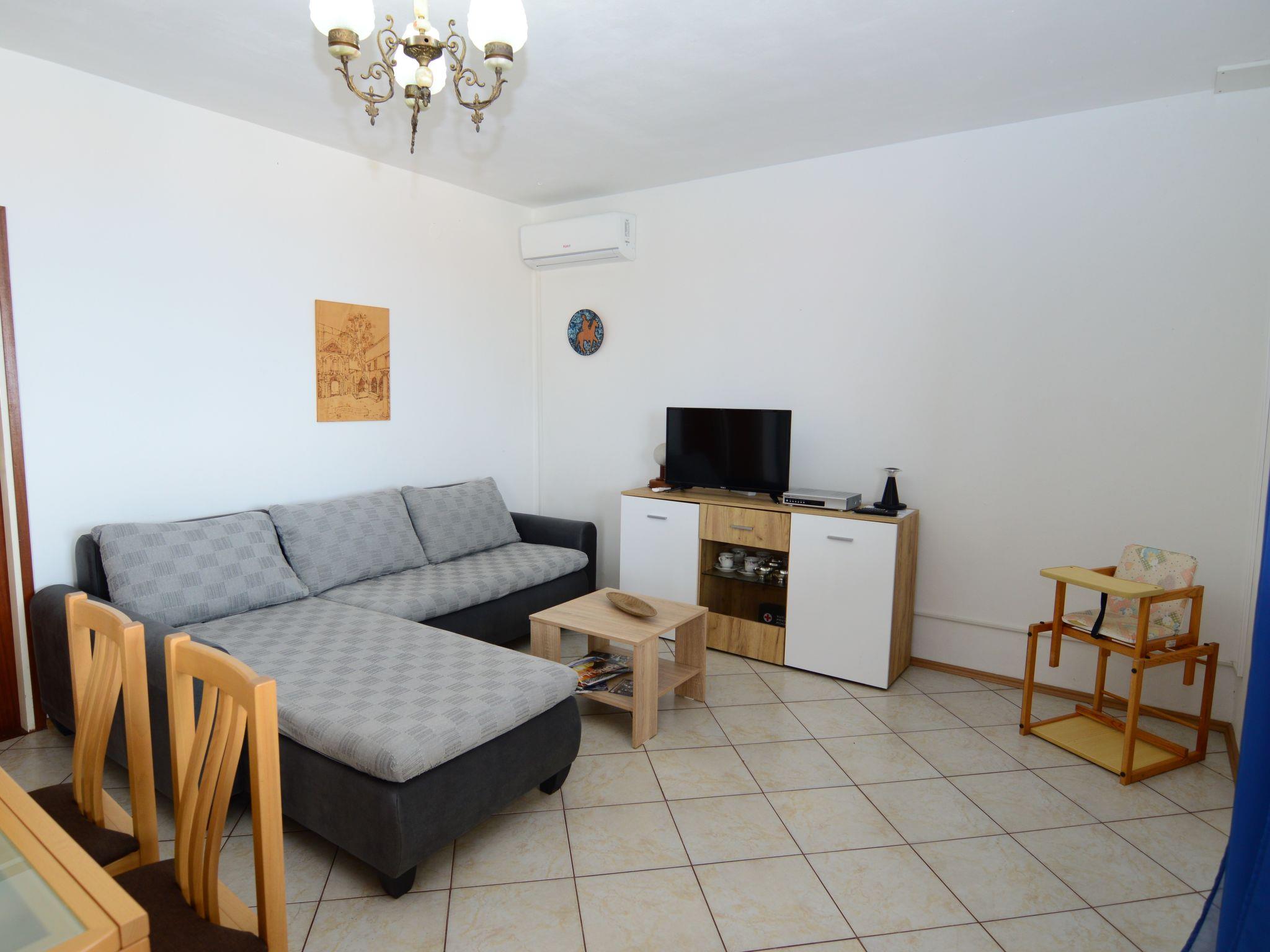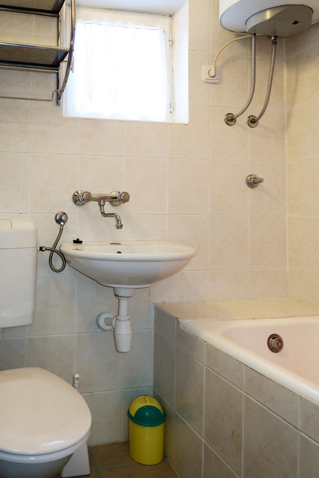 3-room apartment 50 m2, on the ground floor. Living/dining room with satellite TV (flat screen), air conditioning. Exit to the balcony. 1 room with 1 bed and 1 french bed (160 cm). 1 room with 1 double bed. Open kitchen (2 hot plates, oven, 2 gas rings, toaster, kettle, freezer, electric coffee machine). Bath/WC. No heating option. Balcony. Balcony furniture. View of the sea. Facilities: Internet (WiFi, free). Parking (1 car). Please note: non-smokers only.